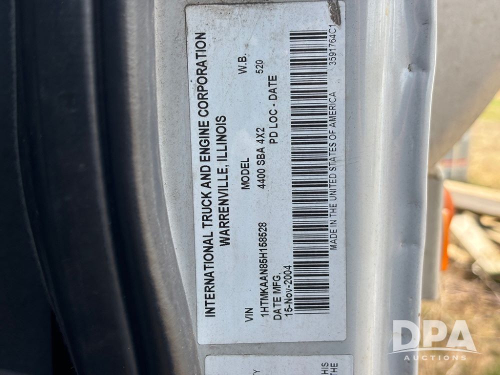 2005 International 4400 Petroleum Truck (GP12914, Unit P7470), DT466 diesel engine, Allison automatic transmission, heat, Am/Fm radio, single axle, Progress Model A30LS 2700 petroleum body (S/N C-52271), 2,700 gallon capacity, 4 compartment (1000 - 800 - 500 - 400), SHELL MAT'L 5454-H32 AL, HEAD MAT'L 5454-0 AL, dual hose reel, LectroCount meter, FloTeh Model FT103 compatible overfill monitor, 11R22.5 tires,