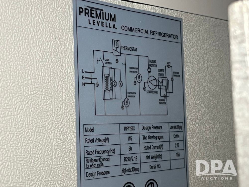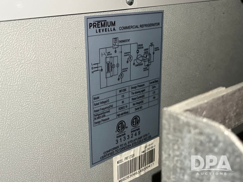 Premium Levella Commercial Refrigerator (JN4143), Premium Levella commercial refrigerator, Model PRF1250X, single door, 115 volts, 60 Hz.