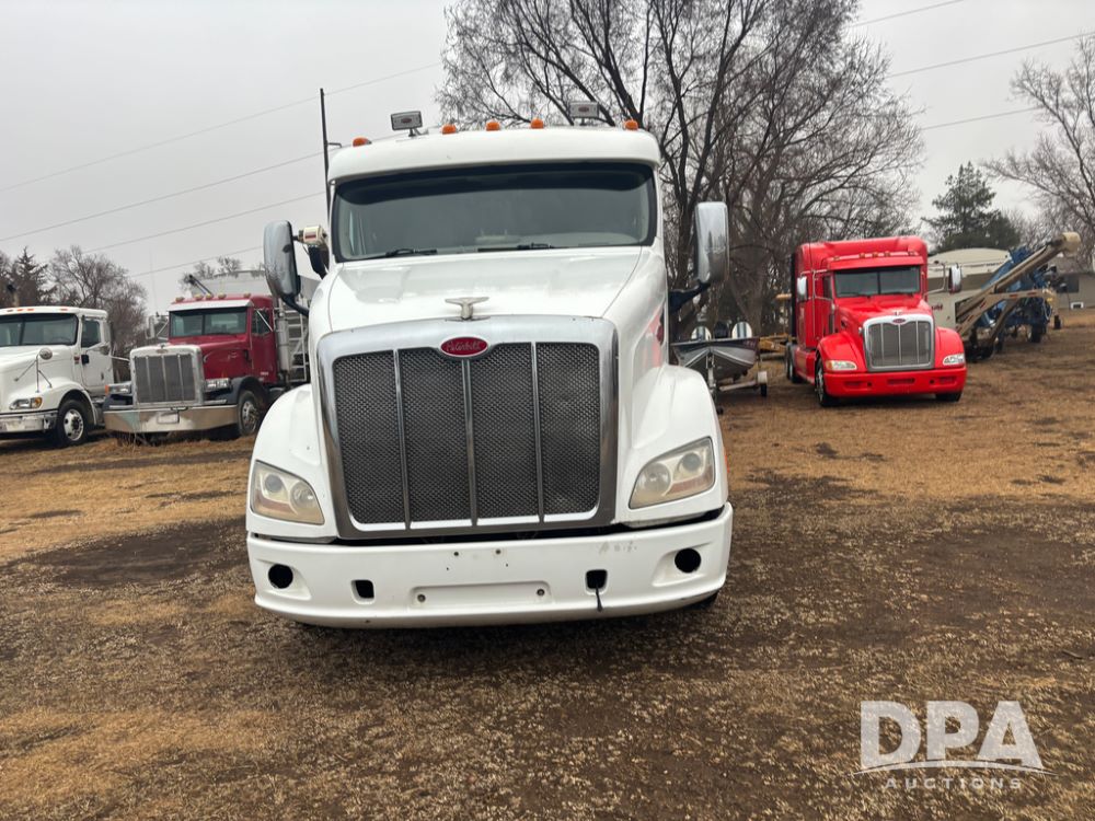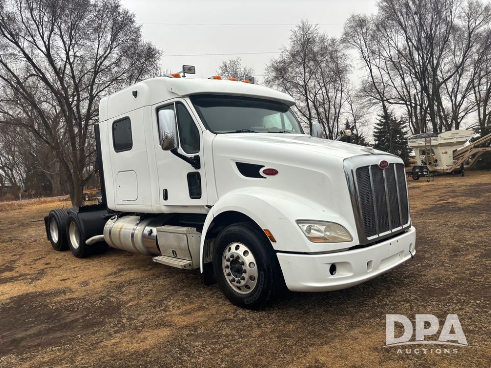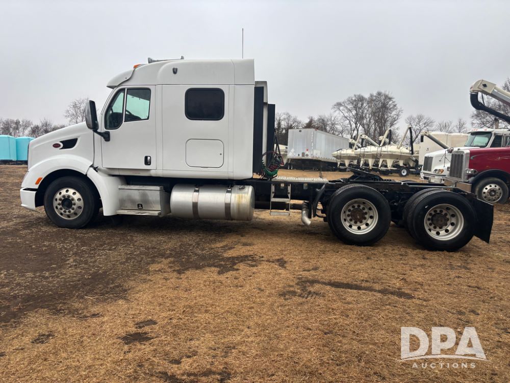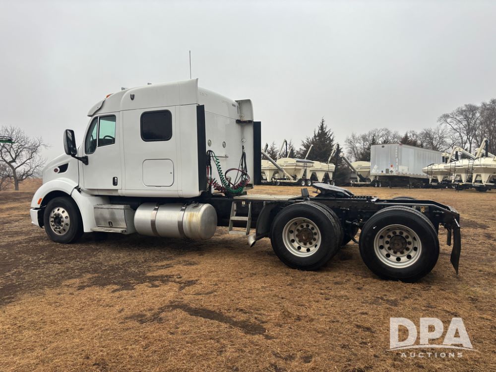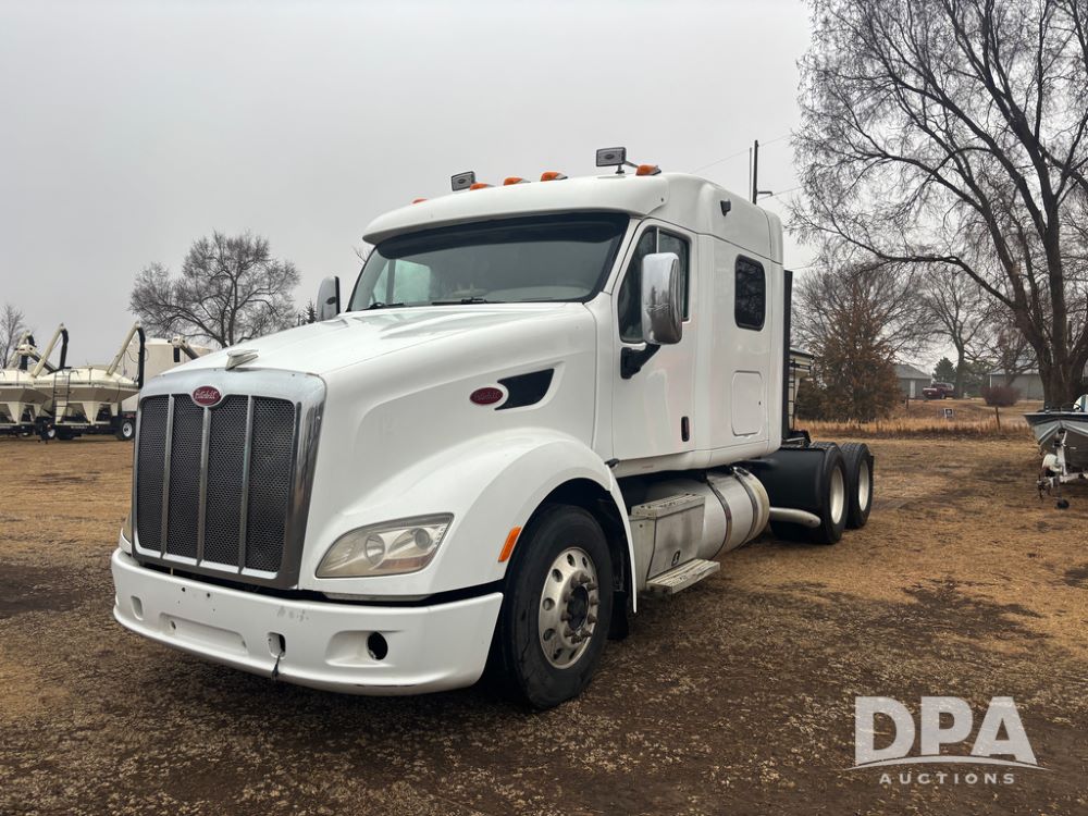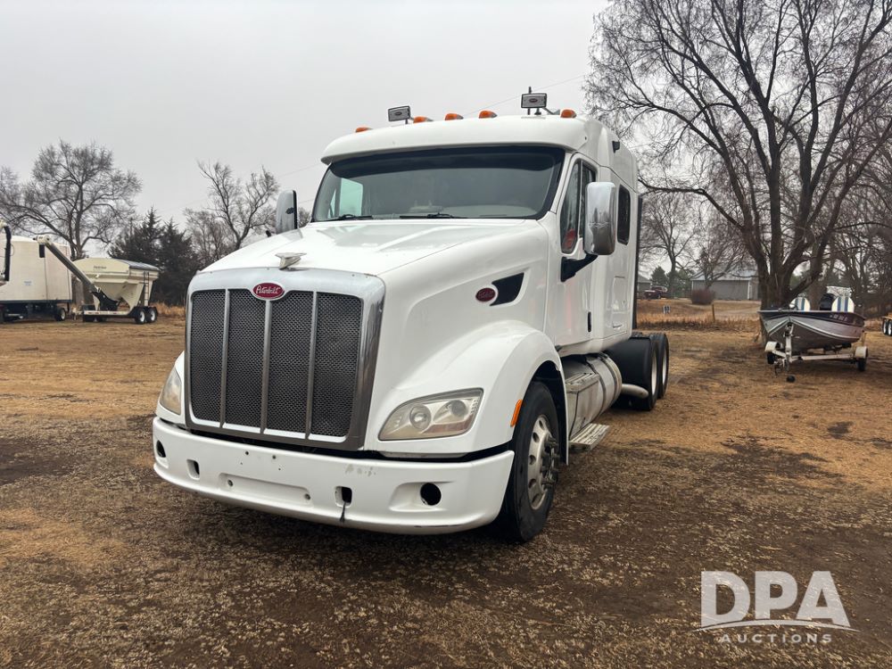 2012 Peterbilt 587 Truck (DR13430 Unit 113282), diesel engine, 13 speed transmission, tandem axle full screw, 233'' WB, air ride suspension, integral sleeper cab, dual aluminum fuel tanks, air slide 5th wheel plate, air dump valve, cruise control, engine brake, power windows, locks and mirrors, 22..5 tires, all aluminum wheels, odometer reads 715,695 miles.