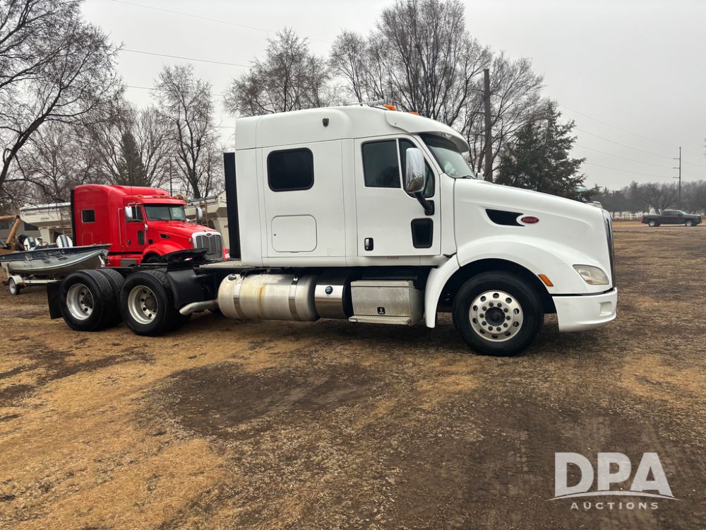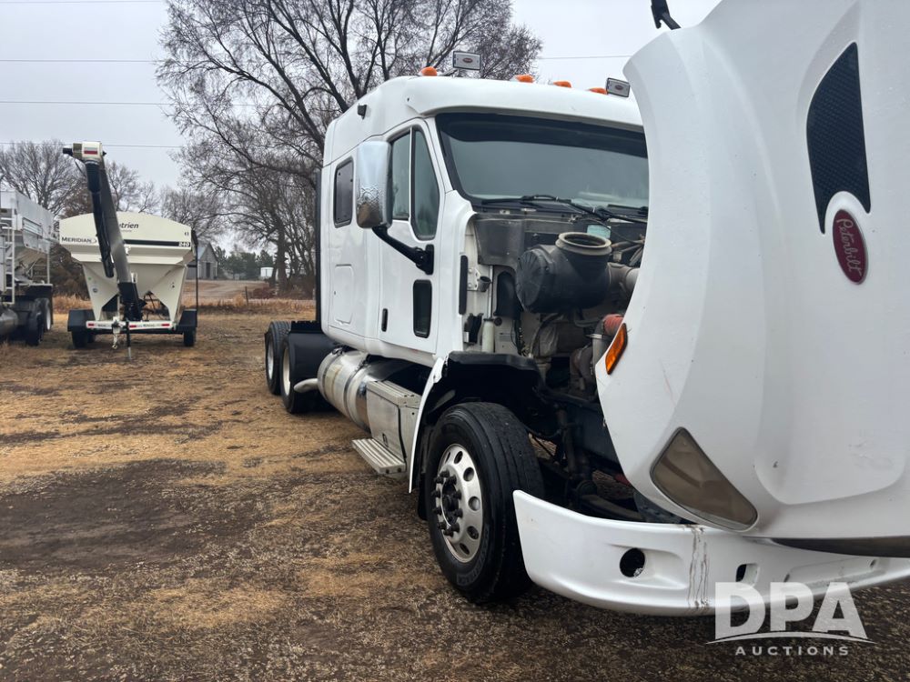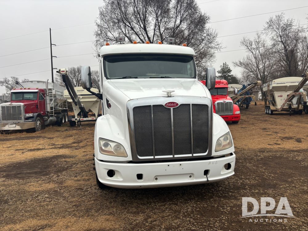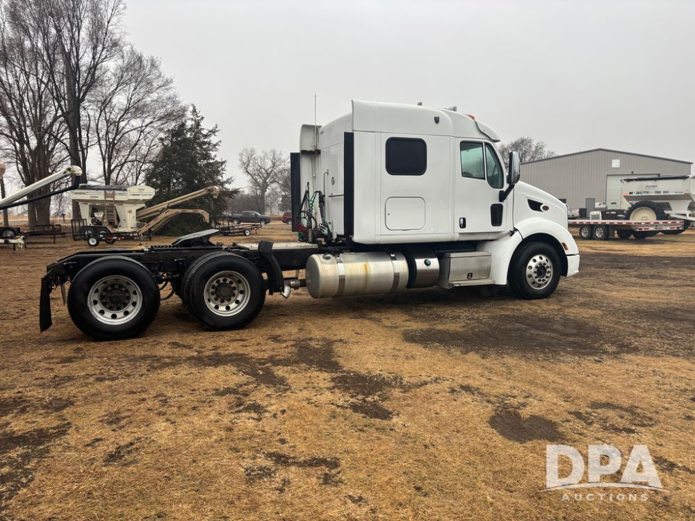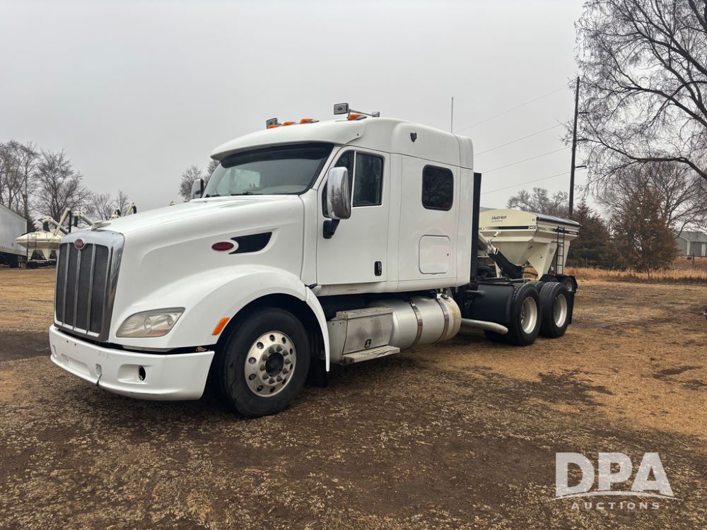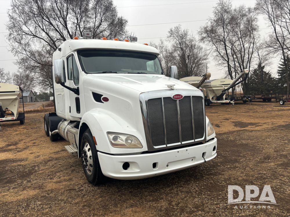 2012 Peterbilt 587 Truck (DR13430 Unit 113282), diesel engine, 13 speed transmission, tandem axle full screw, 233'' WB, air ride suspension, integral sleeper cab, dual aluminum fuel tanks, air slide 5th wheel plate, air dump valve, cruise control, engine brake, power windows, locks and mirrors, 22..5 tires, all aluminum wheels, odometer reads 715,695 miles.