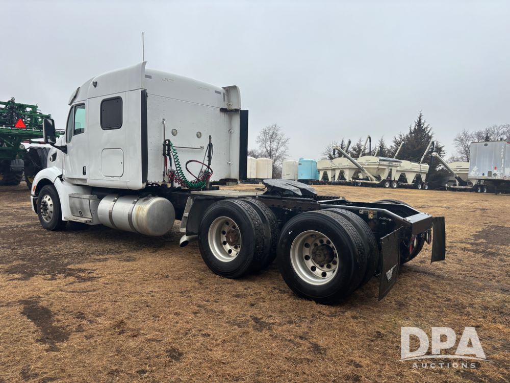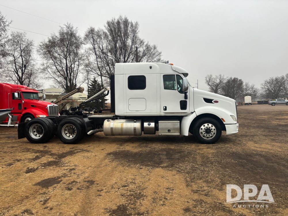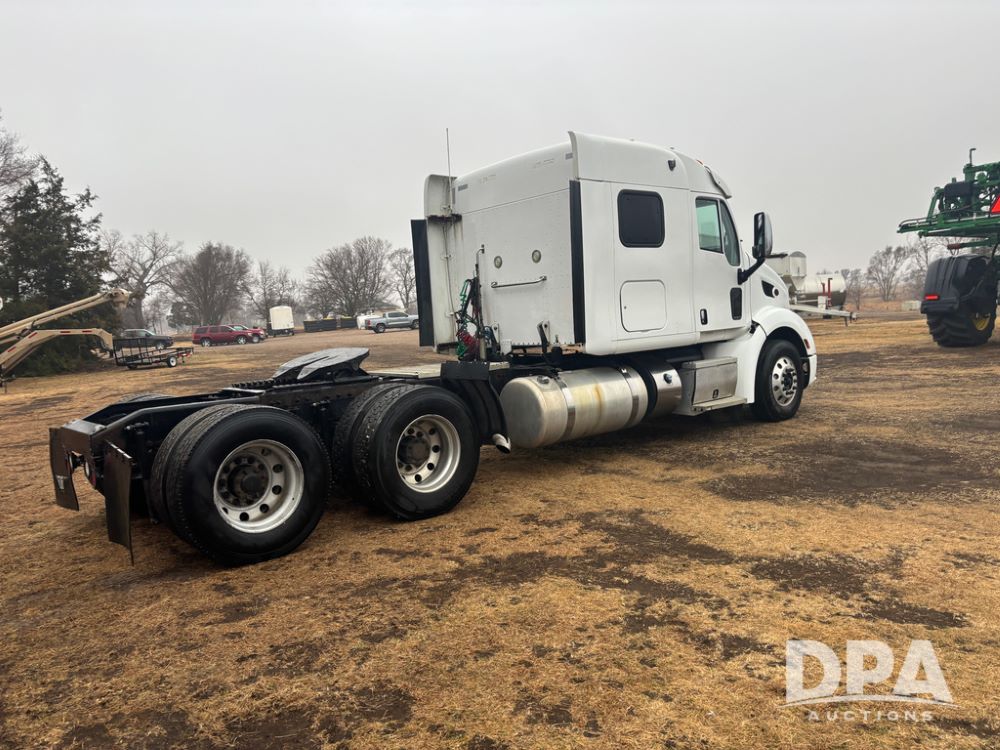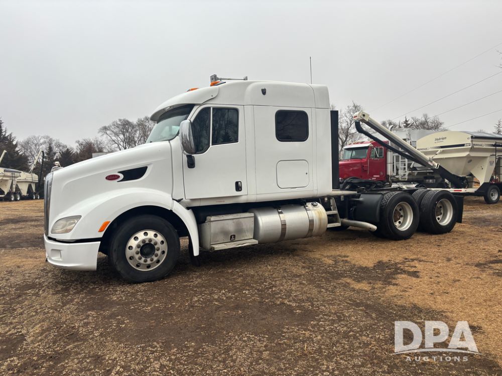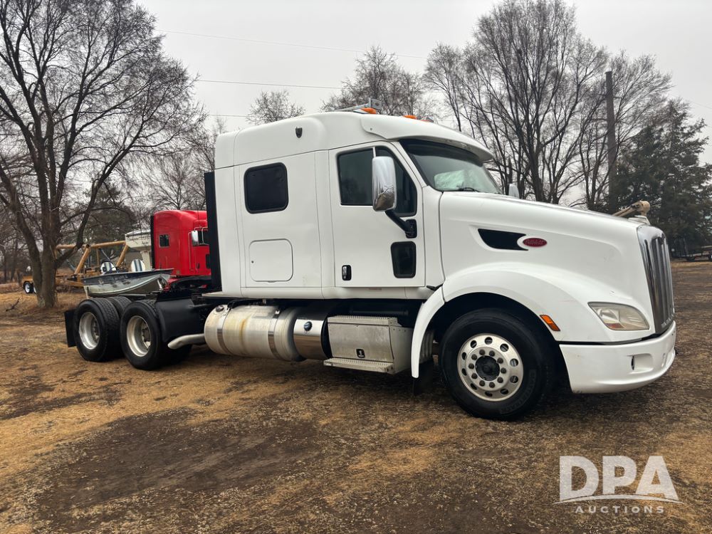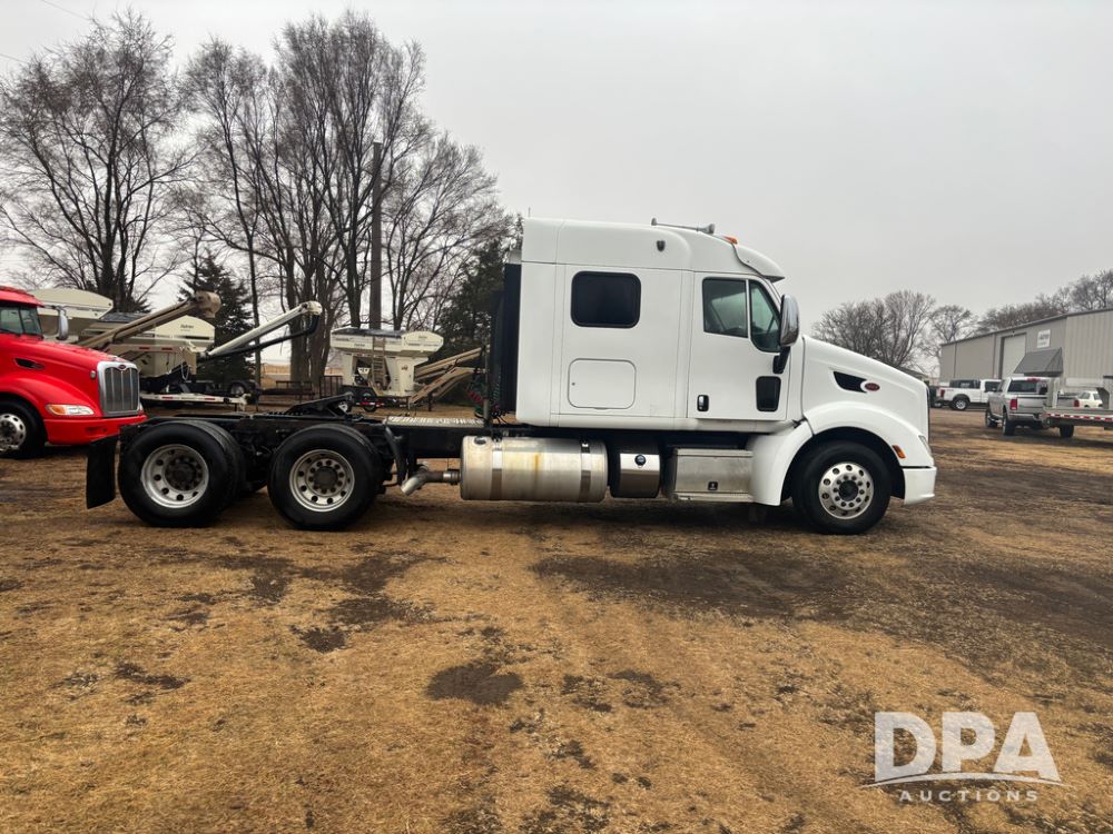 2012 Peterbilt 587 Truck (DR13430 Unit 113282), diesel engine, 13 speed transmission, tandem axle full screw, 233'' WB, air ride suspension, integral sleeper cab, dual aluminum fuel tanks, air slide 5th wheel plate, air dump valve, cruise control, engine brake, power windows, locks and mirrors, 22..5 tires, all aluminum wheels, odometer reads 715,695 miles.