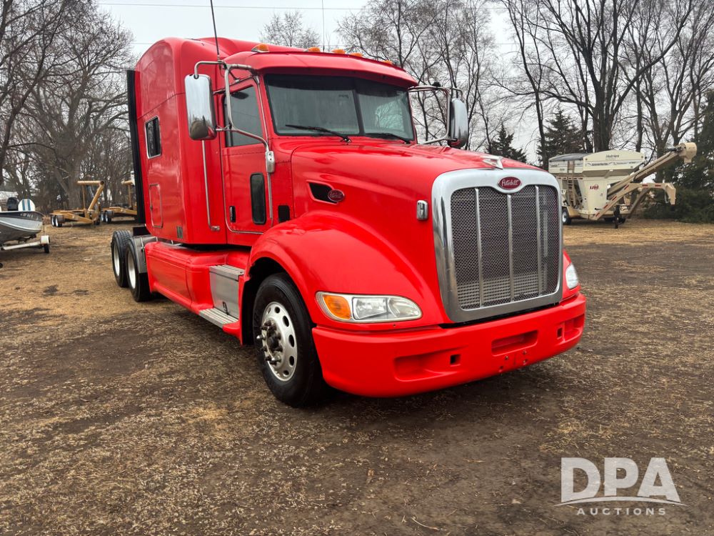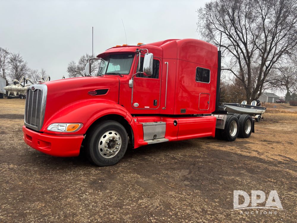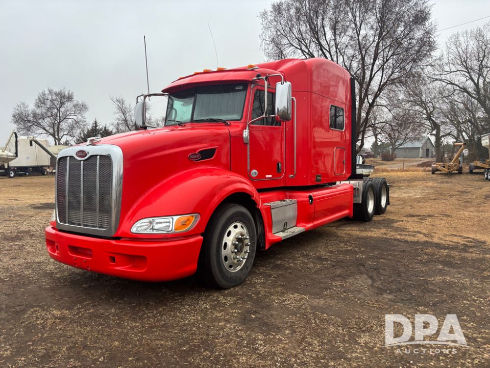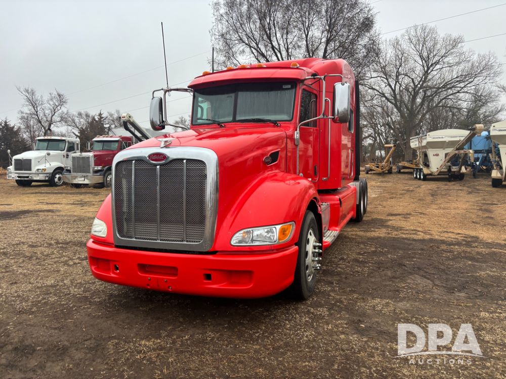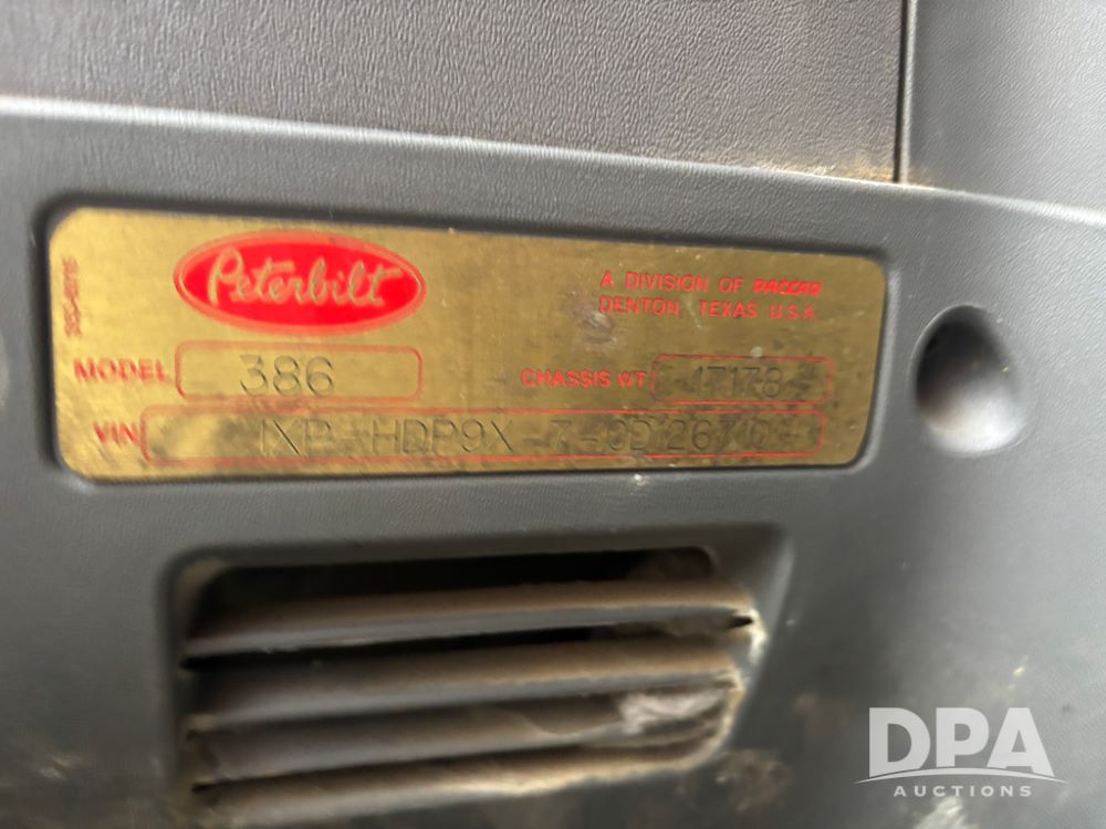 2012 Peterbilt 386 Truck (DR13431 Unit 113283), diesel engine, 13 speed transmission, tandem axle full screw, air ride suspension, 240'' WB, integral sleeper cab, air slide 5th wheel plate, engine brake, cruise control, air dump valve, AM/FM CD radio, power windows, locks and mirrors, 22.5 tires, all aluminum wheels, odometer reads 627,532 miles.