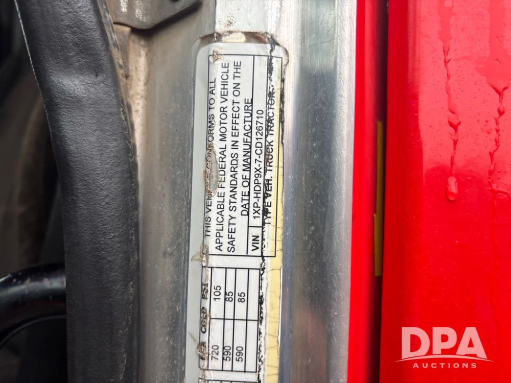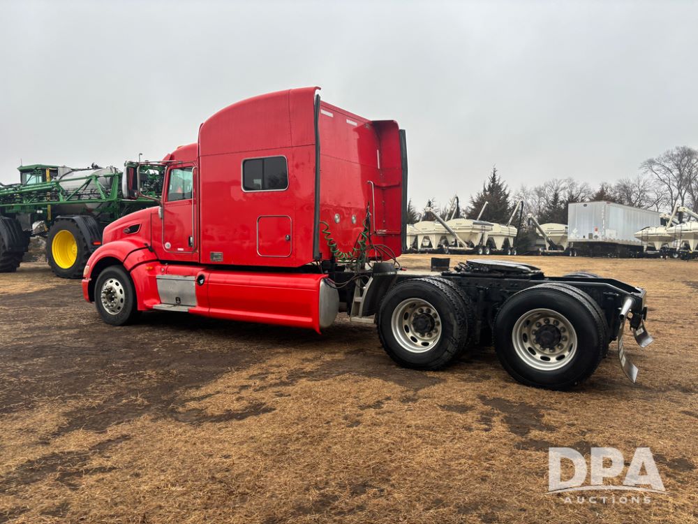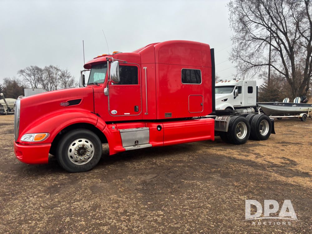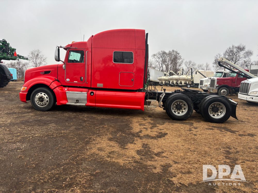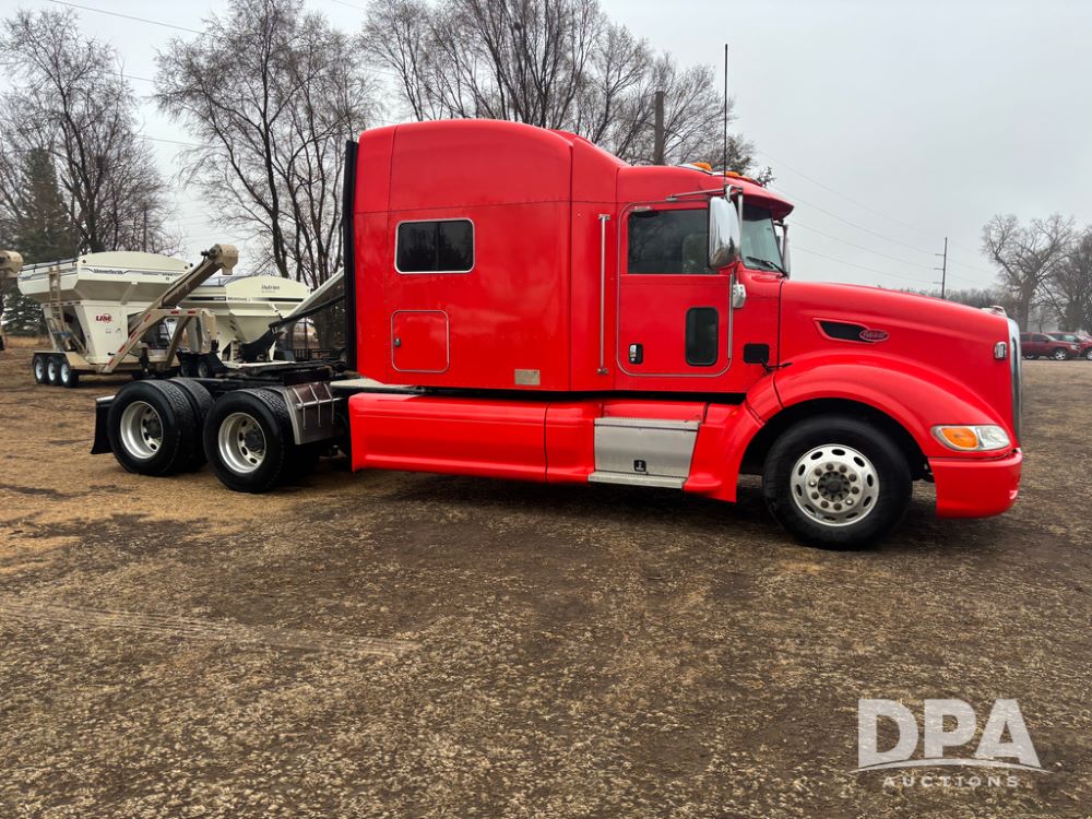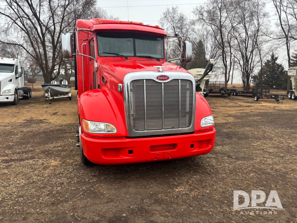 2012 Peterbilt 386 Truck (DR13431 Unit 113283), diesel engine, 13 speed transmission, tandem axle full screw, air ride suspension, 240'' WB, integral sleeper cab, air slide 5th wheel plate, engine brake, cruise control, air dump valve, AM/FM CD radio, power windows, locks and mirrors, 22.5 tires, all aluminum wheels, odometer reads 627,532 miles.