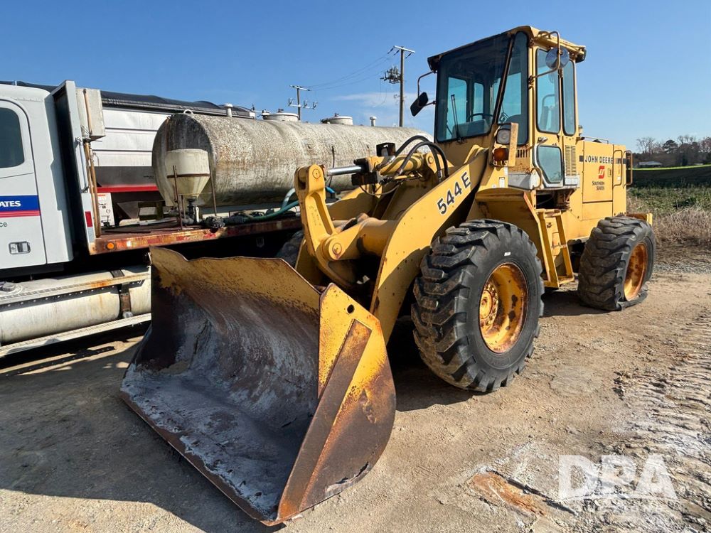 John Deere 544E Wheel Loader (GP12919), cab, diesel engine, bucket, 17.5-25 tires (1 tire is shot).