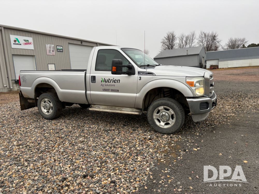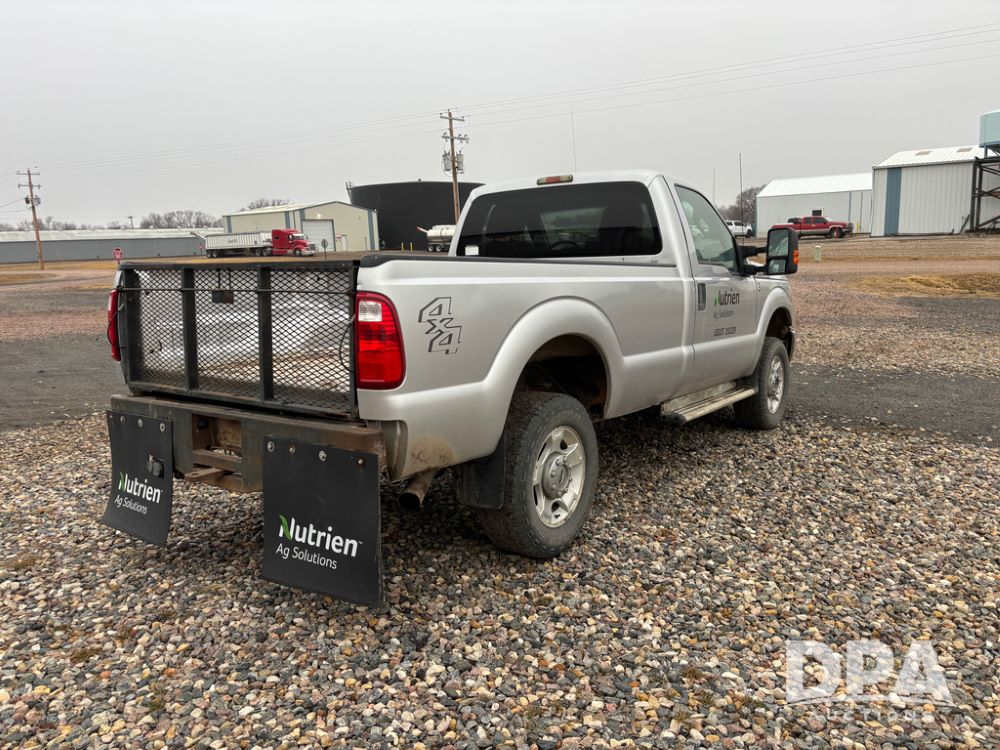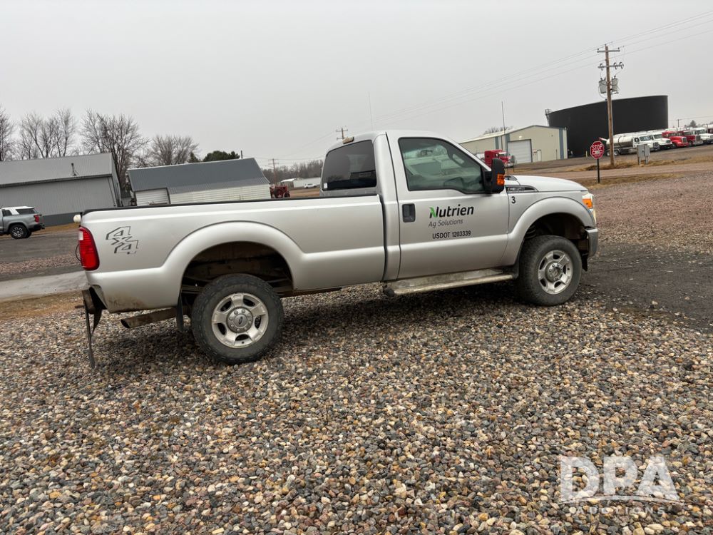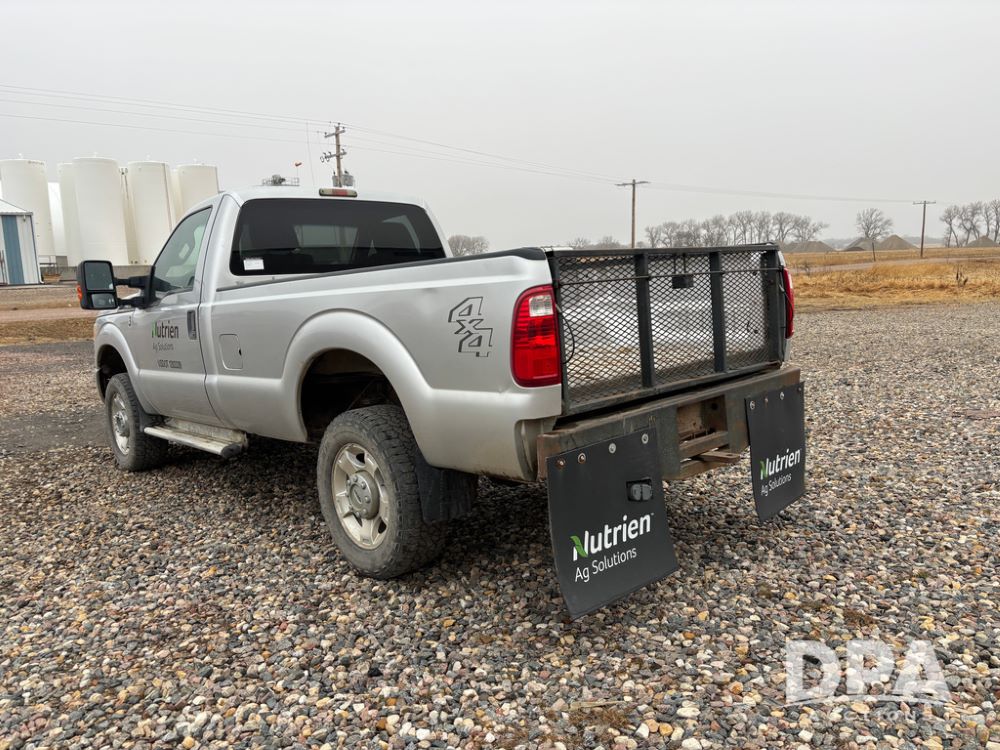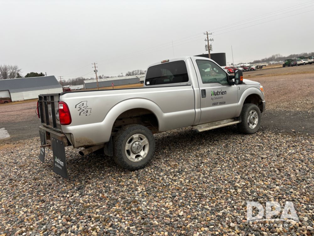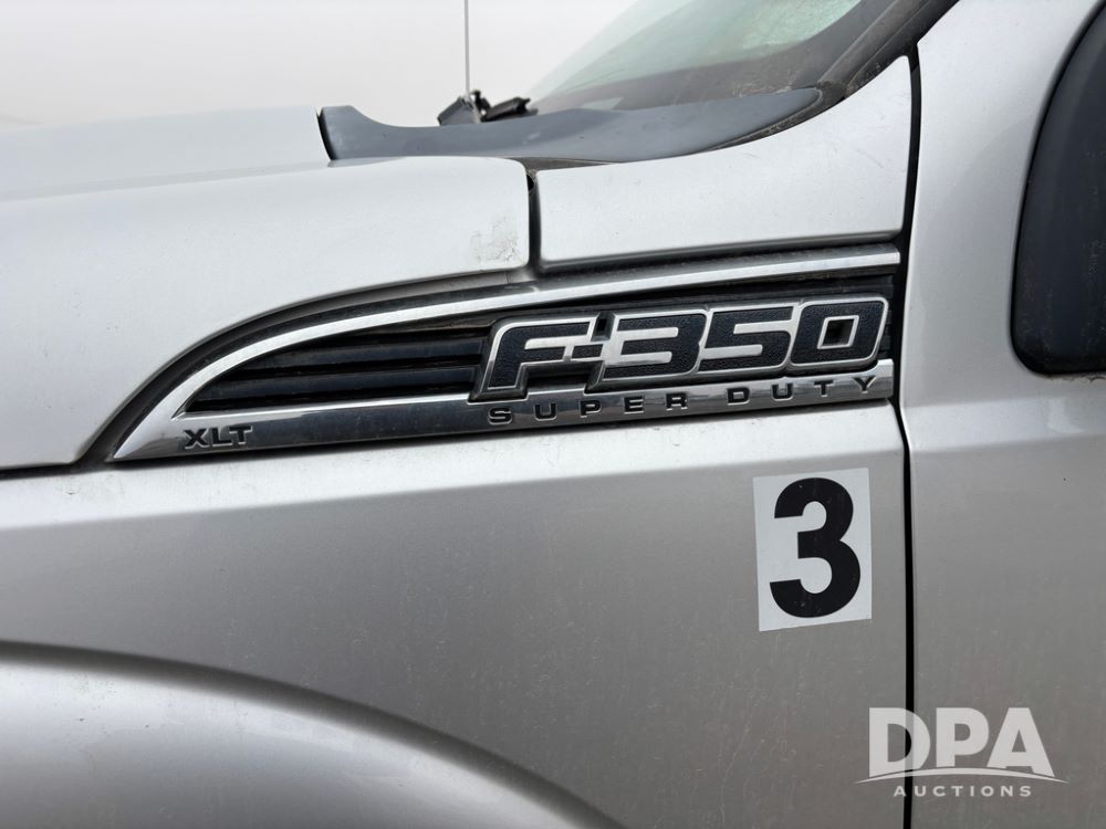 2011 Ford F350 Pickup (DR13435 Unit 79729), gas engine, automatic transmission, 4X4, regular cab, long box, running boards, air tailgate, 5th wheel ball, rear ag bumper, AM/FM CD radio, cruise control, power windows, 275/65R18 tires, odometer reads 89,914 miles.