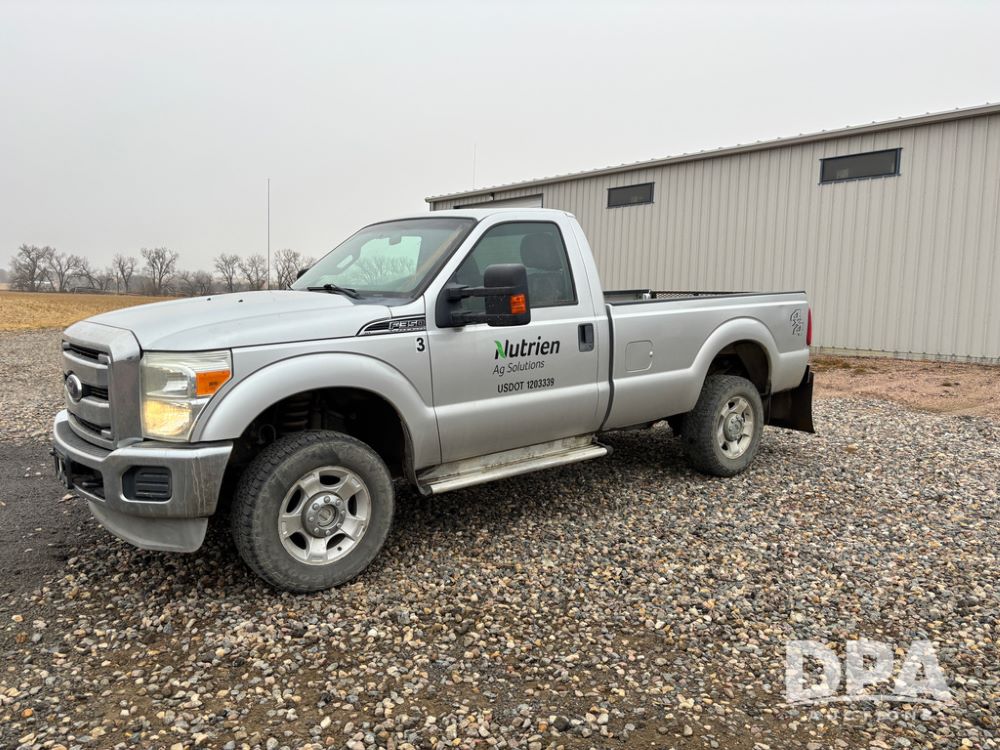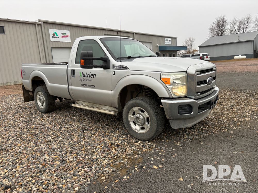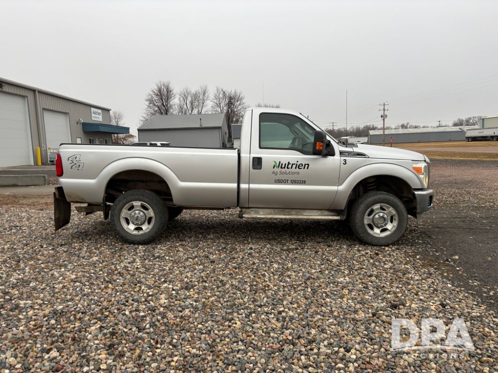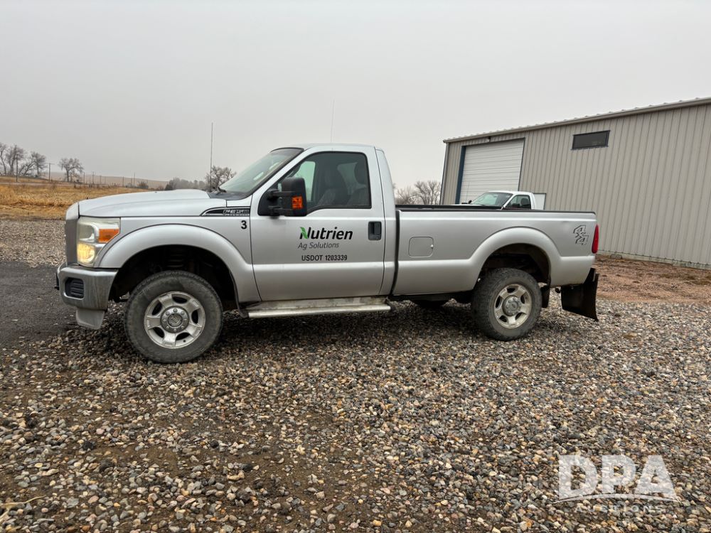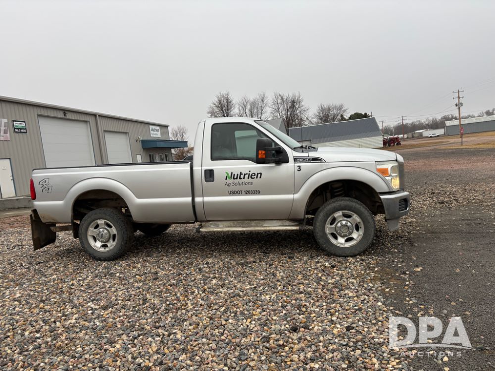 2011 Ford F350 Pickup (DR13435 Unit 79729), gas engine, automatic transmission, 4X4, regular cab, long box, running boards, air tailgate, 5th wheel ball, rear ag bumper, AM/FM CD radio, cruise control, power windows, 275/65R18 tires, odometer reads 89,914 miles.