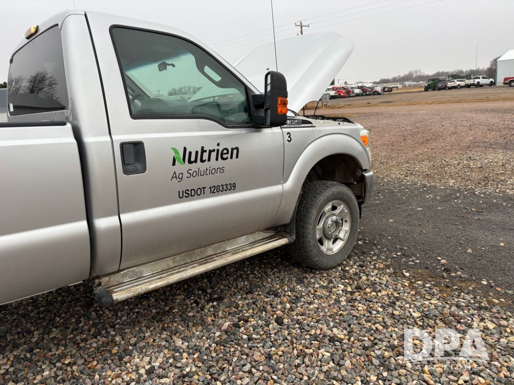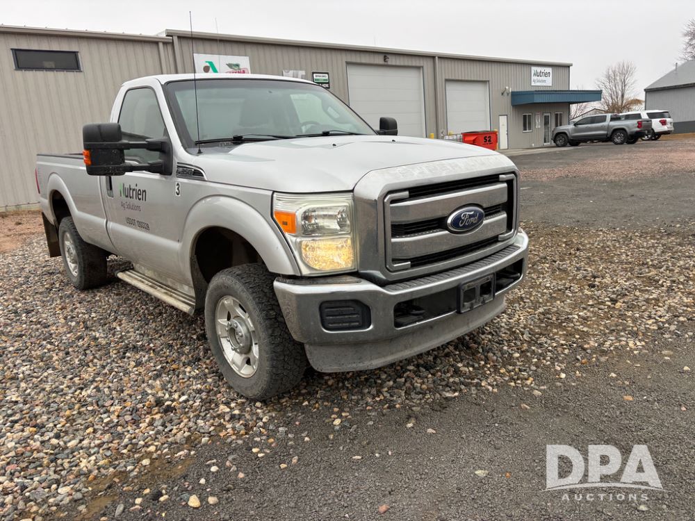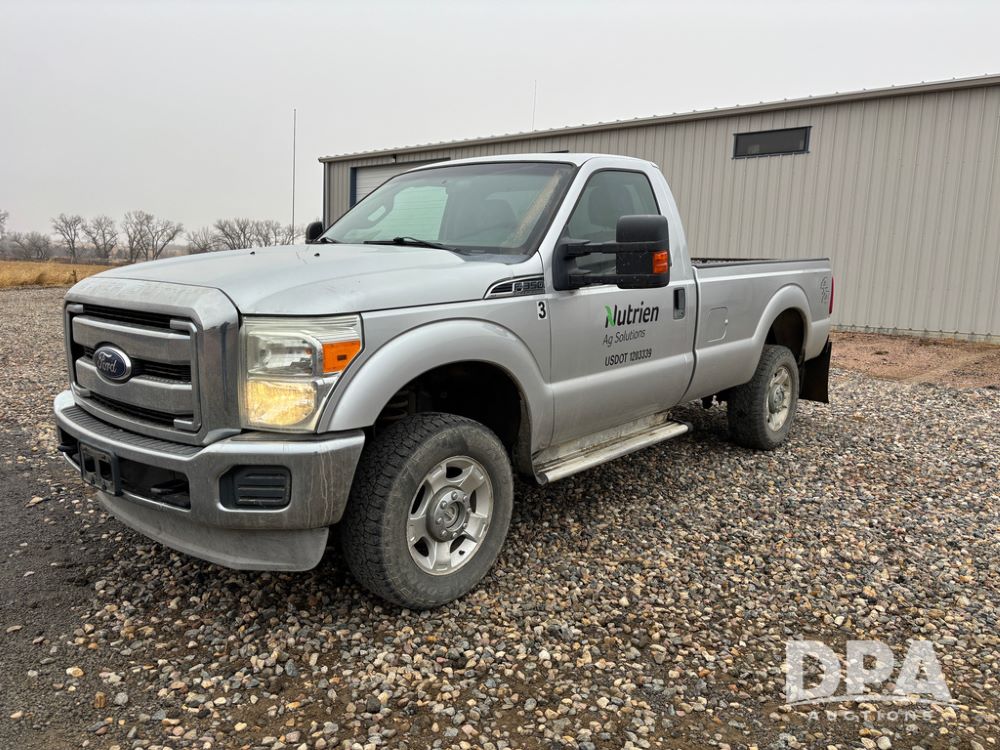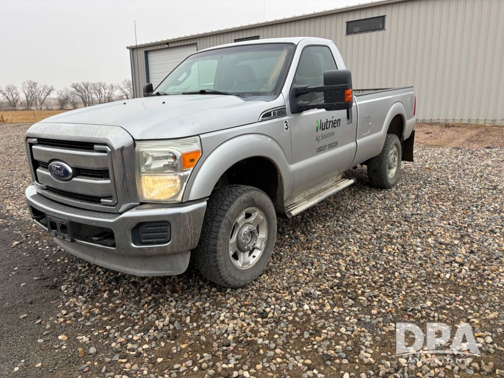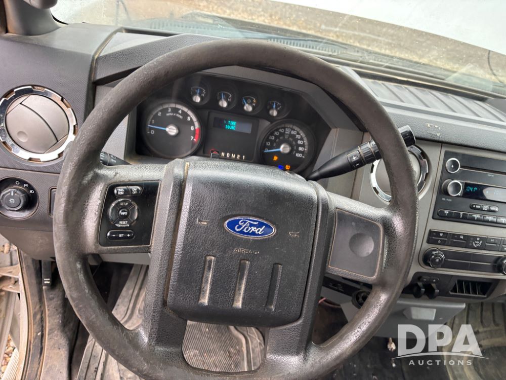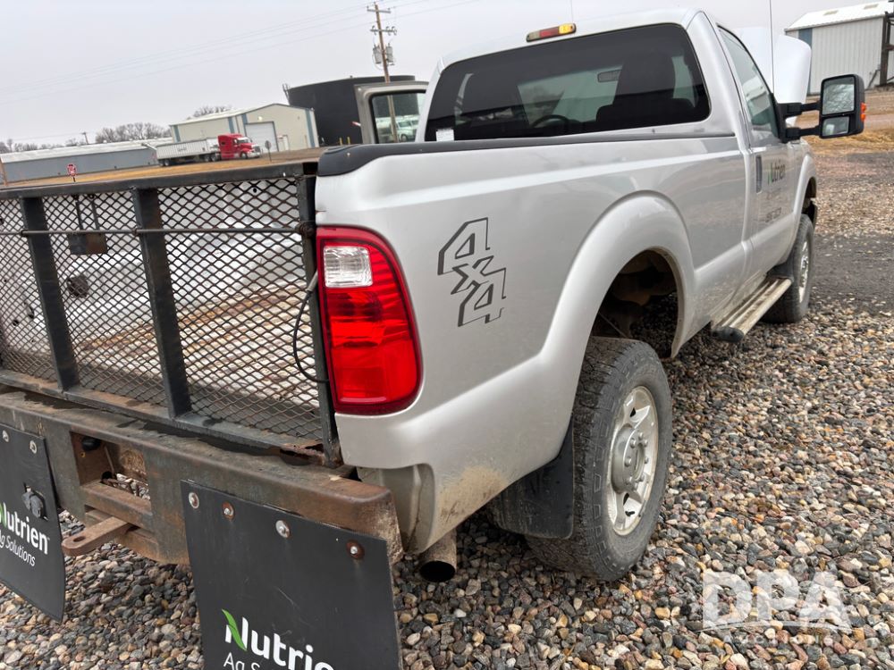 2011 Ford F350 Pickup (DR13435 Unit 79729), gas engine, automatic transmission, 4X4, regular cab, long box, running boards, air tailgate, 5th wheel ball, rear ag bumper, AM/FM CD radio, cruise control, power windows, 275/65R18 tires, odometer reads 89,914 miles.