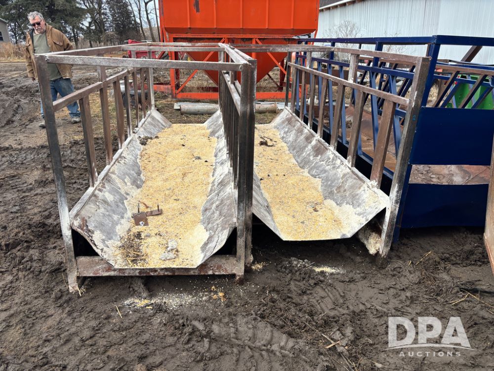 Steel Bunks (DR13414), (2) 12' steel trough double sided feed bunks.