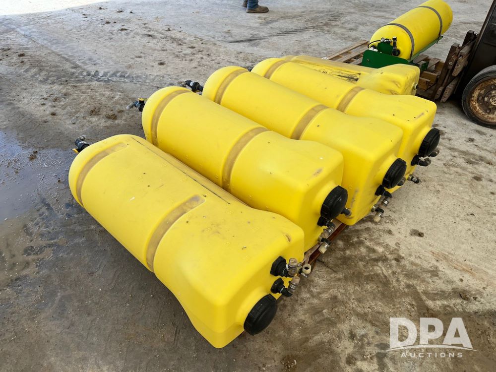 Direct Injector Spray System (JN4127), 4-50 gallon tanks with two high flow pumps for high volume applications, 1-35 gallon tank with a dedicated low flow pump for lower rate products, setup allows for accurate injection, quick product changes, reduced waste, and improved productivity.
