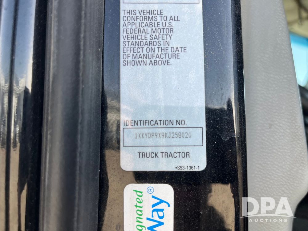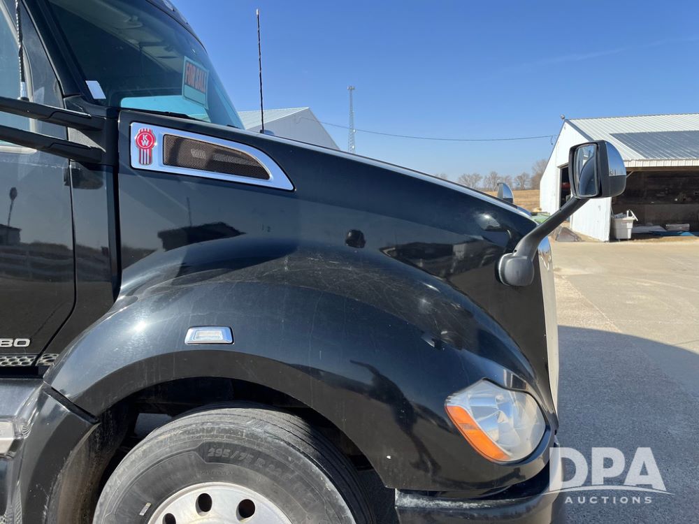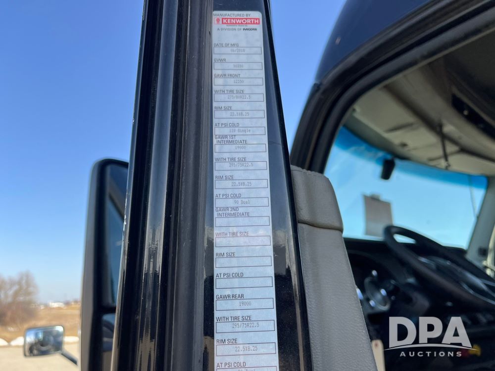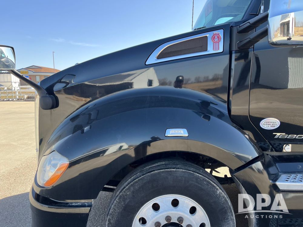2019 Kenworth T680 Semi Truck (JN4141), Paccar engine, automatic transmission, air ride suspension, tandem axle, 2.64 axle ratio, air slide 5th wheel, Bendix system, large bunk, refrigerator, 295/75R22.5 tires, shows 773,704 miles.