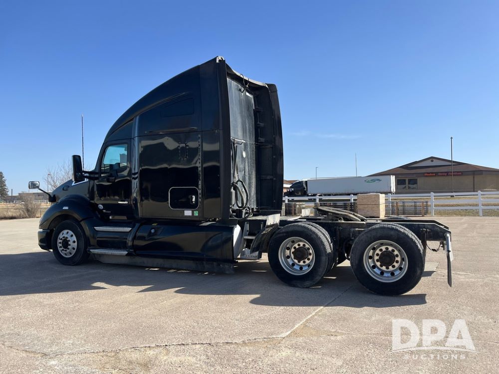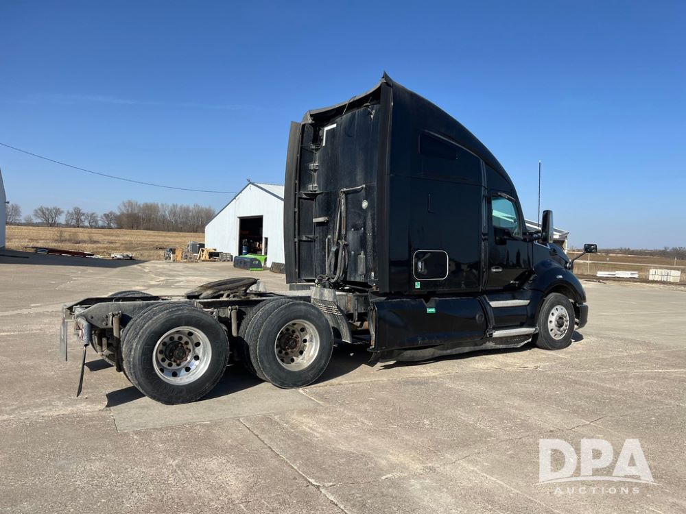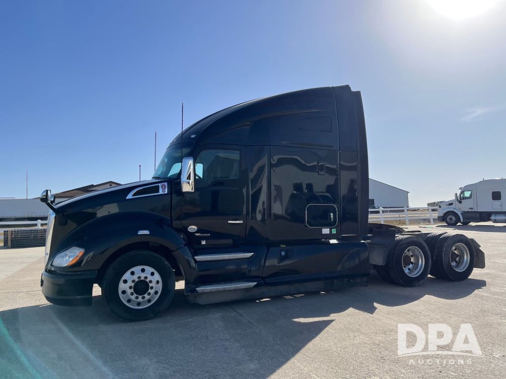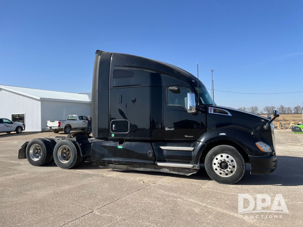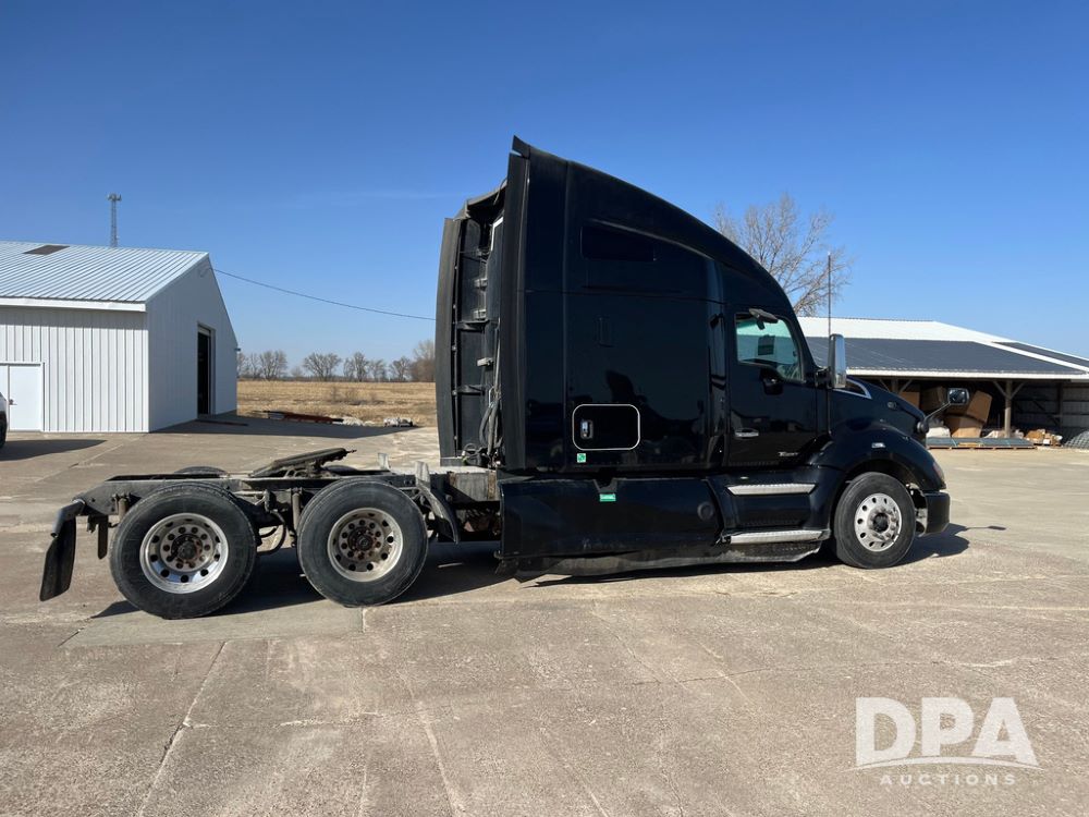 2019 Kenworth T680 Semi Truck (JN4141), Paccar engine, automatic transmission, air ride suspension, tandem axle, 2.64 axle ratio, air slide 5th wheel, Bendix system, large bunk, refrigerator, 295/75R22.5 tires, shows 773,704 miles.