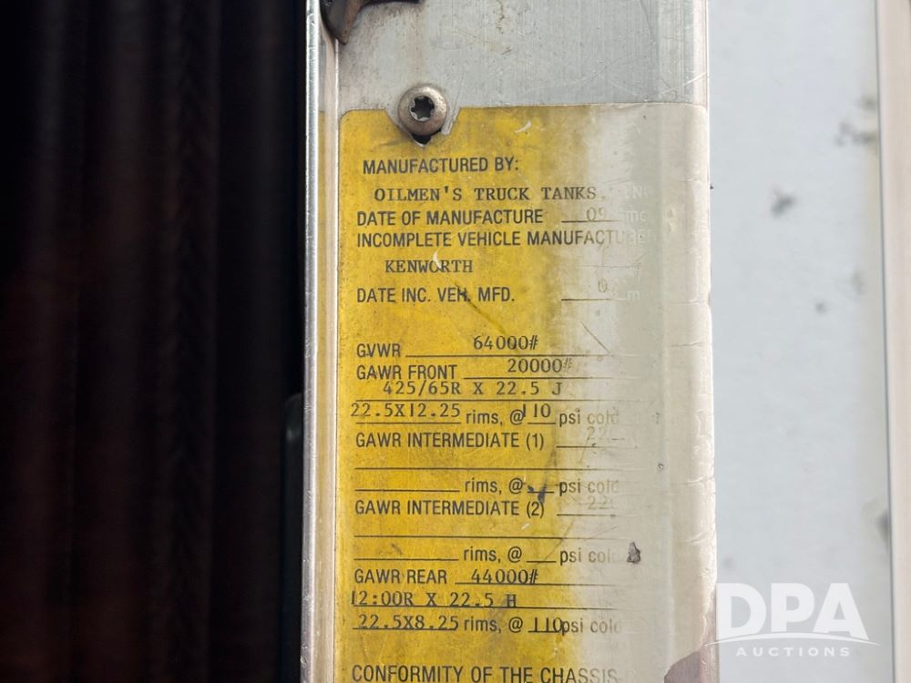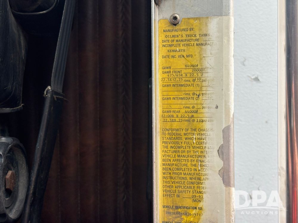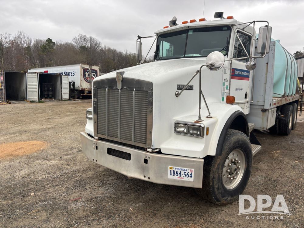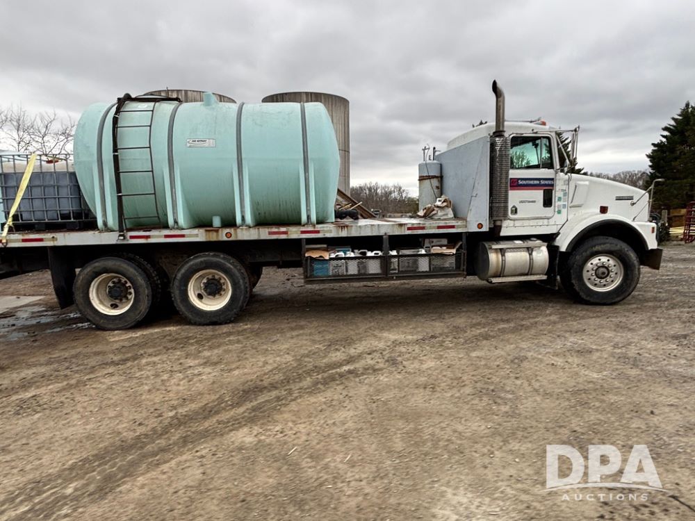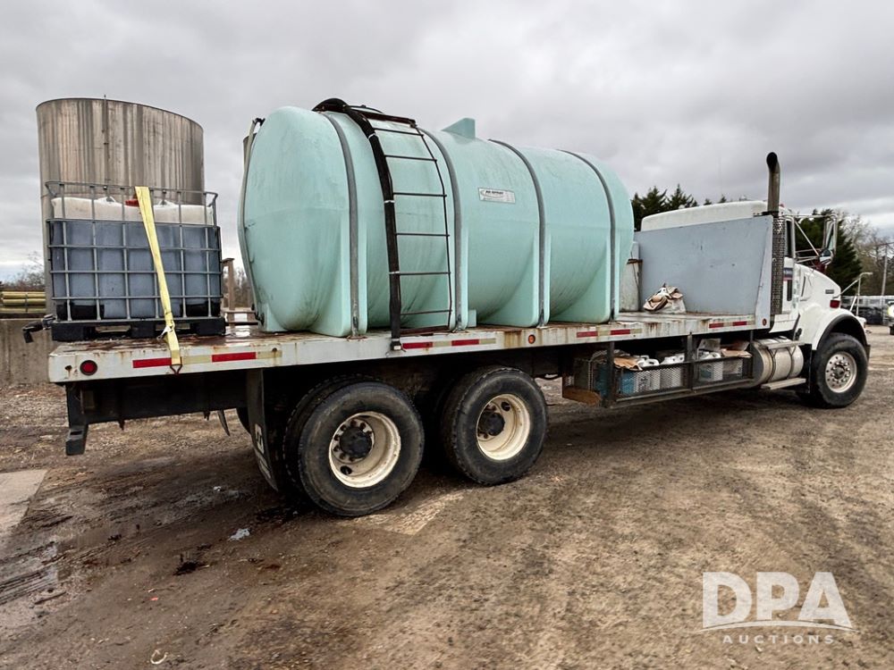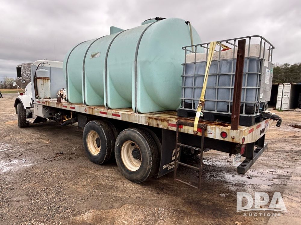 1994 Kenworth T800 Liquid Nurse Truck (GP12931, Unit T7234), Cummins N14 diesel engine, Super 10 speed transmission, heat, Am/Fm radio, tandem axle, air ride suspension, rear flatbed, approx. 3,000 gallon poly flat bottom liquid tank, pump, 425/65R22.5 front tires, 12R22.5 rear tires, shows 398,215 miles.