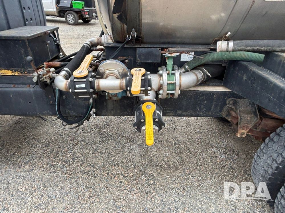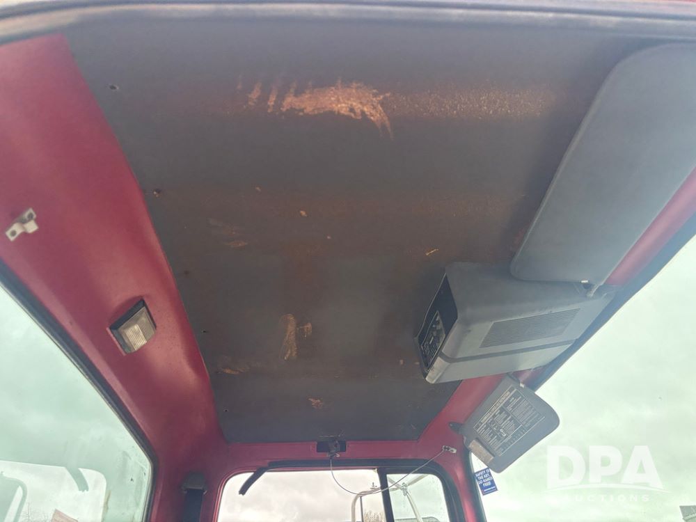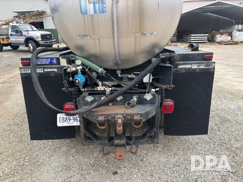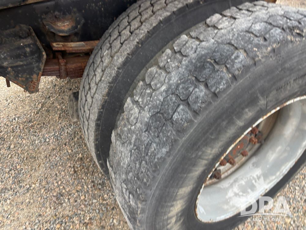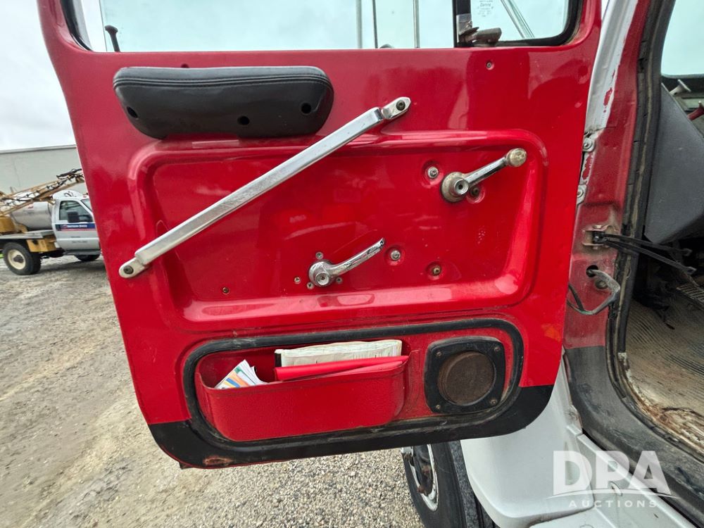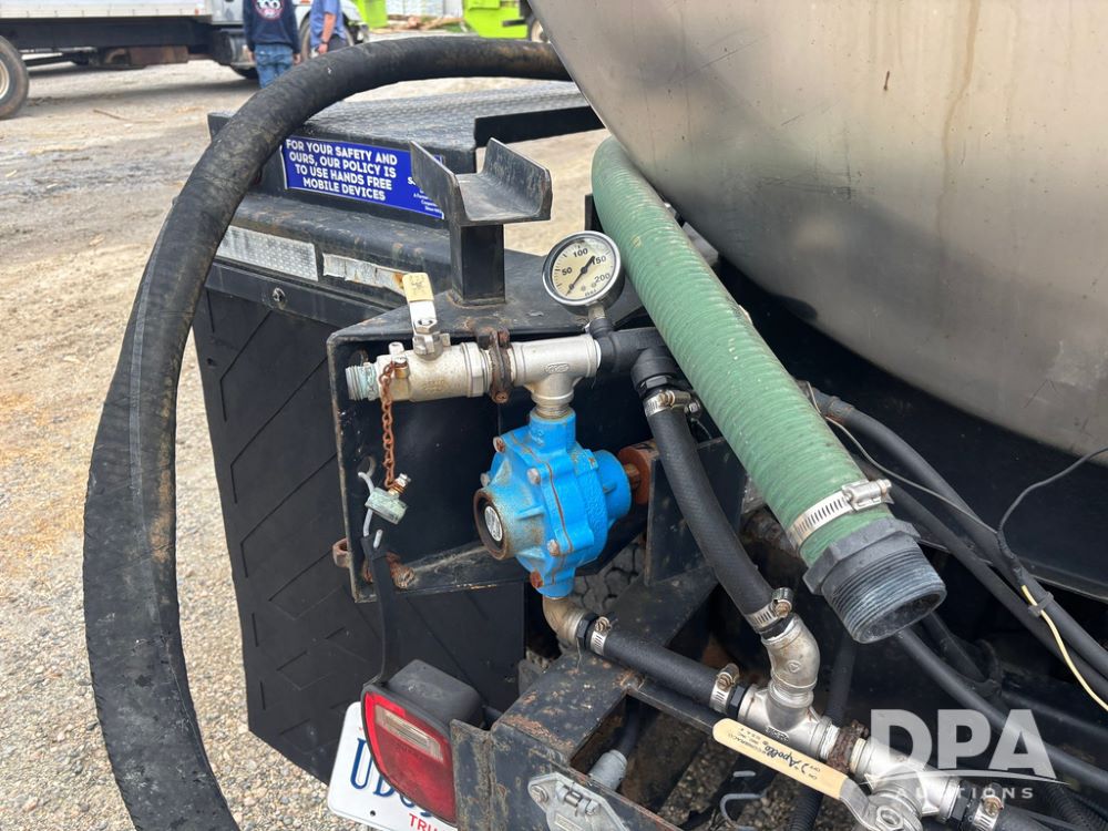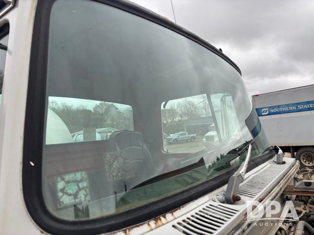 1991 Ford L8000 Liquid Nurse Truck (GP12933, Unit 4136), diesel engine, 5x2 transmission, heat, Am/Fm radio, single axle, spring suspension, approx. 1,000 gallon stainless steel liquid nurse tank, 11R22.5 tires, rear pintle hitch, shows 97,892 miles.