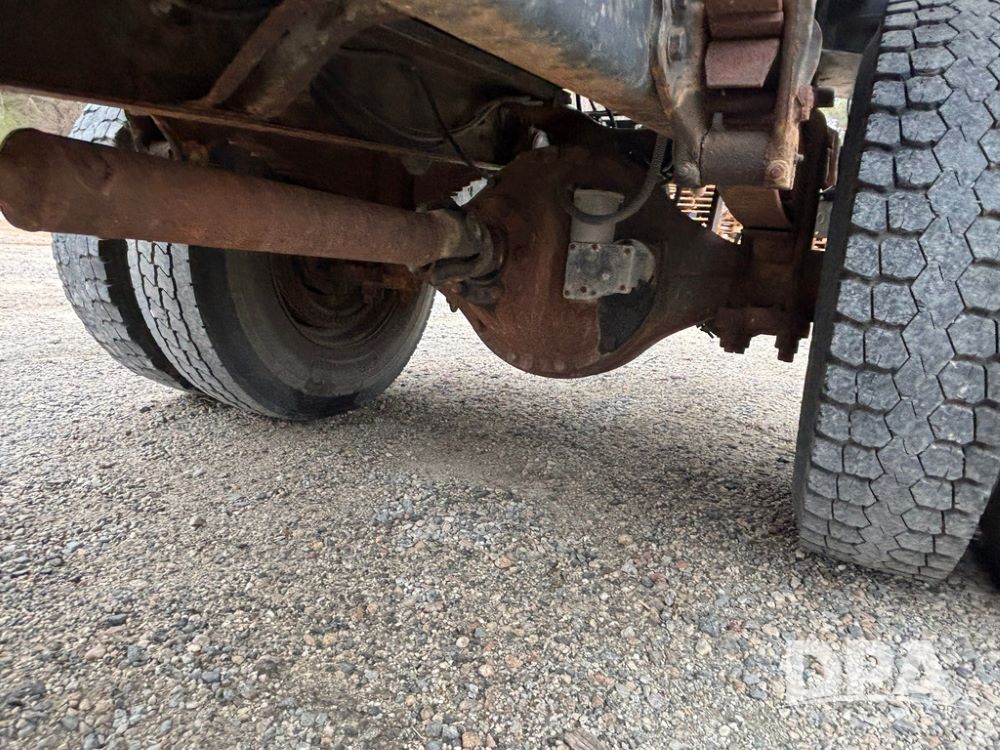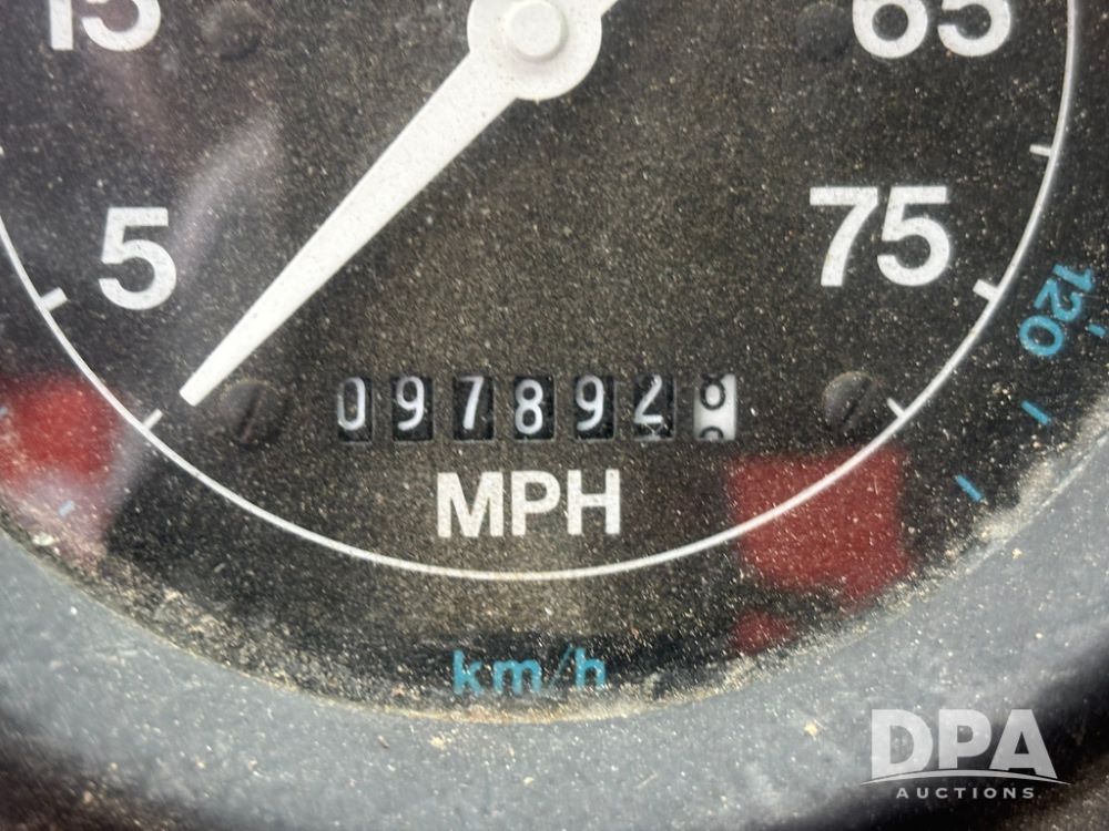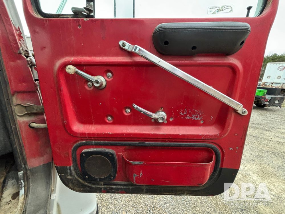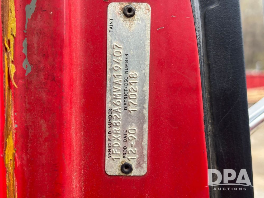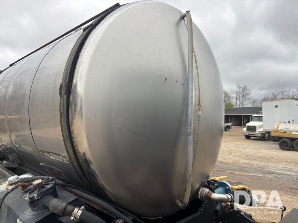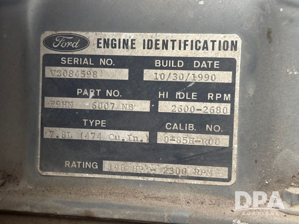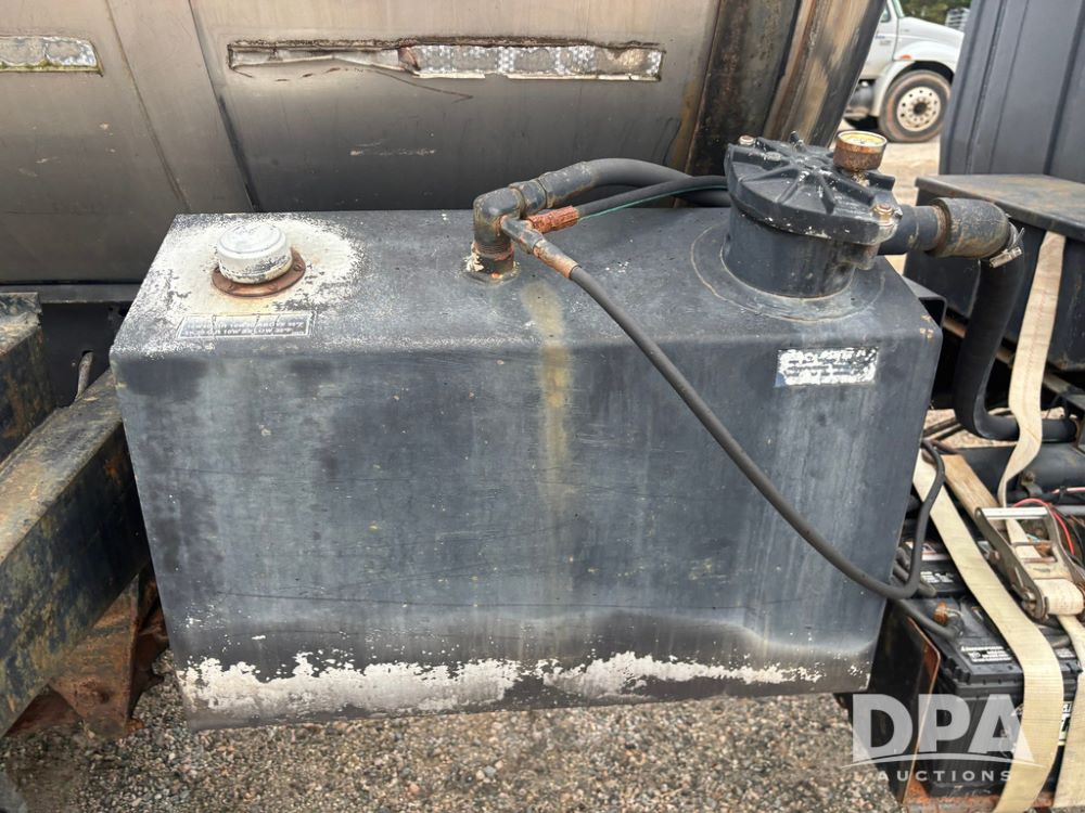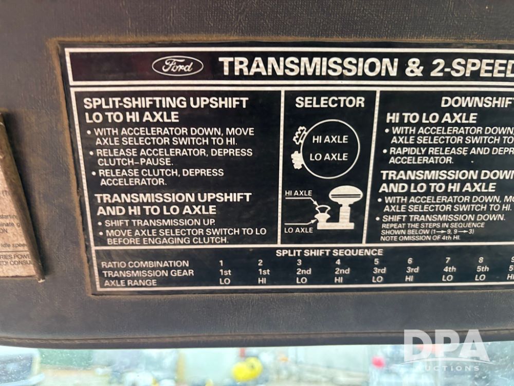 1991 Ford L8000 Liquid Nurse Truck (GP12933, Unit 4136), diesel engine, 5x2 transmission, heat, Am/Fm radio, single axle, spring suspension, approx. 1,000 gallon stainless steel liquid nurse tank, 11R22.5 tires, rear pintle hitch, shows 97,892 miles.