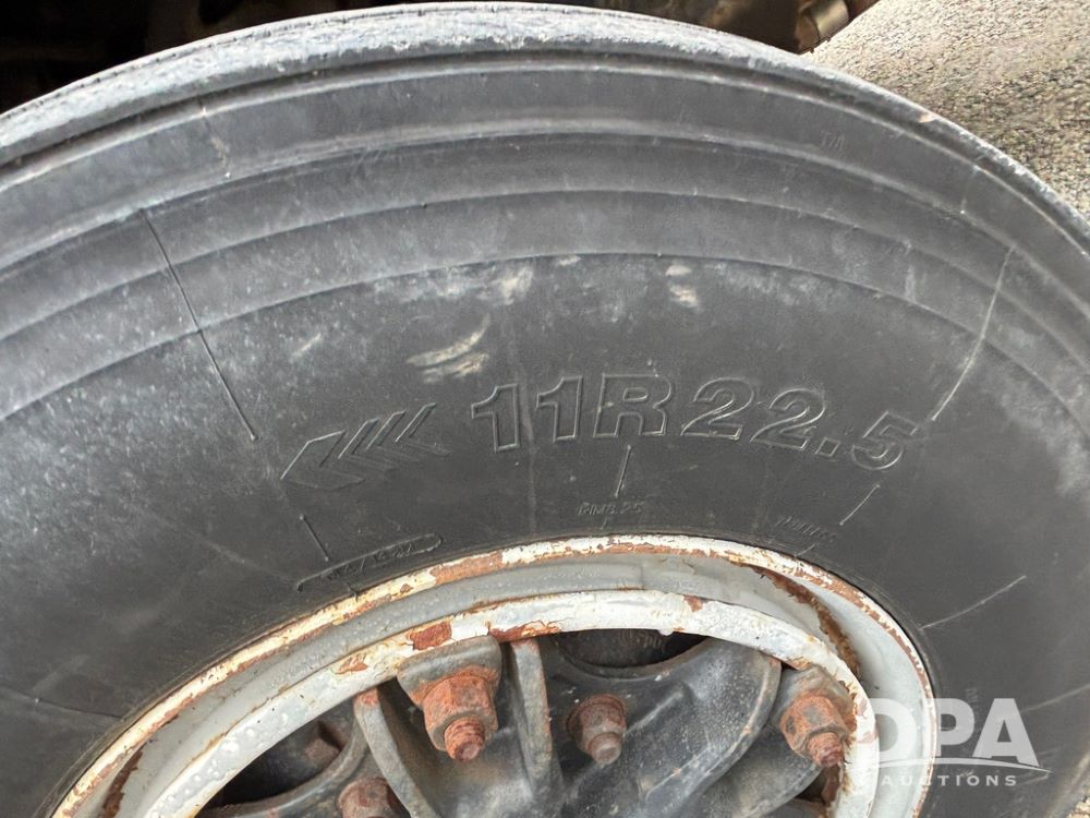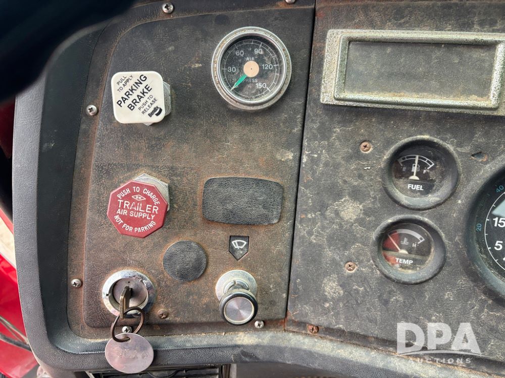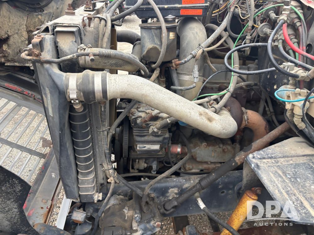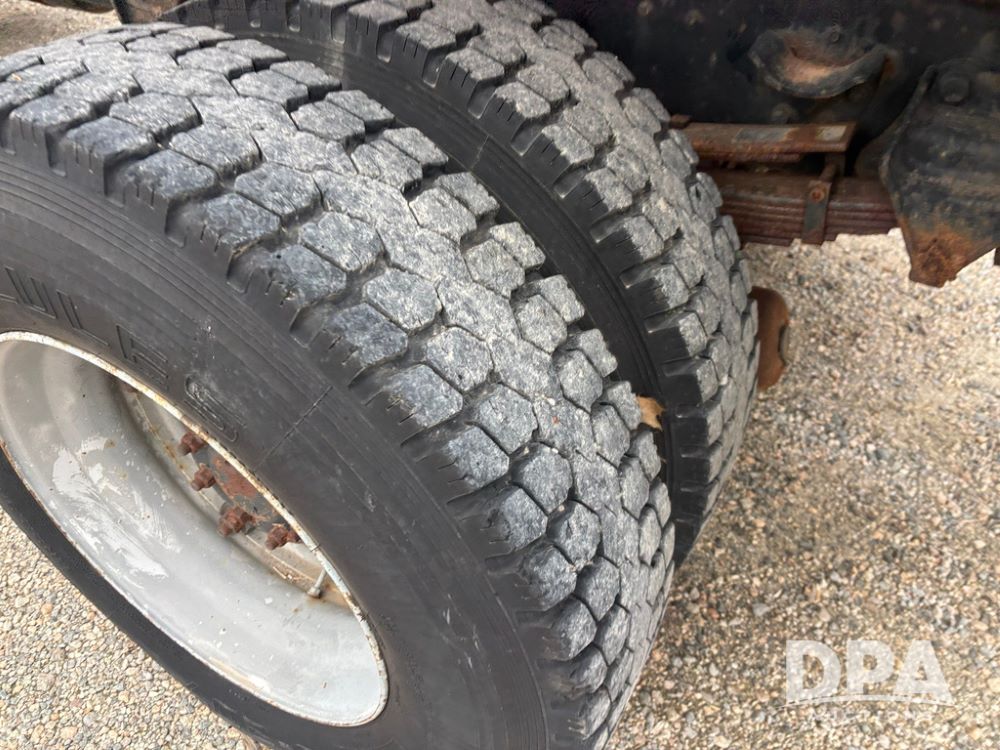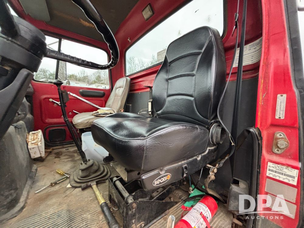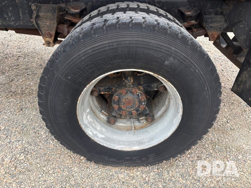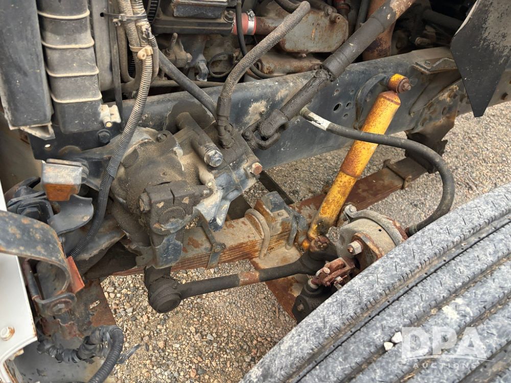 1991 Ford L8000 Liquid Nurse Truck (GP12933, Unit 4136), diesel engine, 5x2 transmission, heat, Am/Fm radio, single axle, spring suspension, approx. 1,000 gallon stainless steel liquid nurse tank, 11R22.5 tires, rear pintle hitch, shows 97,892 miles.