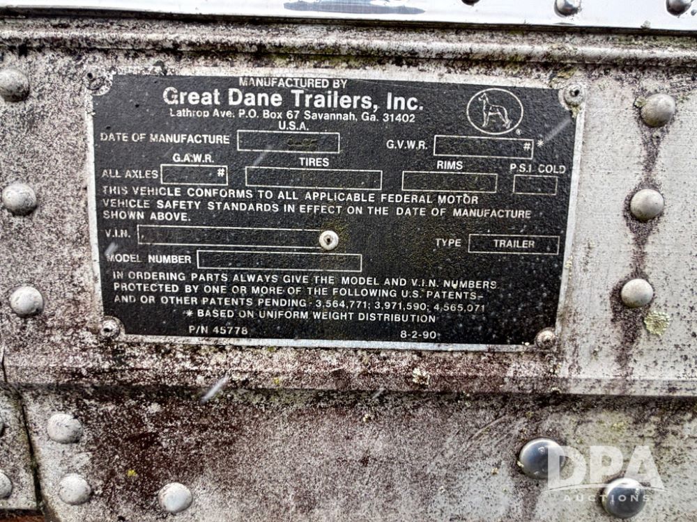 1996 Great Dan Dry Van Trailer (GP12940, Unit 4525), dry van trailer, tandem axle, spring suspension, roll up door, 11R22.5 tires, landing gear.