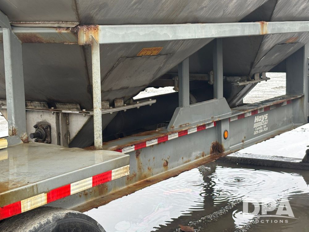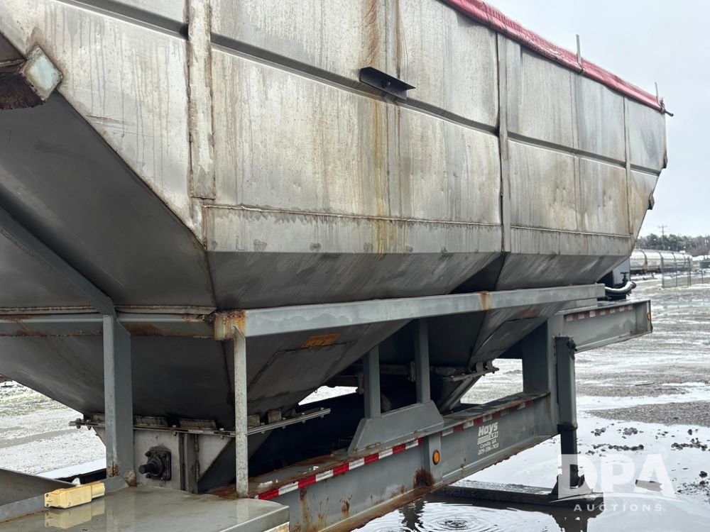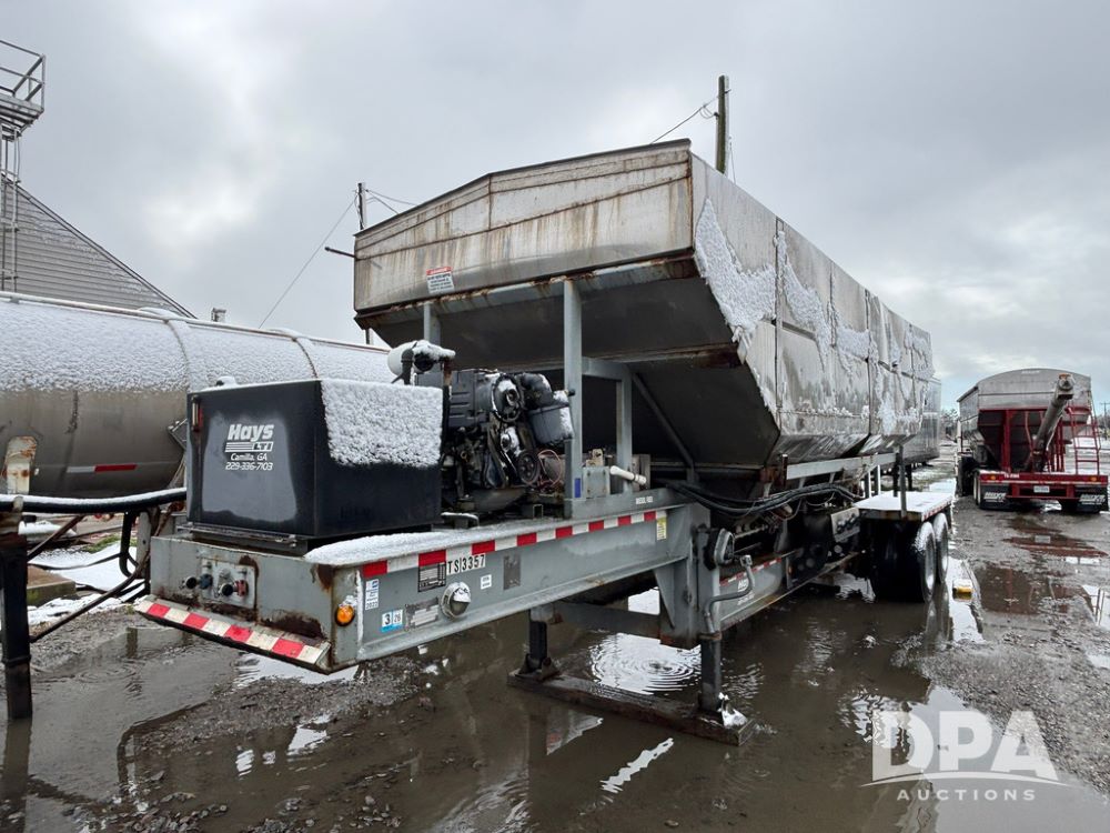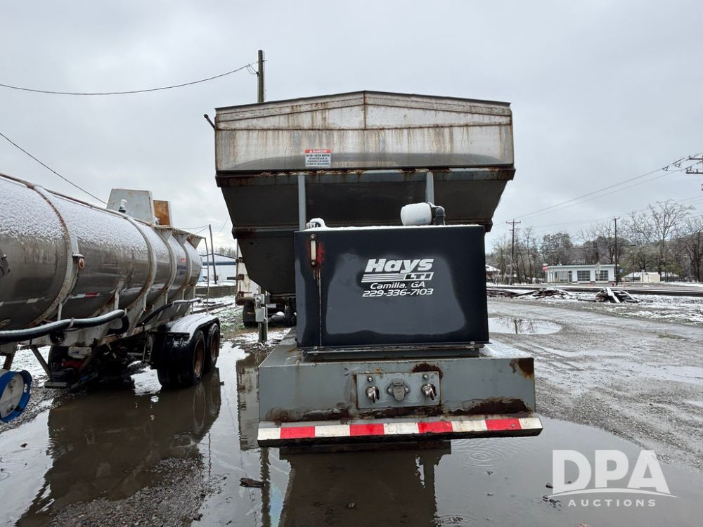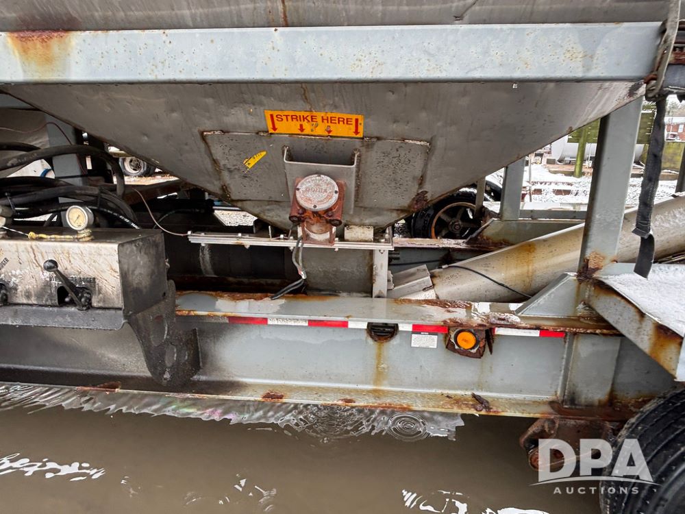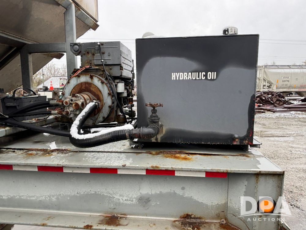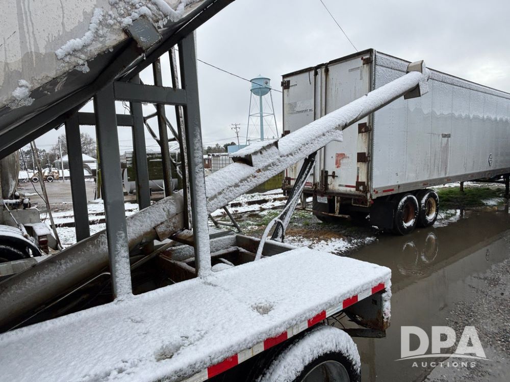 2003 KBH Dry Tender Trailer (GP12935, Unit TS3357), 2003 KBH dry tender trailer, 24 ton capacity, 32 foot trailer, rear discharge auger, roll tarp, vibrators, diesel engine, hydraulic, tandem axle, spring suspension, 225/70R22.5 tires.