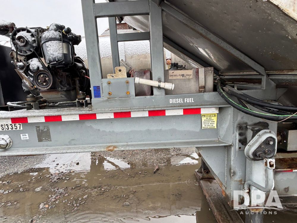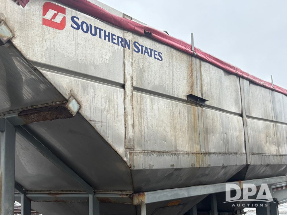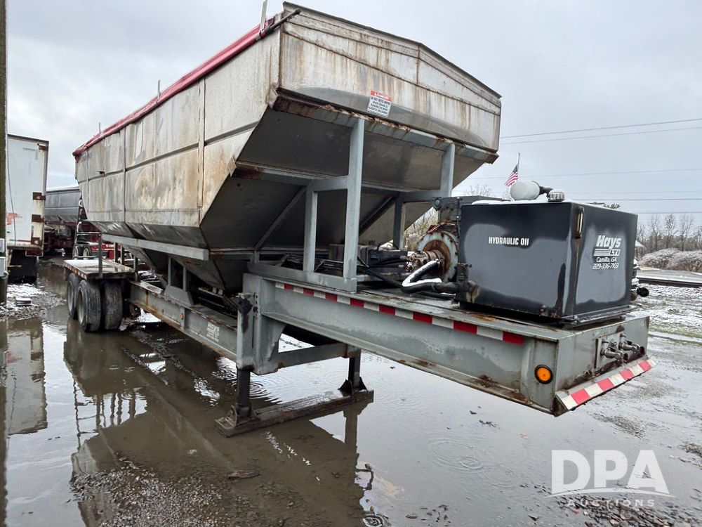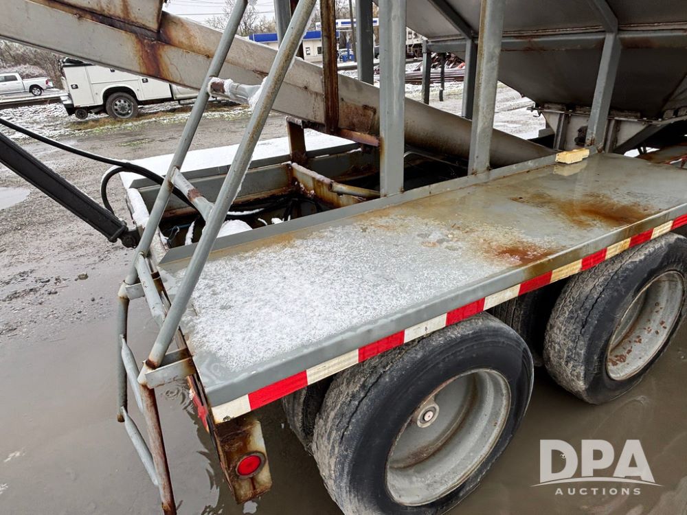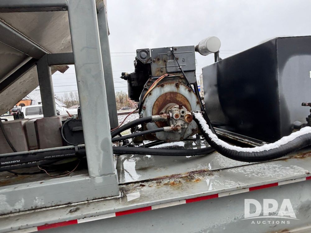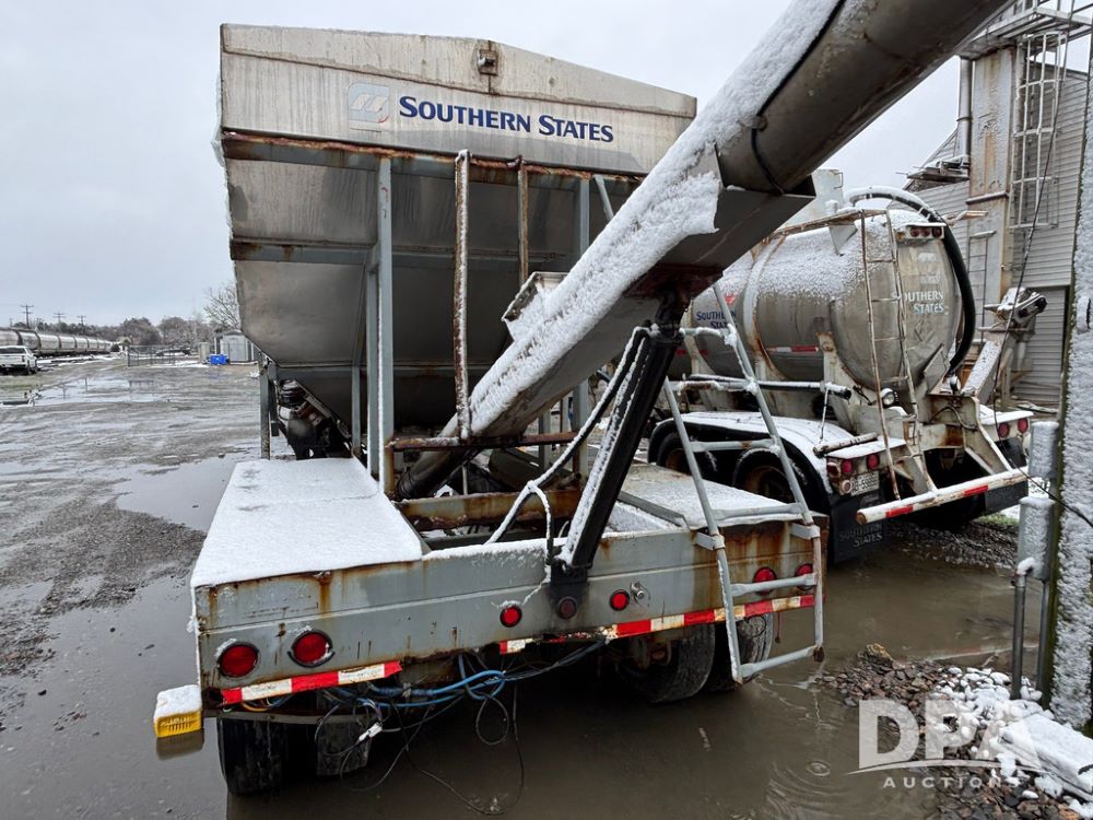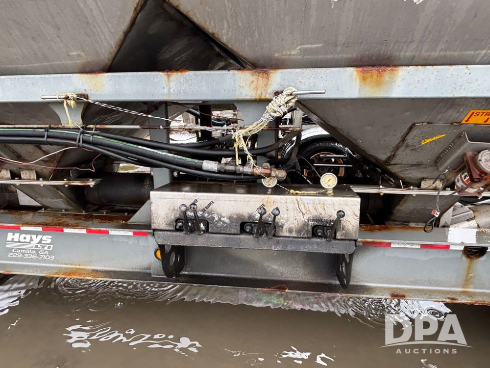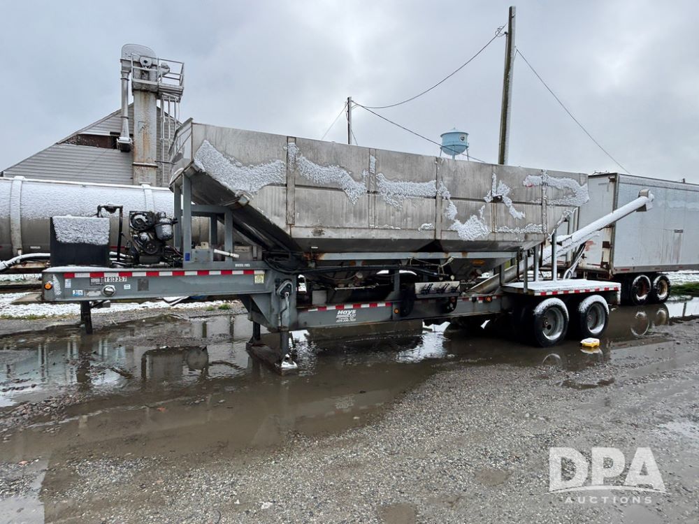 2003 KBH Dry Tender Trailer (GP12935, Unit TS3357), 2003 KBH dry tender trailer, 24 ton capacity, 32 foot trailer, rear discharge auger, roll tarp, vibrators, diesel engine, hydraulic, tandem axle, spring suspension, 225/70R22.5 tires.