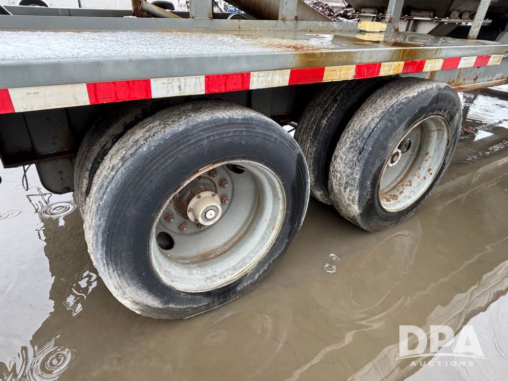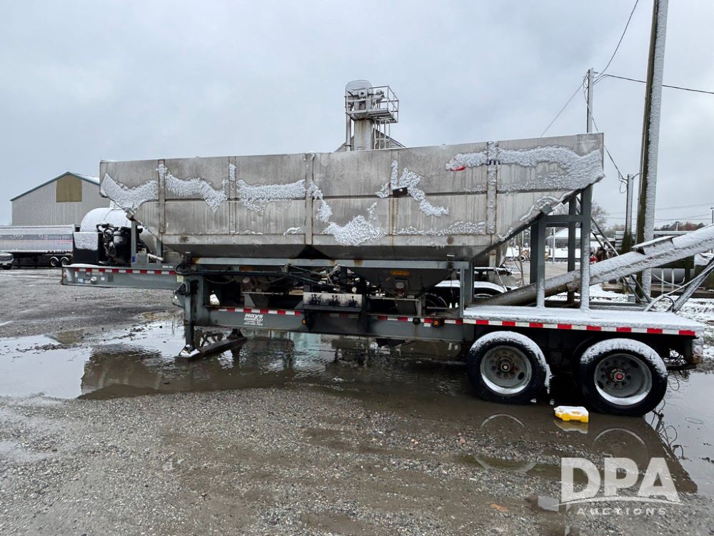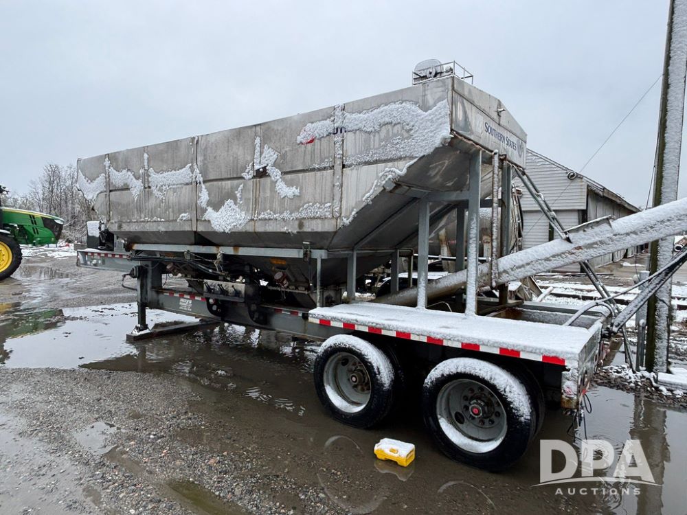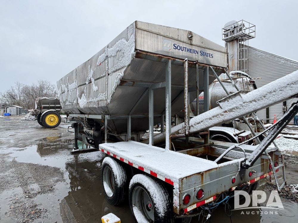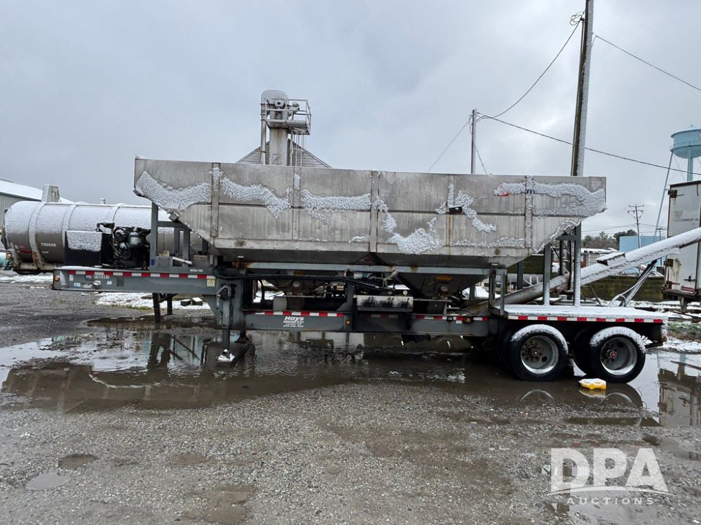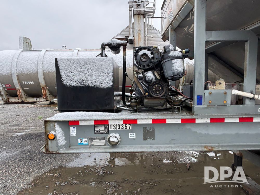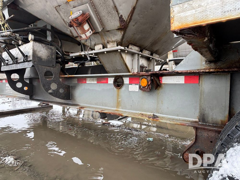 2003 KBH Dry Tender Trailer (GP12935, Unit TS3357), 2003 KBH dry tender trailer, 24 ton capacity, 32 foot trailer, rear discharge auger, roll tarp, vibrators, diesel engine, hydraulic, tandem axle, spring suspension, 225/70R22.5 tires.