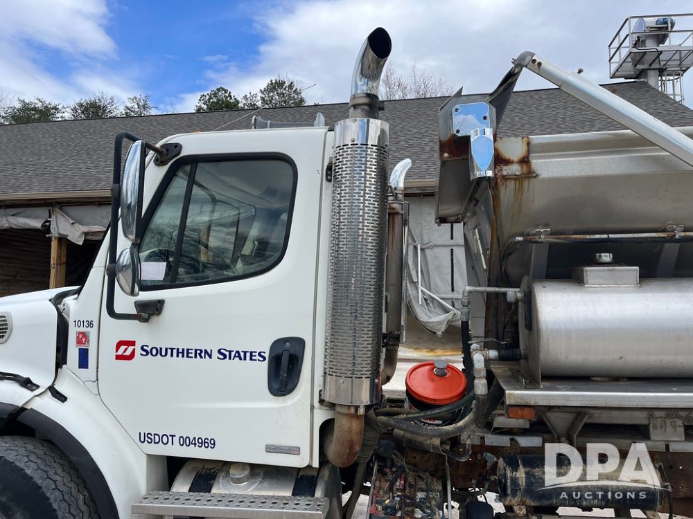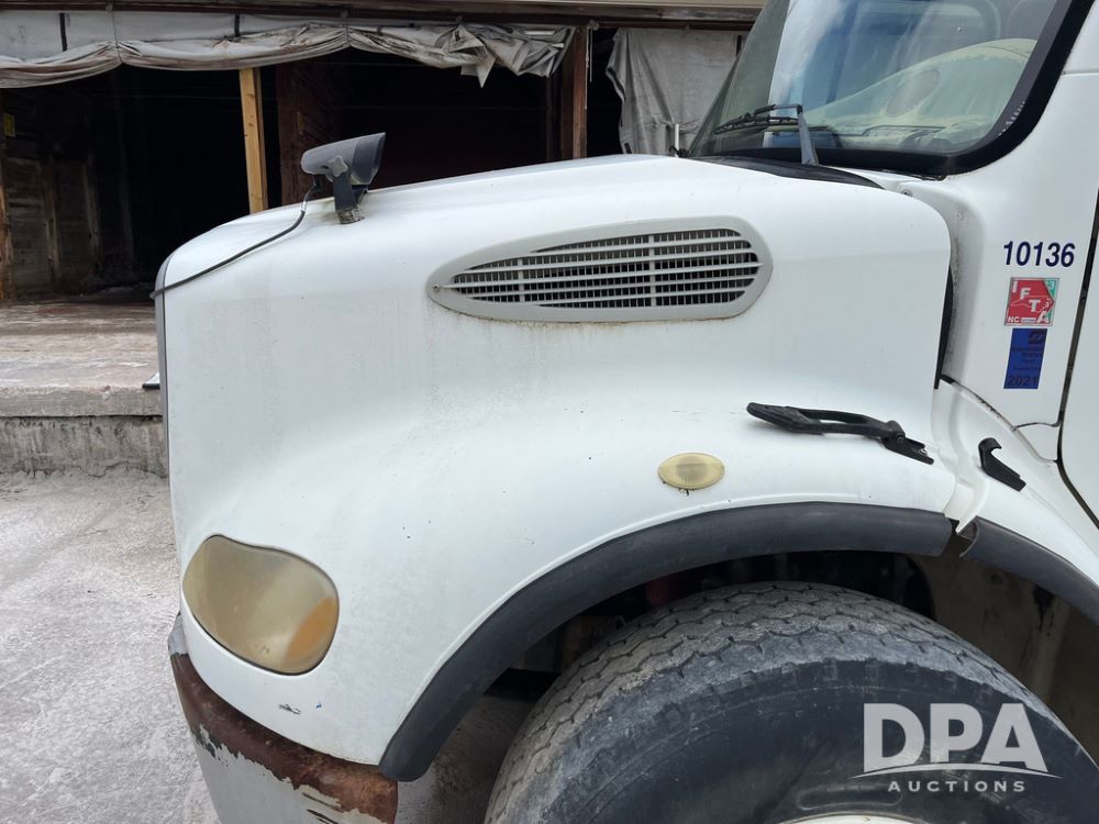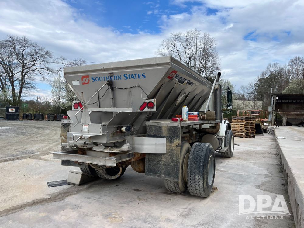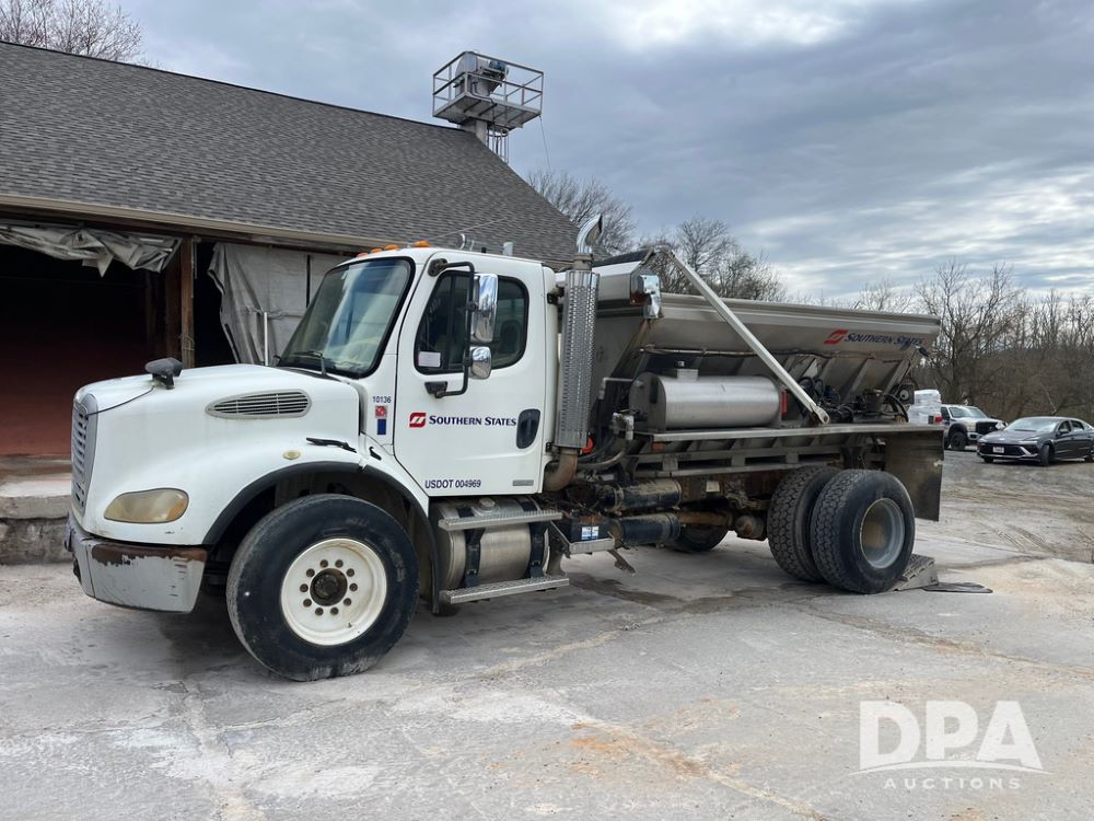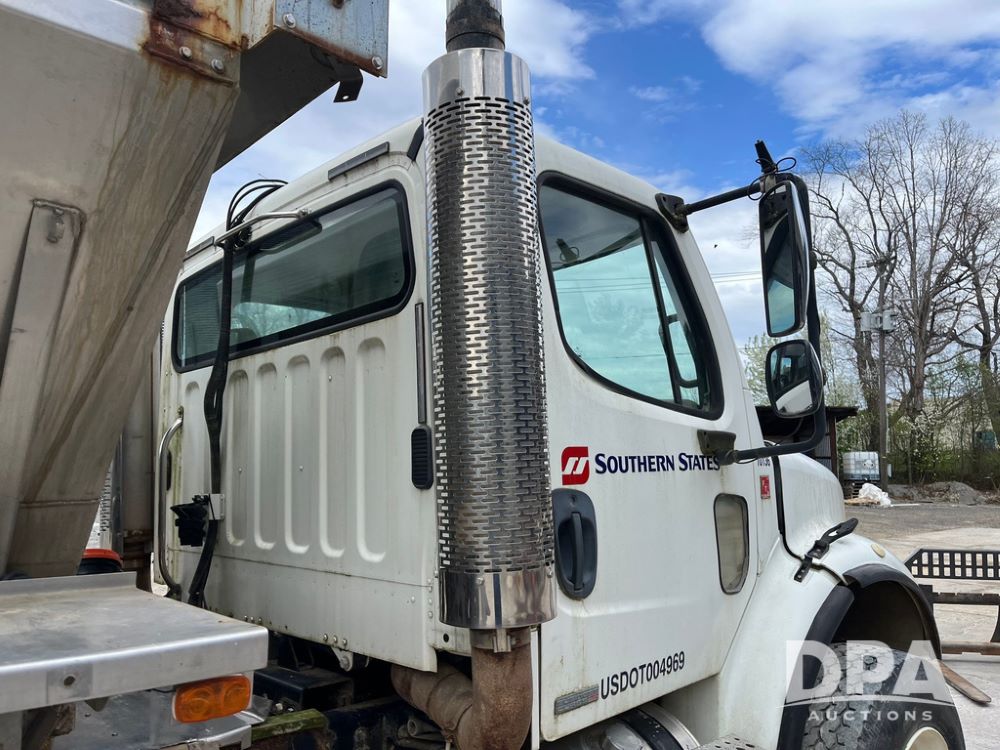 2006 Freightliner Business Class M2 Dry Floater (JN4155, Unit F10136), Cat diesel engine, Allison automatic transmission, heat, Am/Fm radio, single axle, stainless steel dry spreadre box, dual spinners, slatted chain, hydraulic, electric rolling tarp, 385/65R22.5 tires, GVWR 33,000 pounds.