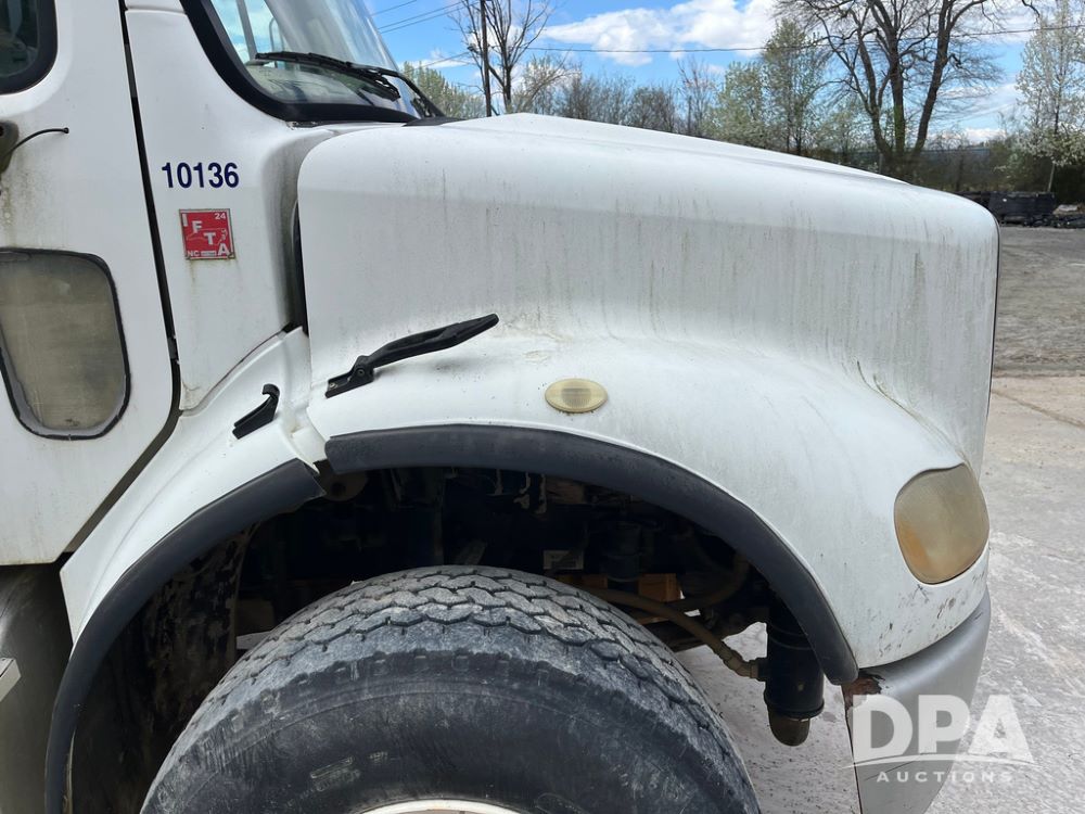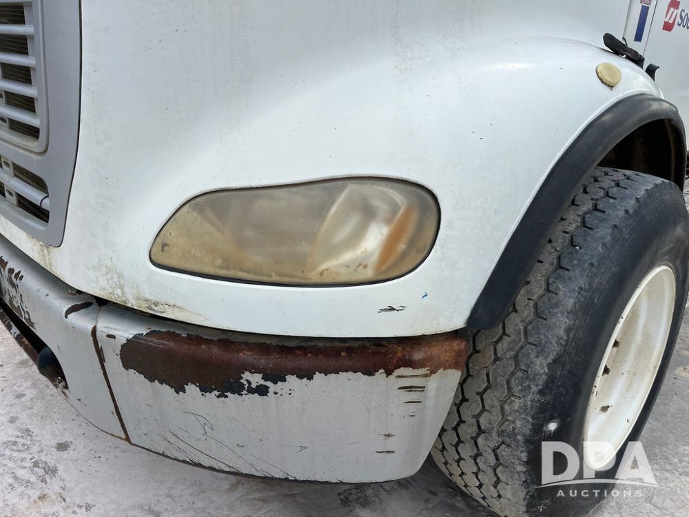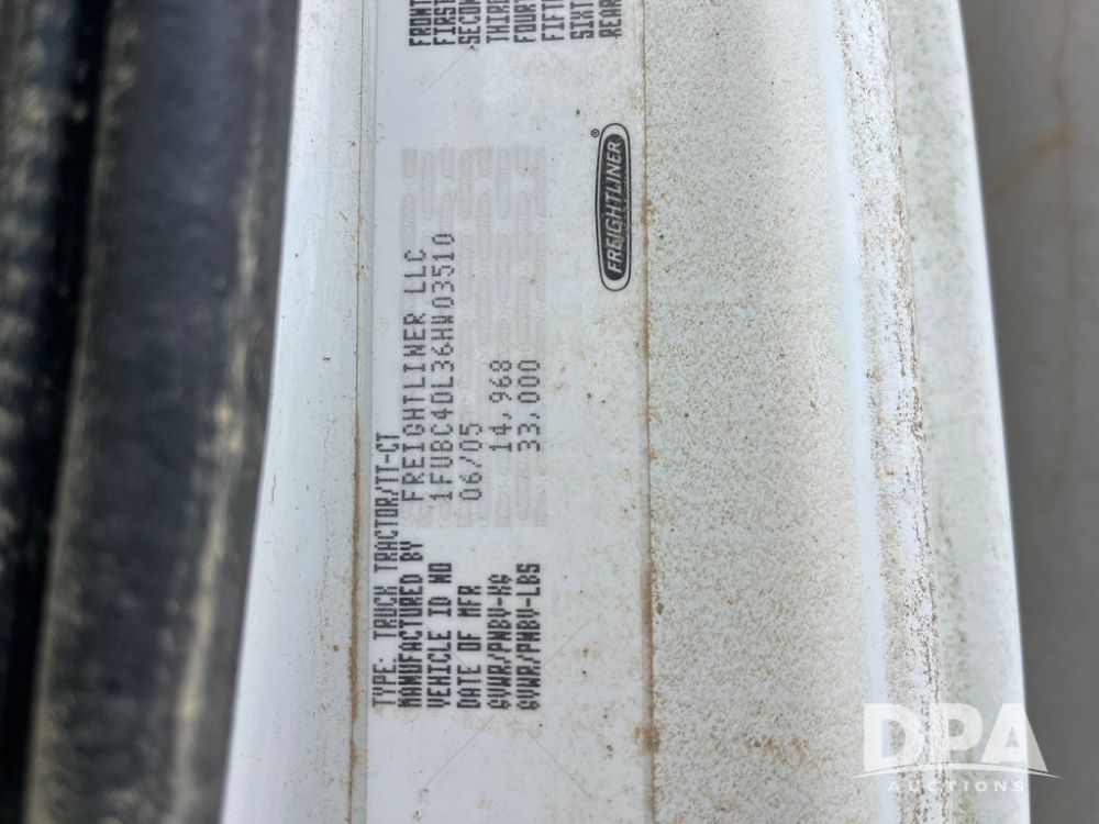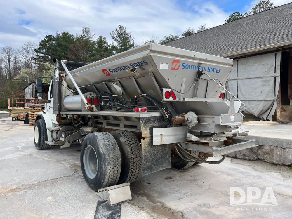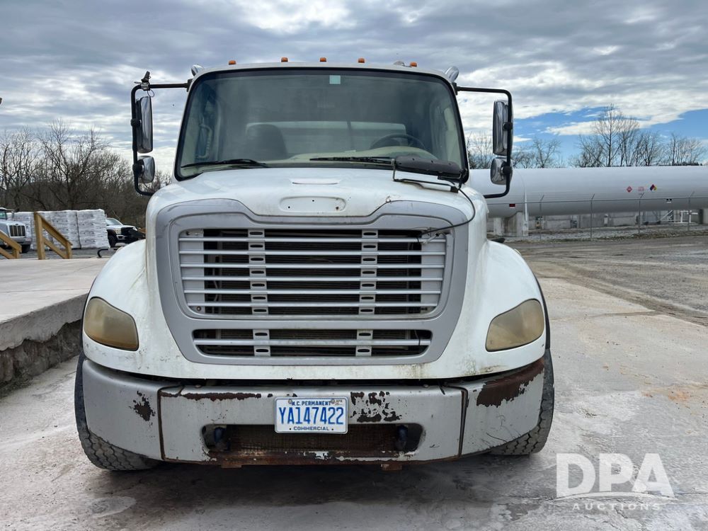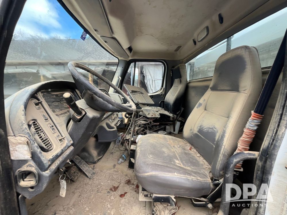 2006 Freightliner Business Class M2 Dry Floater (JN4155, Unit F10136), Cat diesel engine, Allison automatic transmission, heat, Am/Fm radio, single axle, stainless steel dry spreadre box, dual spinners, slatted chain, hydraulic, electric rolling tarp, 385/65R22.5 tires, GVWR 33,000 pounds.