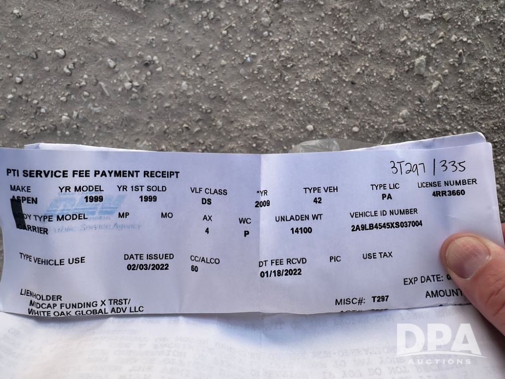 1999 Aspen Heavy Duty Quad Axle Trailer (DPA2863, Unit 3T297), 29 ft. well, mechanical detach, quad axle, 44 ton high capacity, specialized hauling, tires- 215/75R17.5.