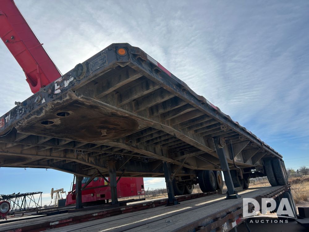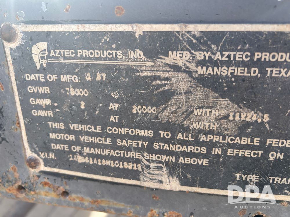 1987 Aztec Flatbed Trailer (CP1721, Unit 3T312), 30 ft., tandem axle, spring ride suspension, ratchet straps, tires- 11R24.5.