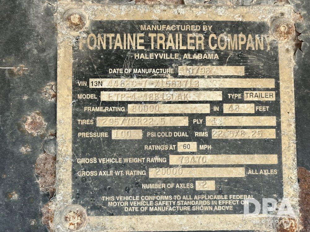1999 Fontaine Flatbed Trailer (DPA2864, Unit 418104), 48ft., sliding tandem axle, air ride suspension, ratchet straps, tires- 275/70R22.5.