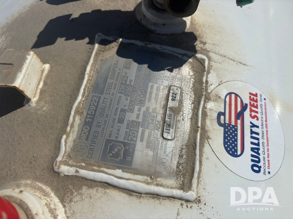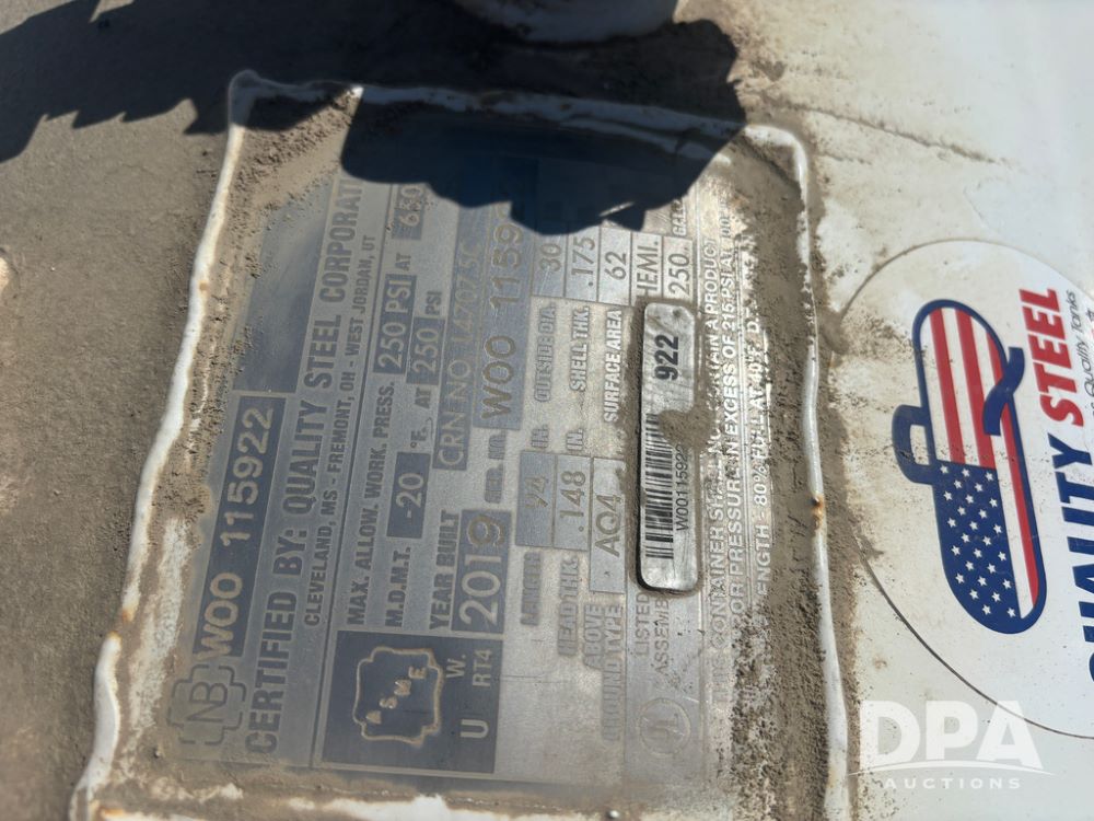 2019 Quality Steel LP Tank (DR13472), 250 gallon LP storage tank w/good data tag.