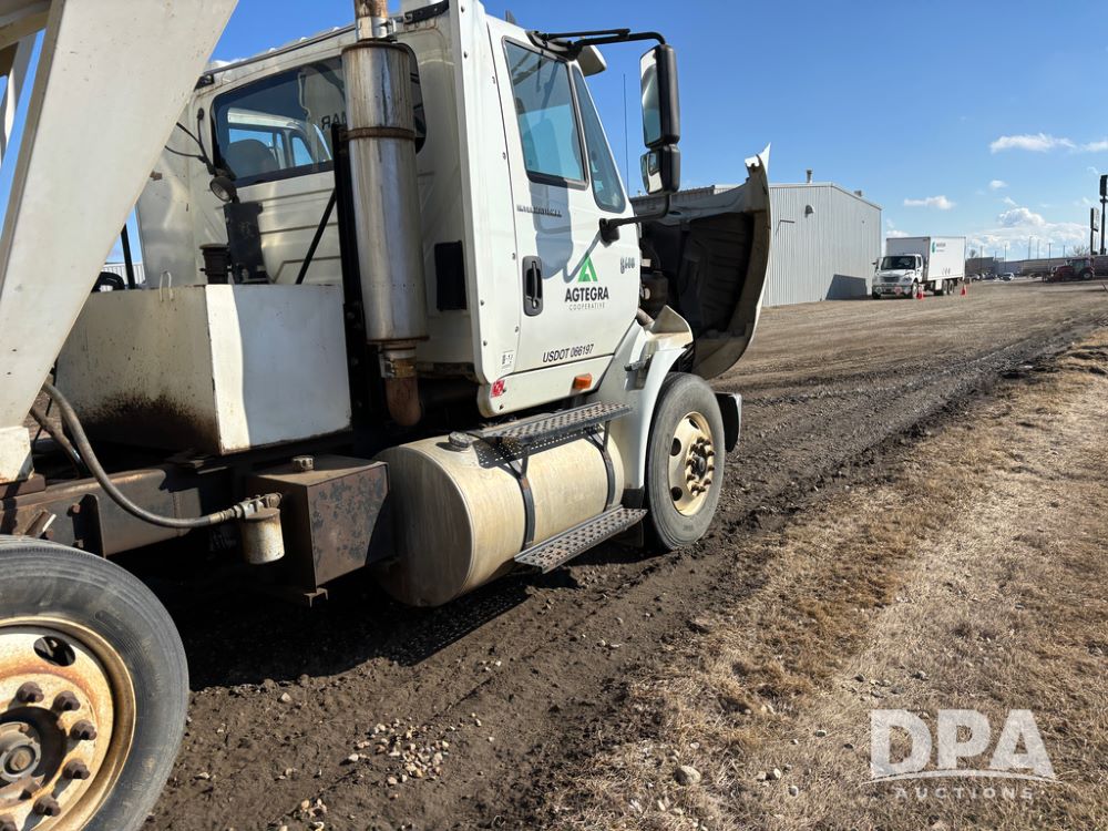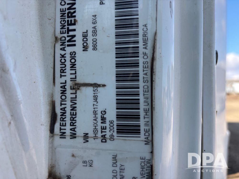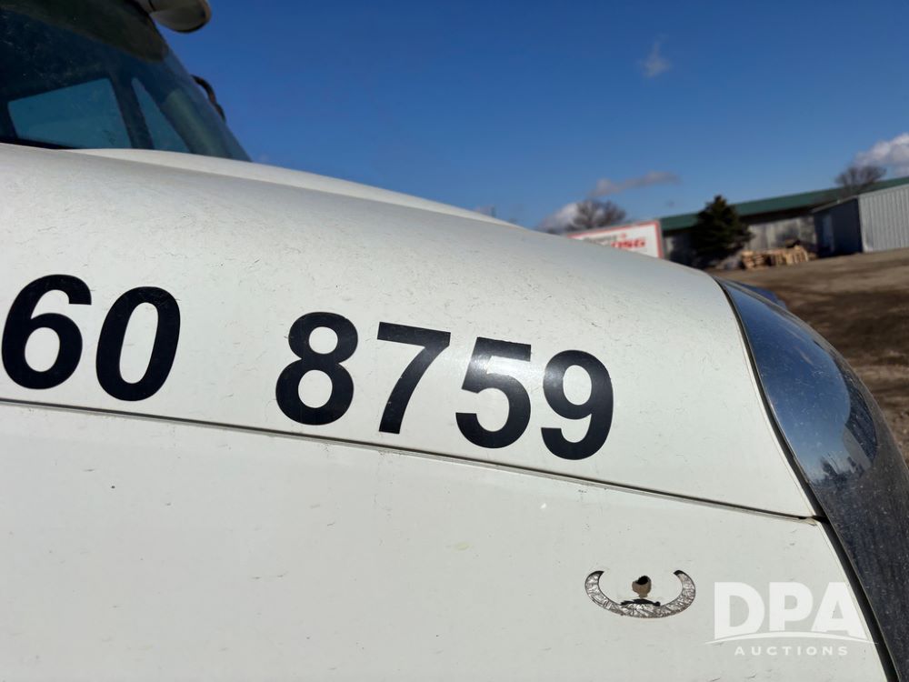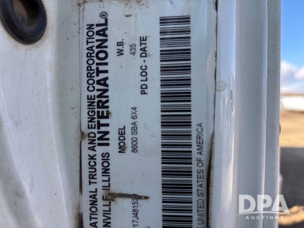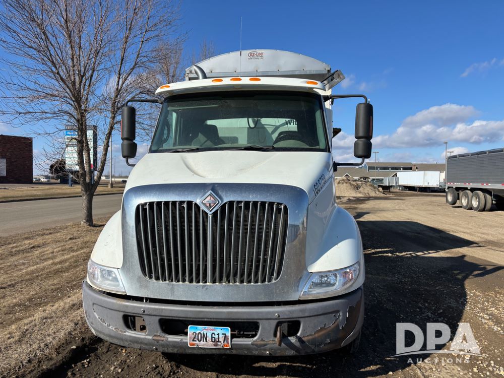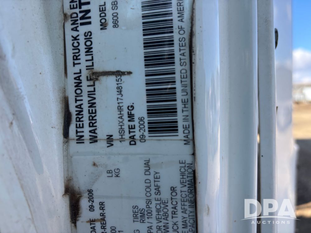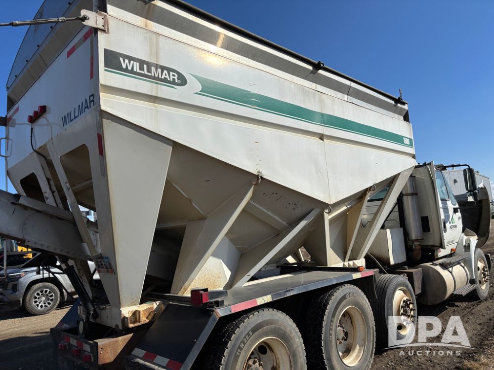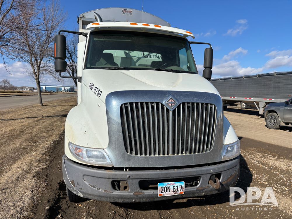 2007 International 8600 Dry Truck (DR13495 Unit 8759), diesel engine, 10 speed transmission, tandem axle full screw, air lift tag axle, air ride suspension, Willmar 1600 stainless steel hydraulic dry tender box, rear discharge auger, side catwalk, electric roll tarp, auxiliary off rod diesel fuel tank w/12 volt pump, dual aluminum fuel tanks, AM/FM CD radio, engine brake, heated mirrors, 22.5 tires, odometer reads 548,664 miles.
