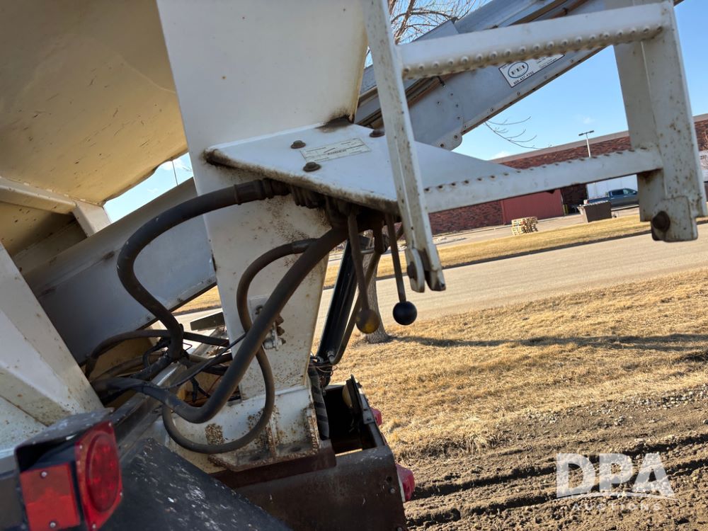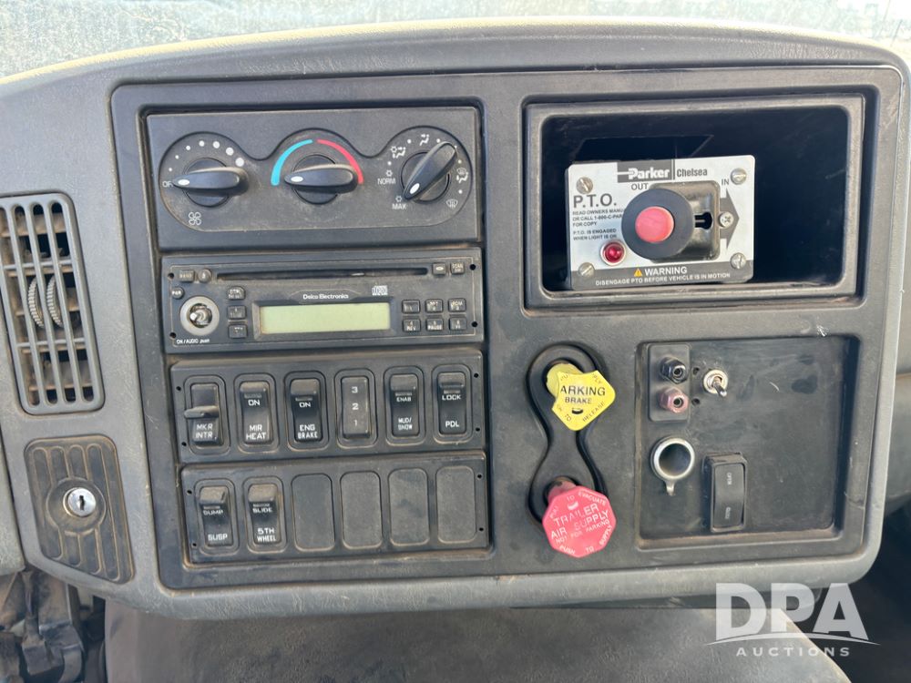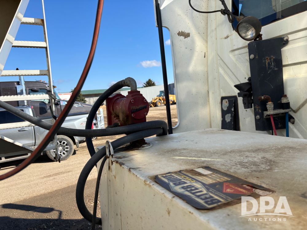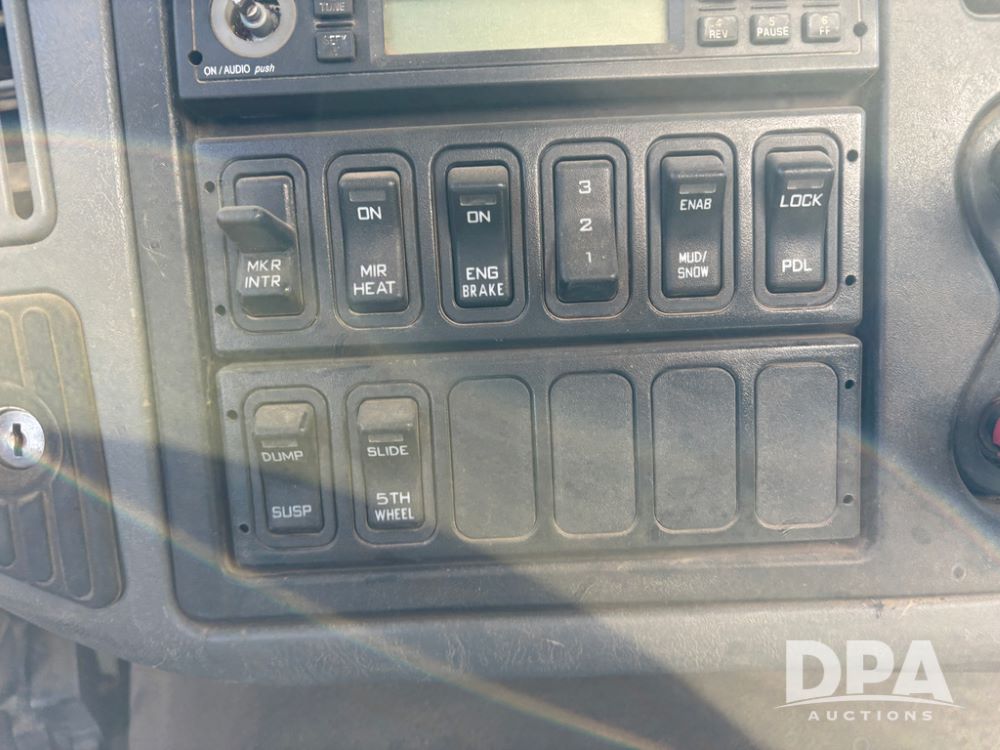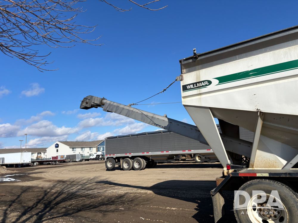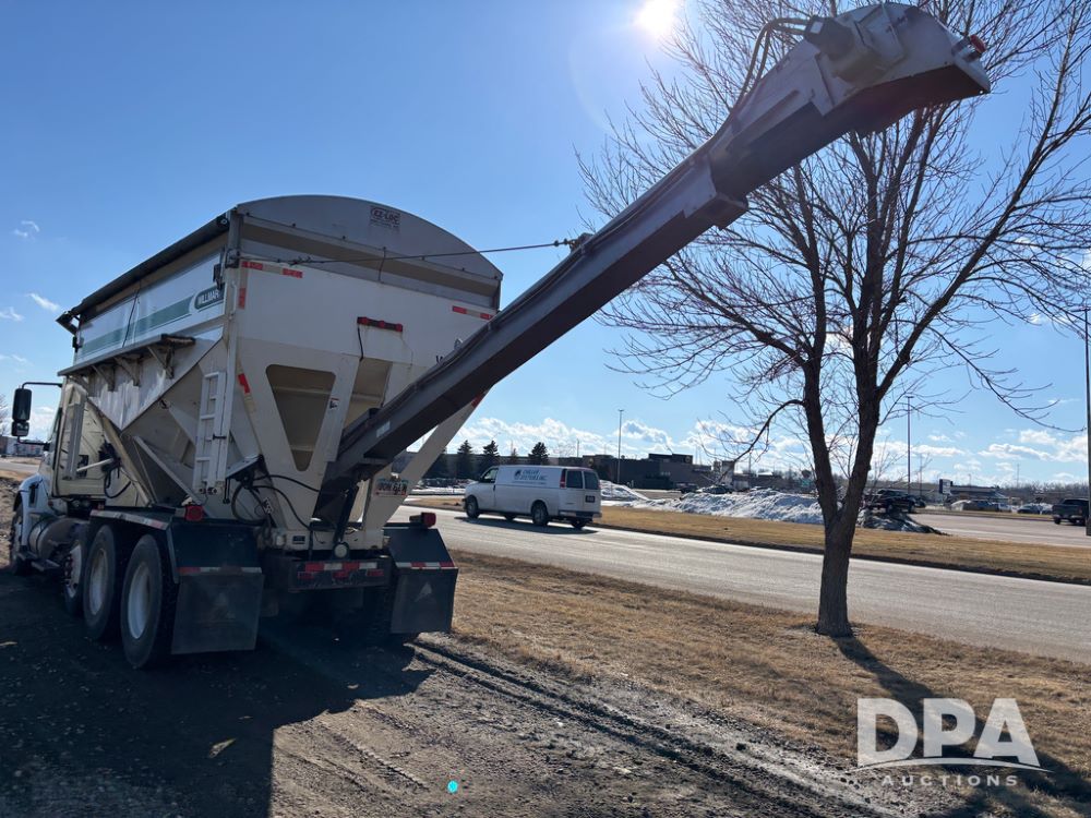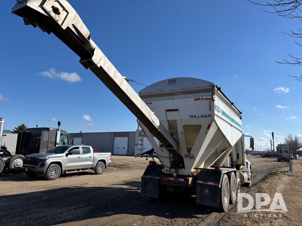 2007 International 8600 Dry Truck (DR13495 Unit 8759), diesel engine, 10 speed transmission, tandem axle full screw, air lift tag axle, air ride suspension, Willmar 1600 stainless steel hydraulic dry tender box, rear discharge auger, side catwalk, electric roll tarp, auxiliary off rod diesel fuel tank w/12 volt pump, dual aluminum fuel tanks, AM/FM CD radio, engine brake, heated mirrors, 22.5 tires, odometer reads 548,664 miles.