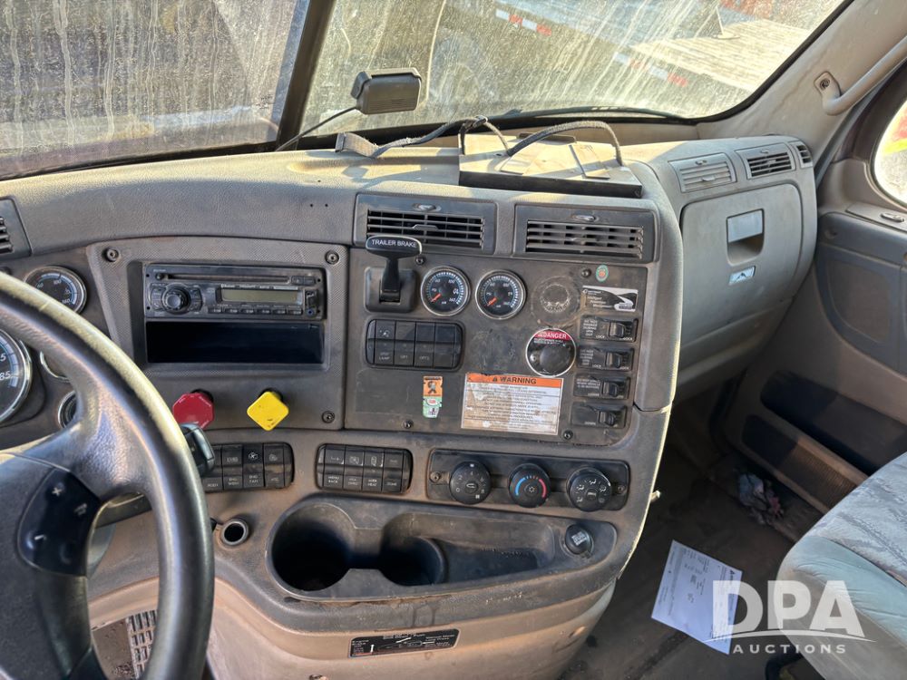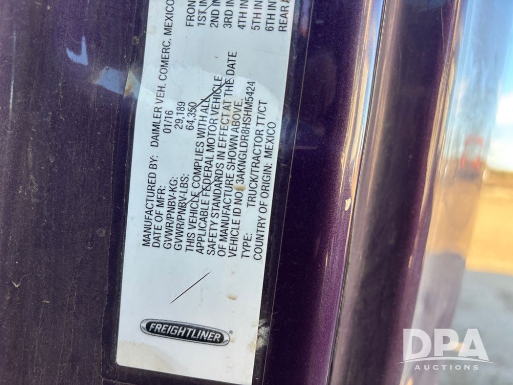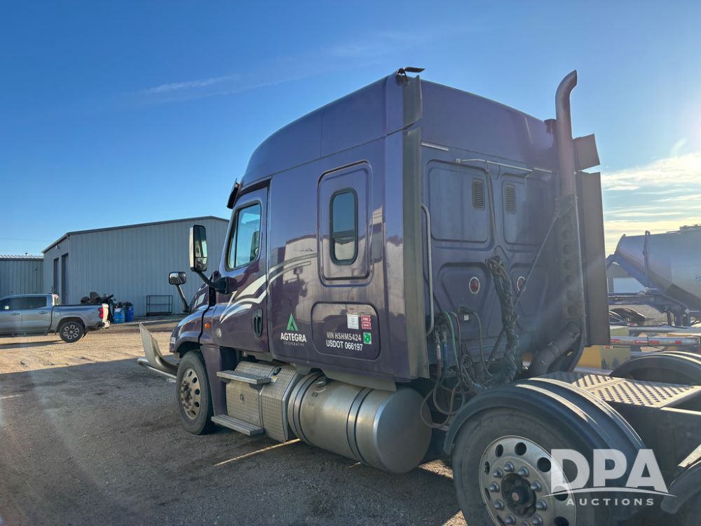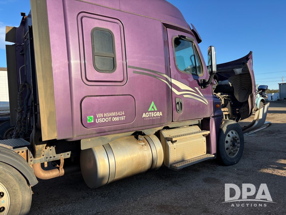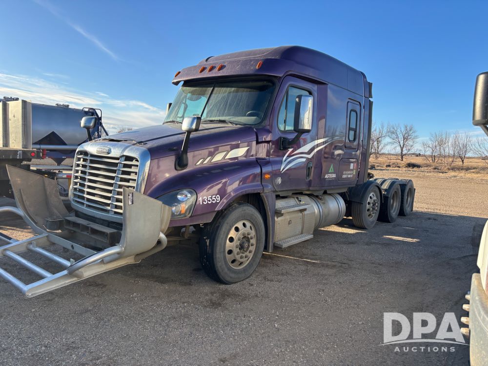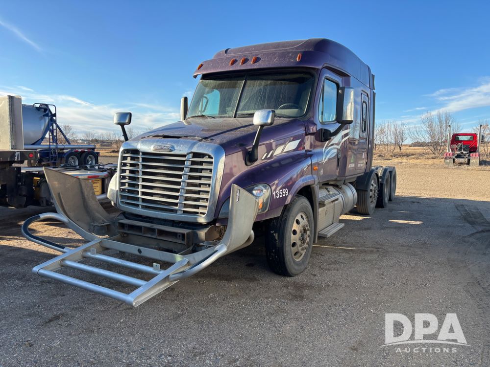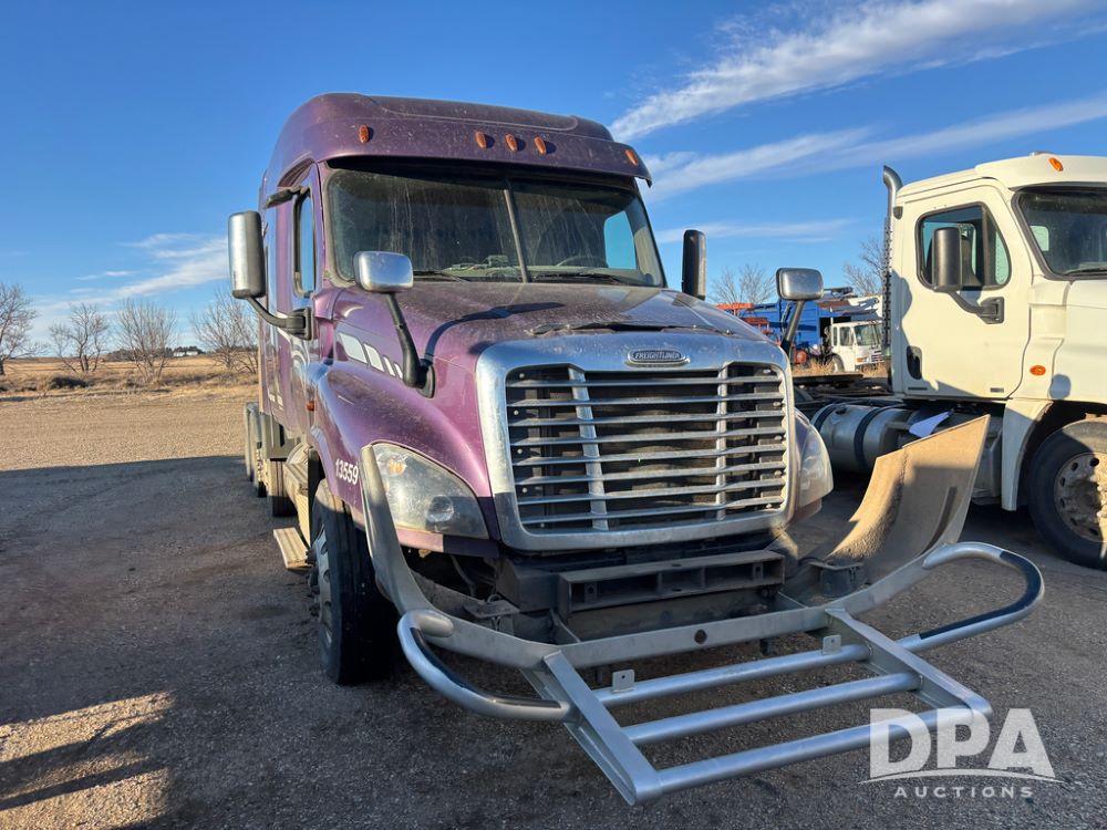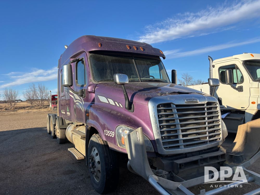 2017 Freightliner Cascadia Truck (DR13497 Unit 13559), Detroit diesel engine has issues, Auto Shift transmission, sleeper cab, tandem axle full screw, air lift tag axle, air ride suspension, 252'' WB, air slide 5th wheel plate, Minimizer fenders, dual aluminum fuel tanks, air dump valve, engine brake, cruise control, Ali Arc heavy duty front grill guard, 22.5 tires, outside aluminum wheels.