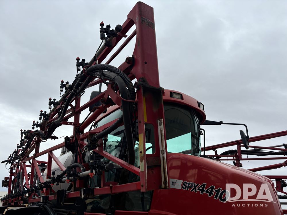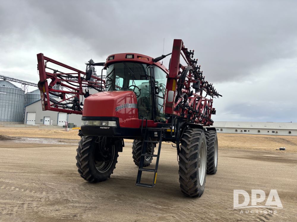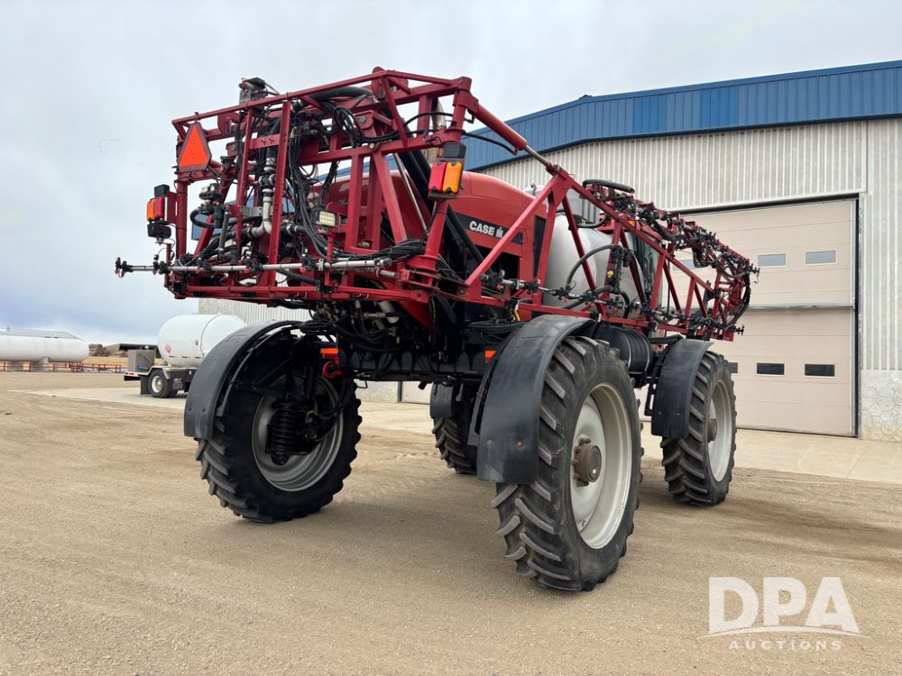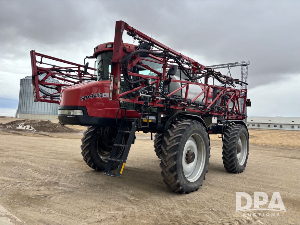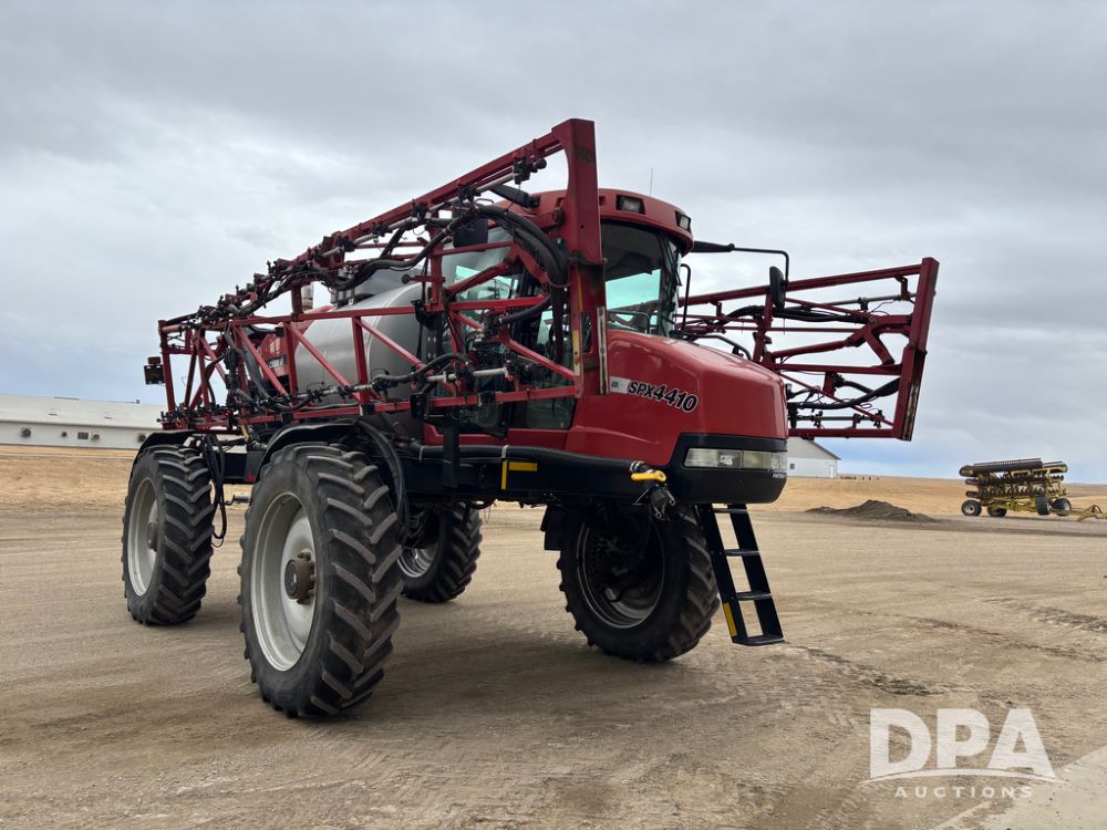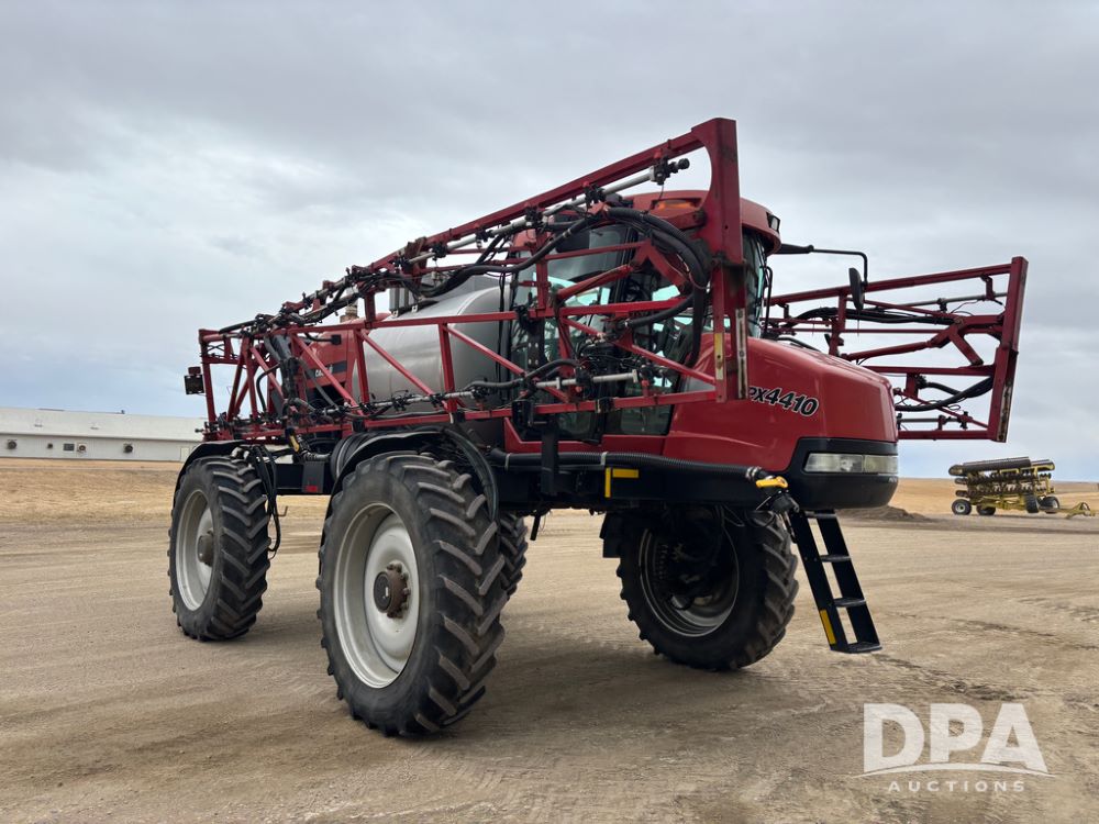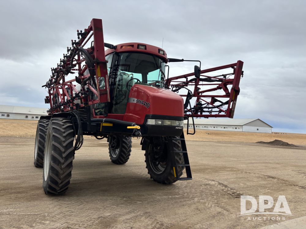 2005 Case IH 4410 Sprayer (DR13501), diesel engine, hydrostatic drive, 1200 gallon stainless steel liquid system, 100' boom, AIM Command, Ag Leader controls, pulse nozzles, stainless steel chemical inductor, front load, saddle mounted poly rinse tank, cab heat/air conditioning, Michelin 480/80R46 row crop tires, shows 6,931 hours.
