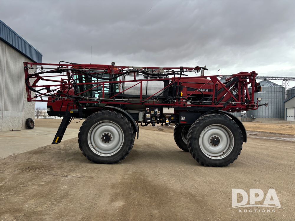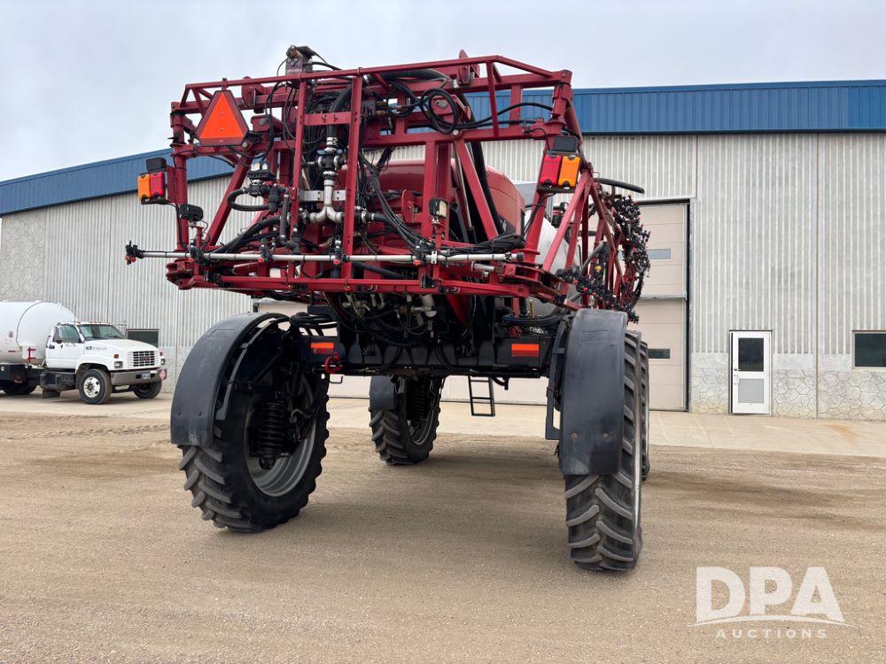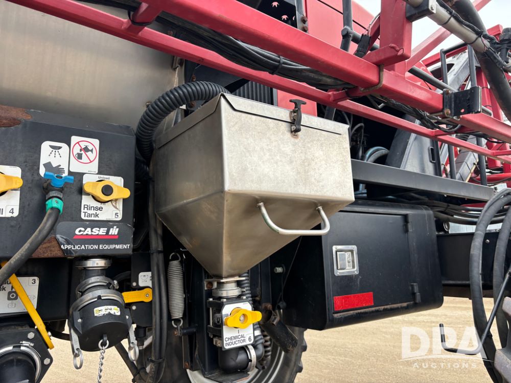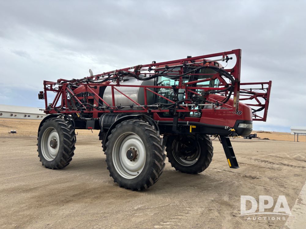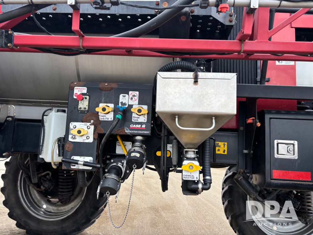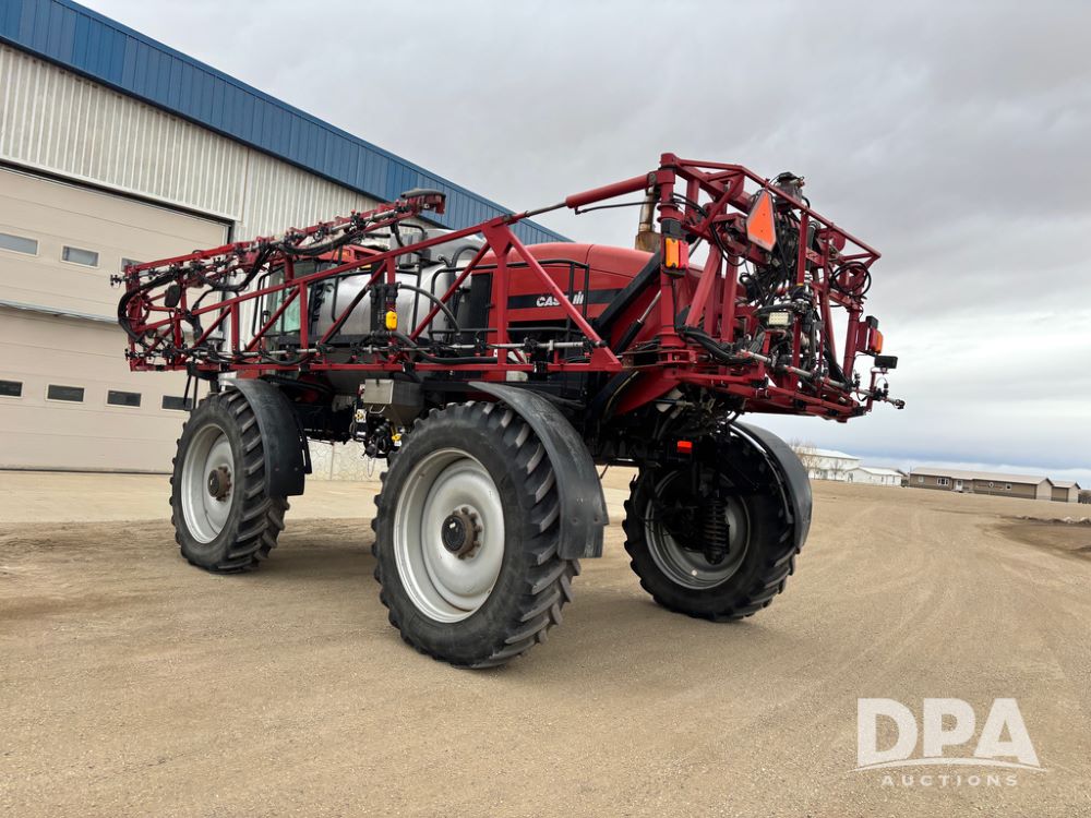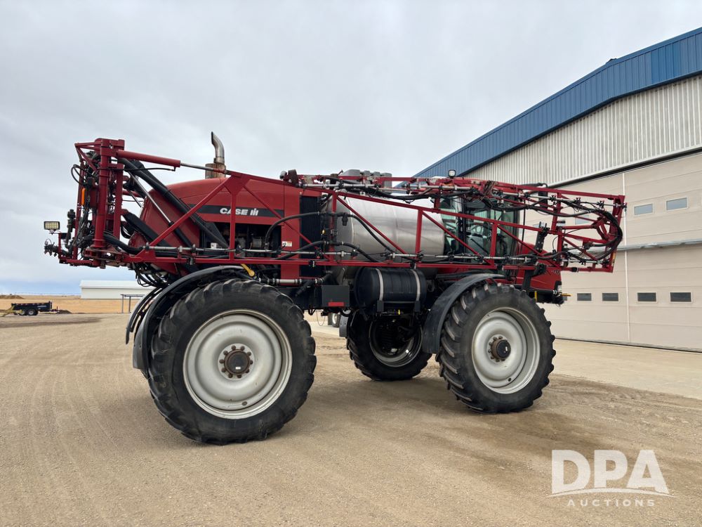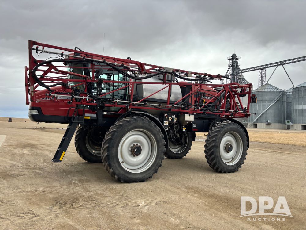 2005 Case IH 4410 Sprayer (DR13501), diesel engine, hydrostatic drive, 1200 gallon stainless steel liquid system, 100' boom, AIM Command, Ag Leader controls, pulse nozzles, stainless steel chemical inductor, front load, saddle mounted poly rinse tank, cab heat/air conditioning, Michelin 480/80R46 row crop tires, shows 6,931 hours.