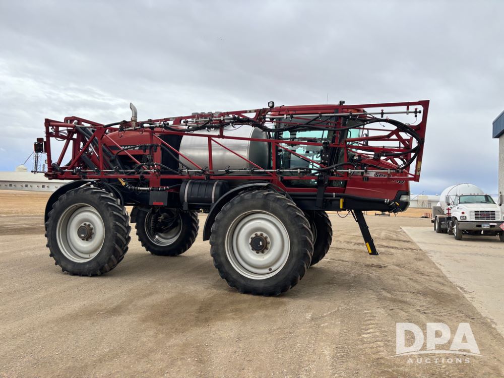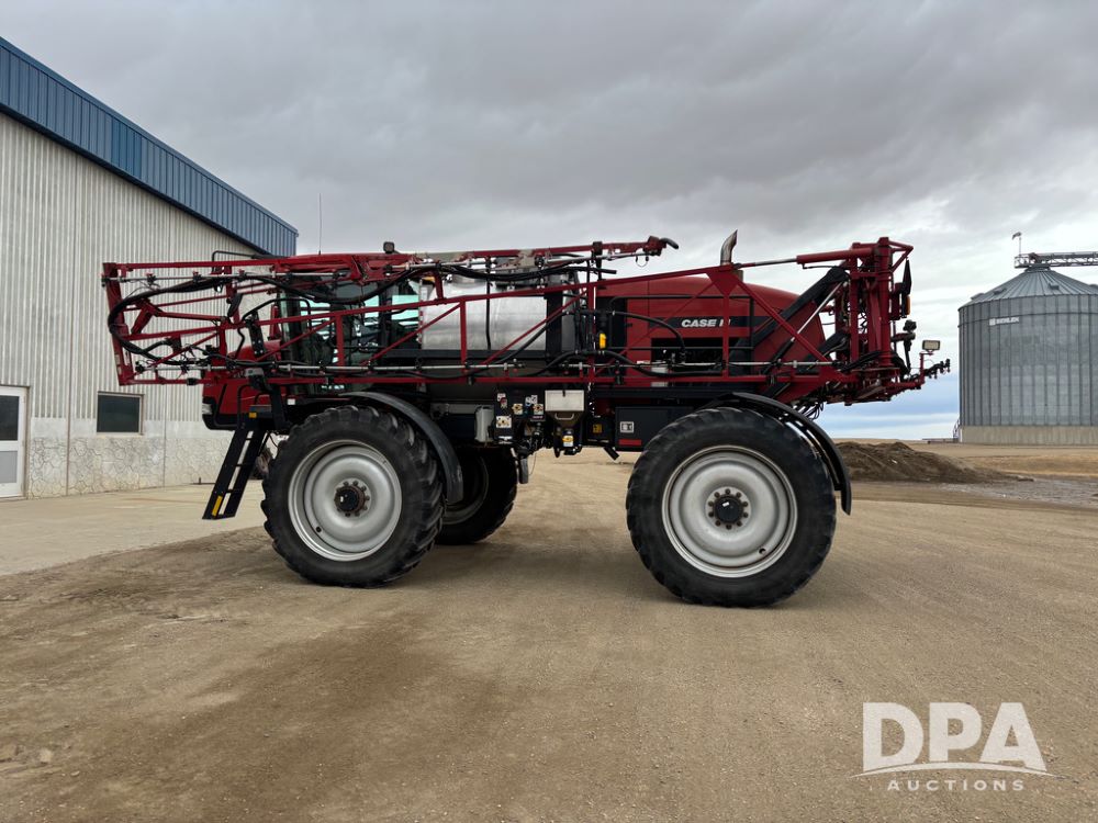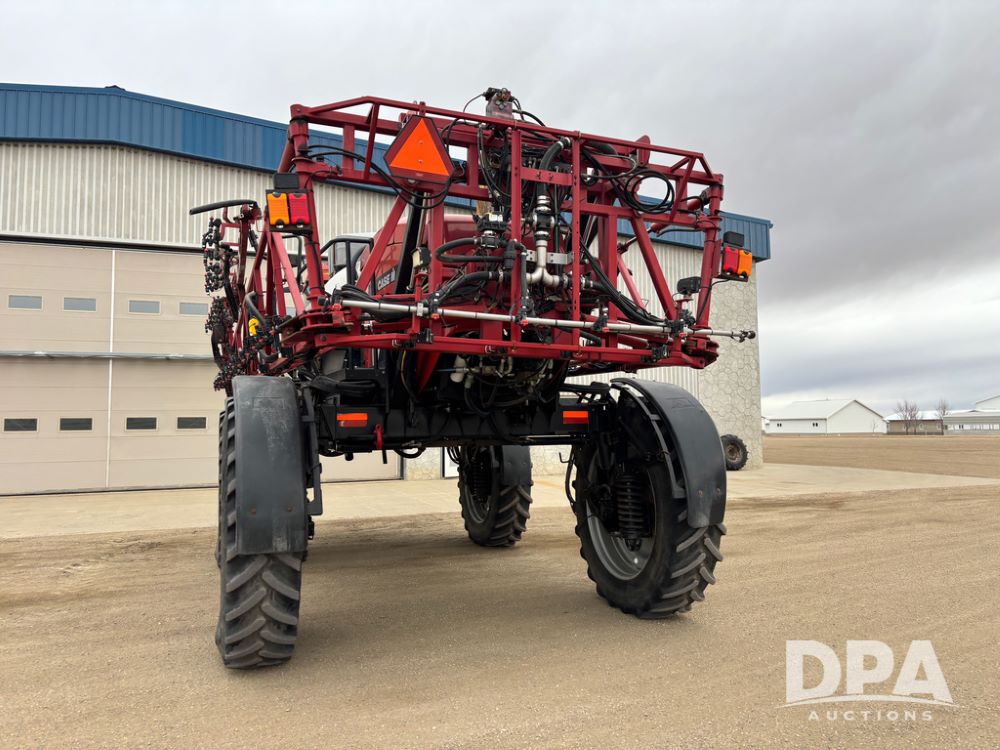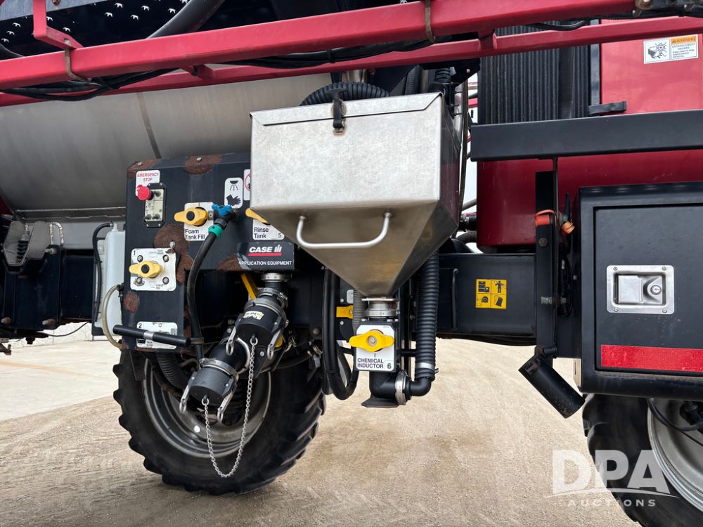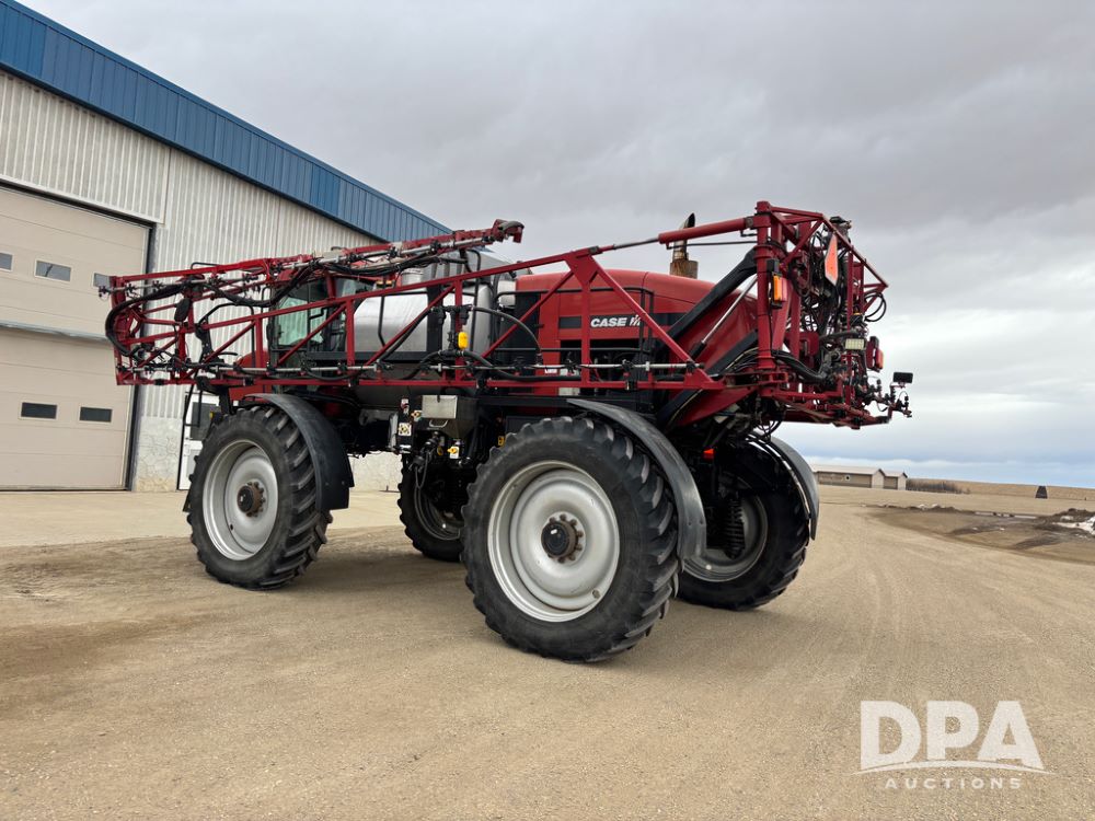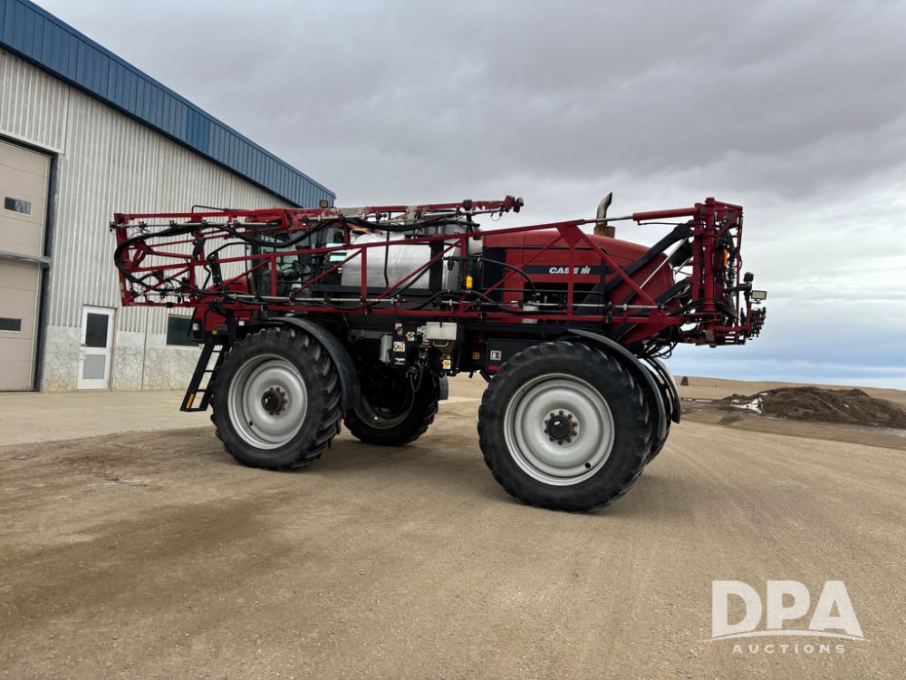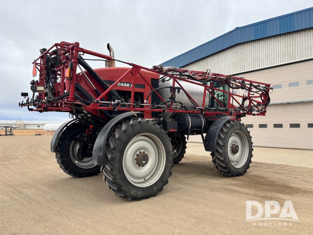 2005 Case IH 4410 Sprayer (DR13501), diesel engine, hydrostatic drive, 1200 gallon stainless steel liquid system, 100' boom, AIM Command, Ag Leader controls, pulse nozzles, stainless steel chemical inductor, front load, saddle mounted poly rinse tank, cab heat/air conditioning, Michelin 480/80R46 row crop tires, shows 6,931 hours.