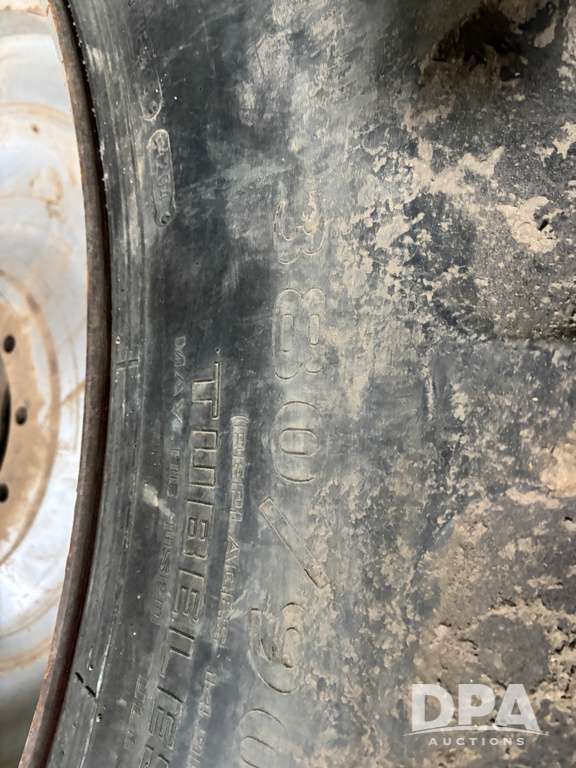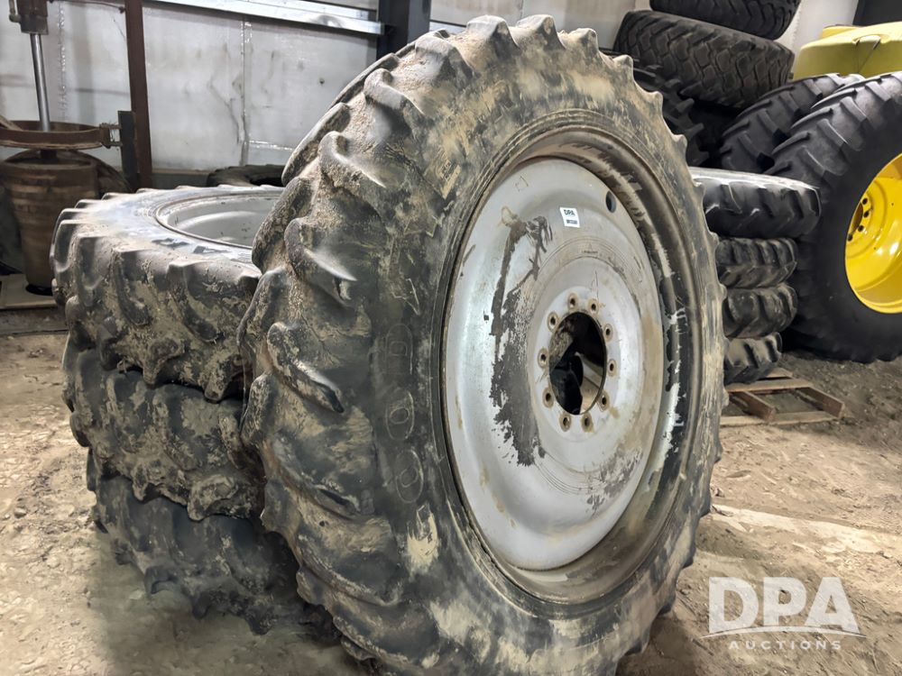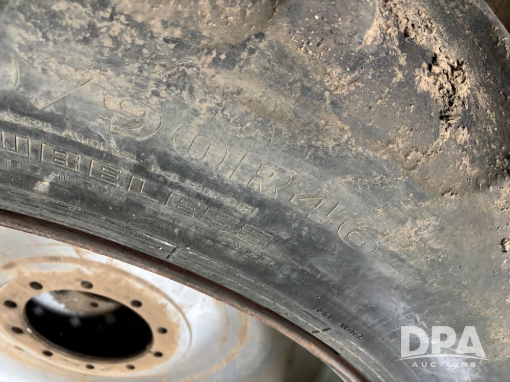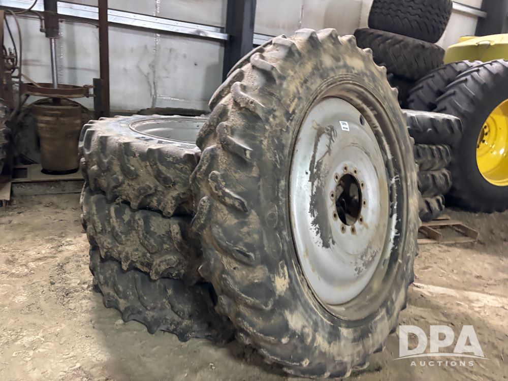 Row Tires (DR13508), set of (4) Goodyear 380/90R46 row crop tires, mounted on Case IH 4410 rims.