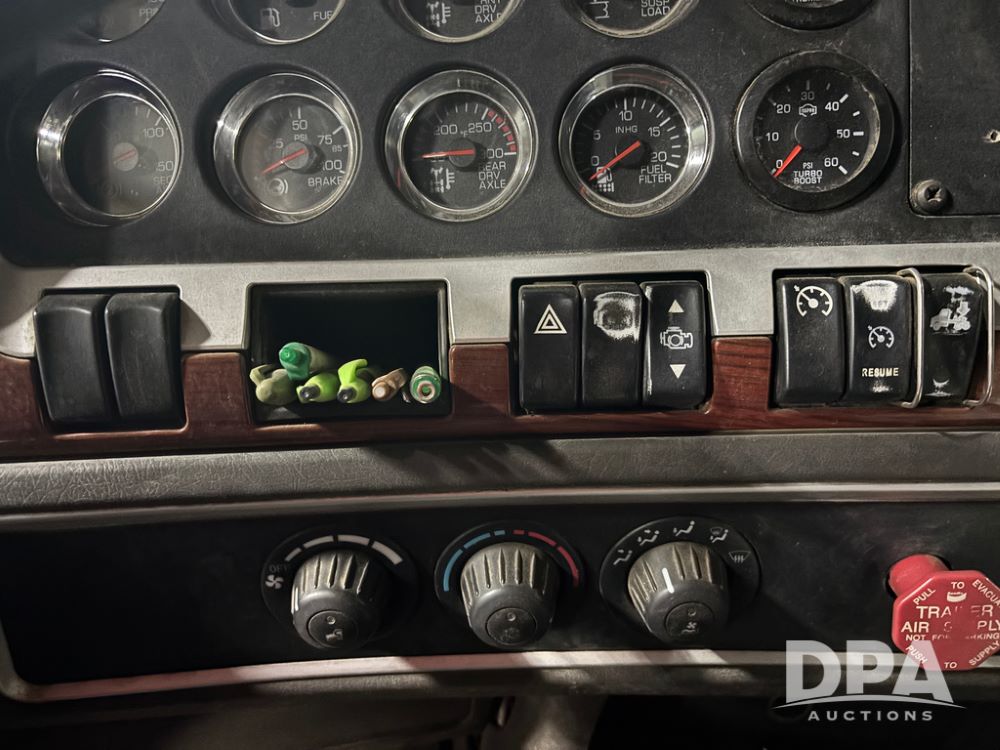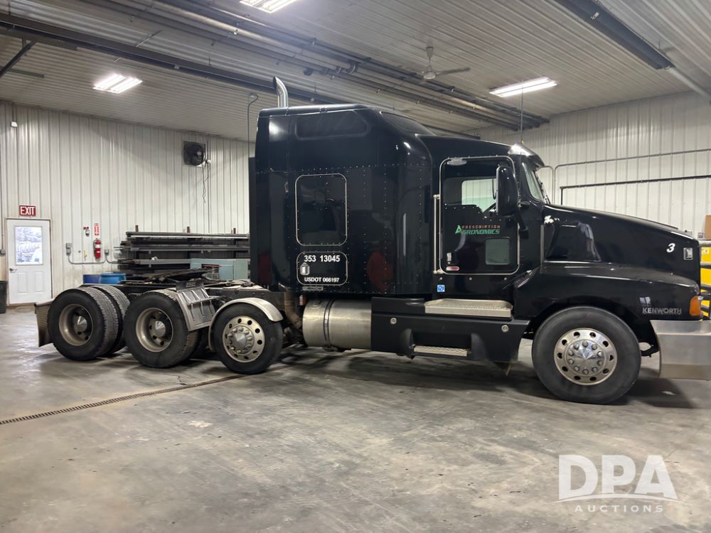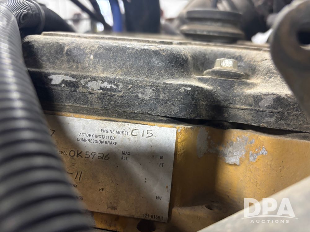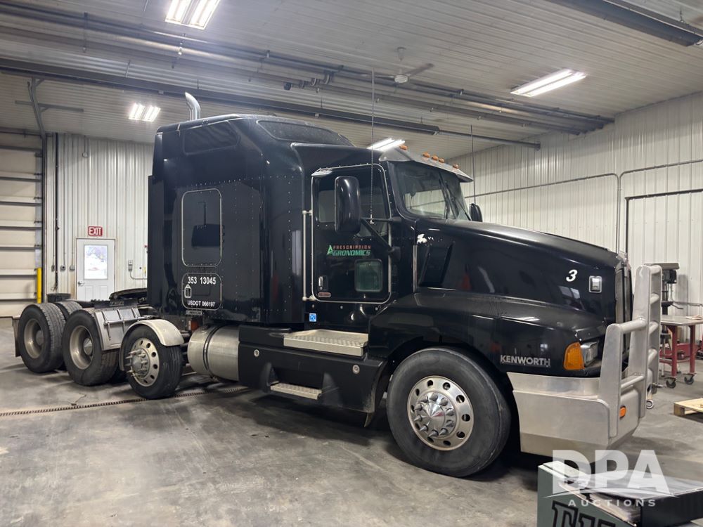 2007 Kenworth T600 Truck (DR12965 Unit 13065), Cat C15 diesel engine, 13 speed transmission, tandem axle full screw, 236'' WB, air lift tag axle, air ride suspension, air slide 5th wheel plate, Herd heavy duty aluminum grill guard, Aero Cab sleeper, engine brake, cruise control, air dump valve, 22.5 tires, all aluminum wheels, odometer reads 1,025, 846 miles.