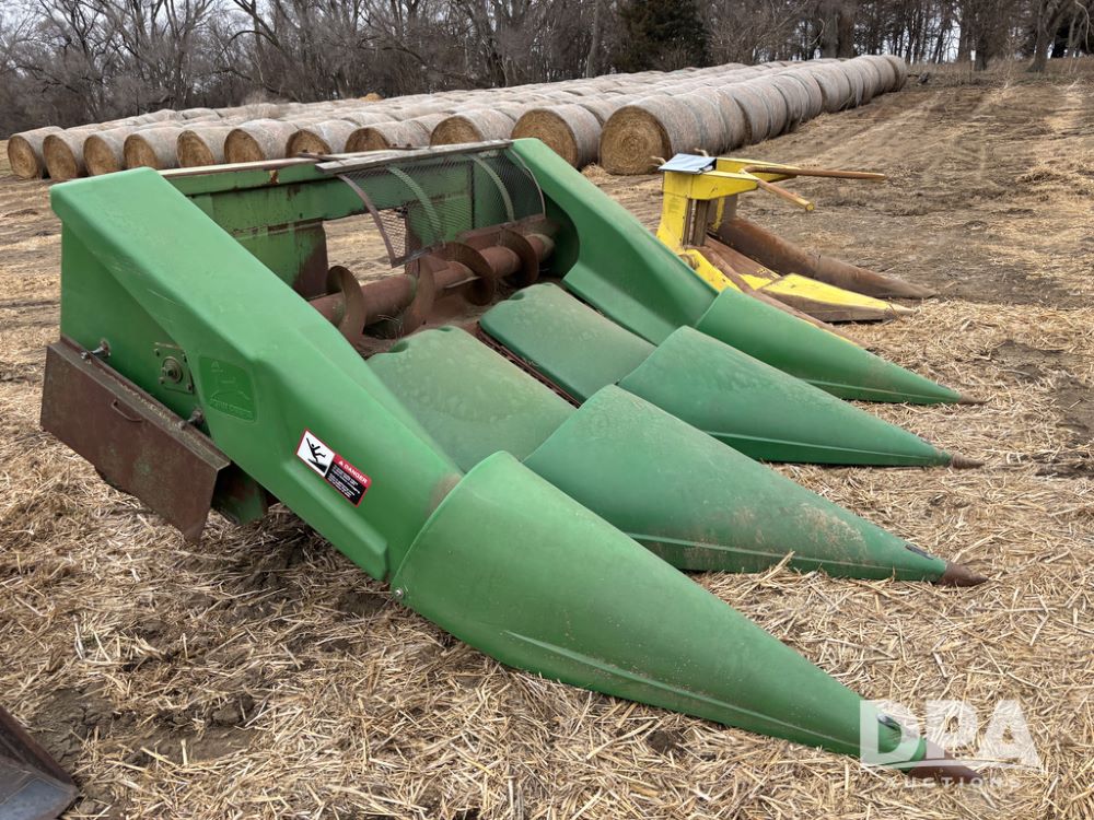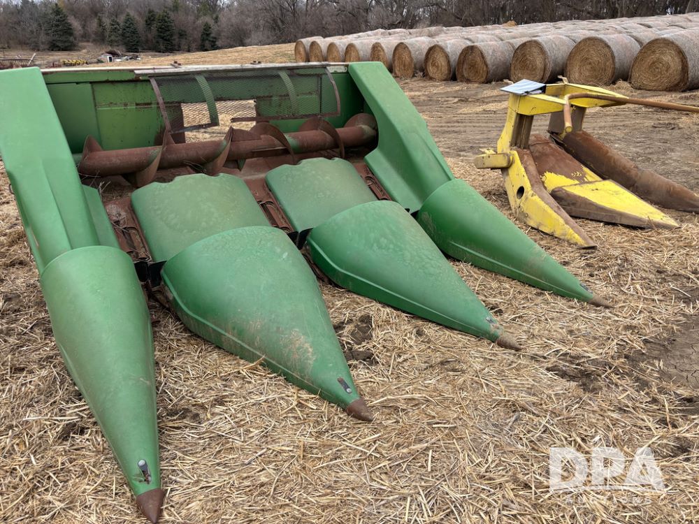 John Deere 344 Corn Head (DR13547), 3 row, 36'' corn head, poly snouts, good snap rollers.