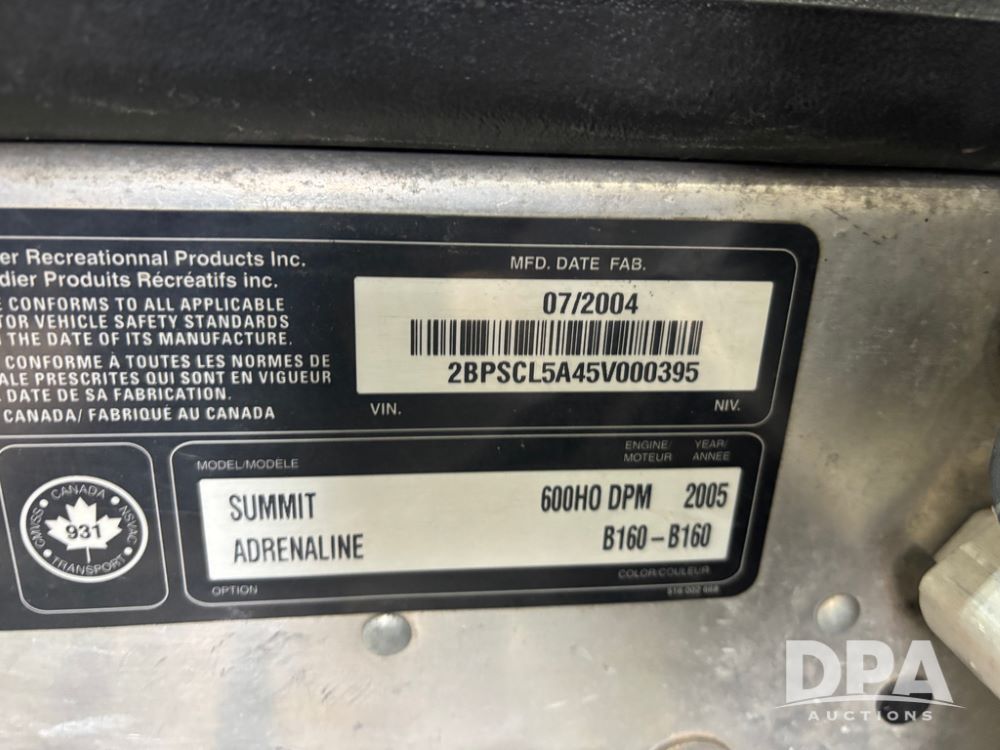 Ski Doo Summit 600 (DR13549), gas engine, 16'' tracks, shows 2749 miles.