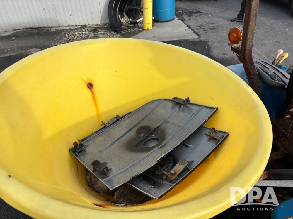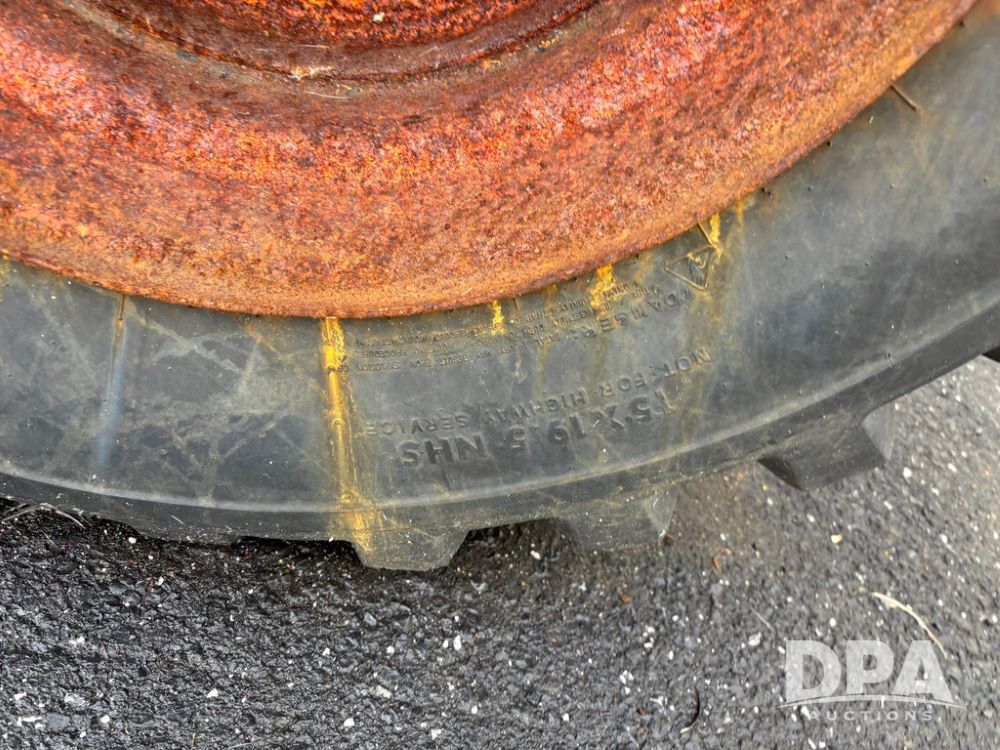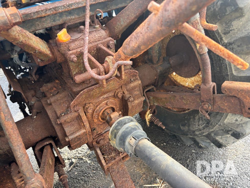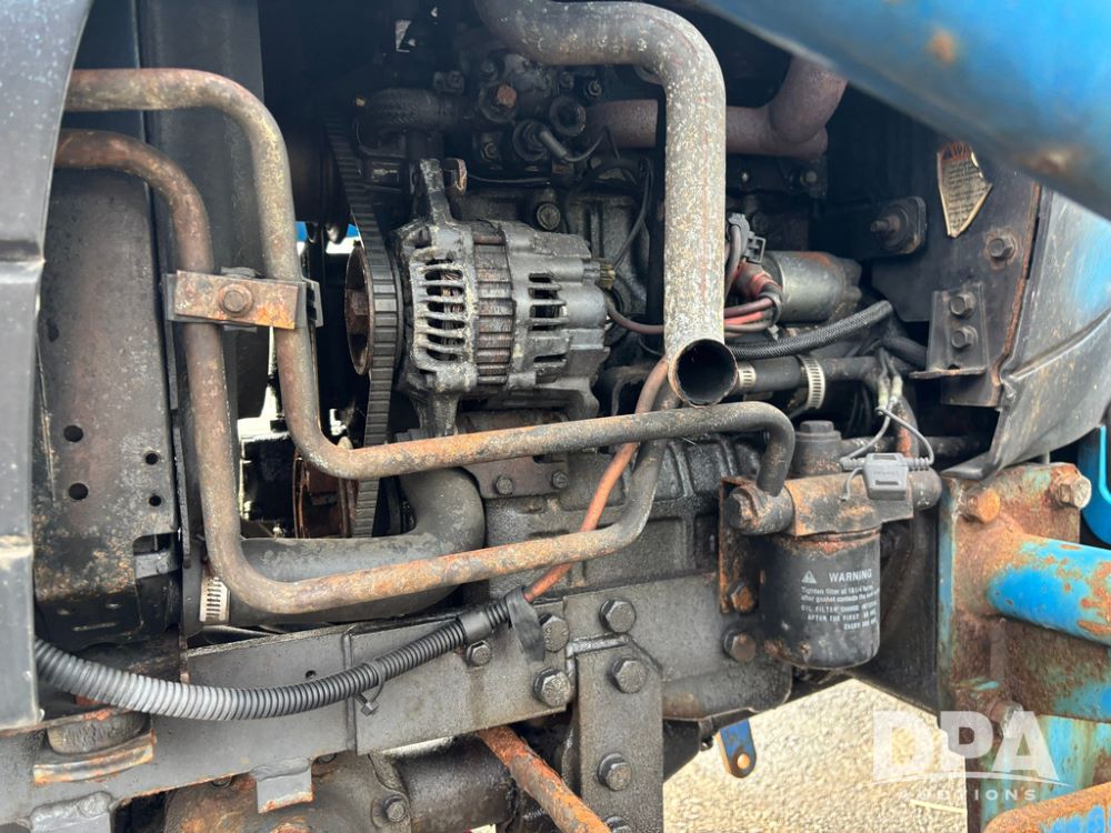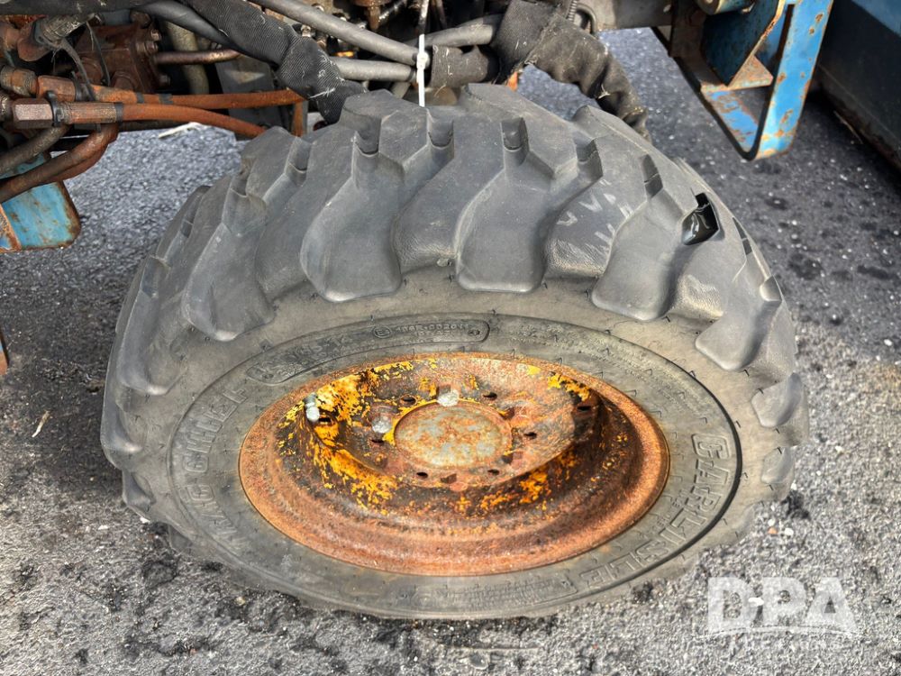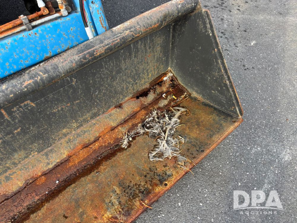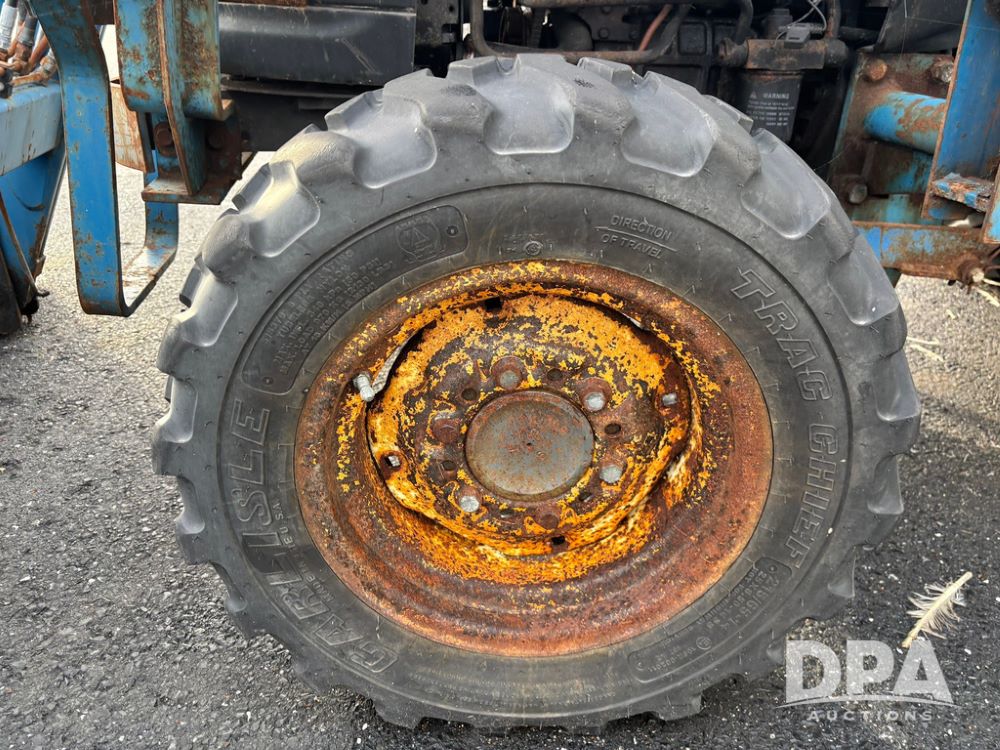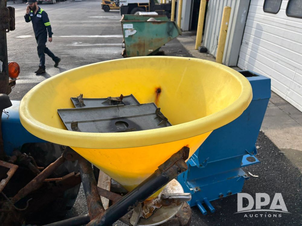 New Holland Tractor (GP12909), NON RUNNER, MFWD tractor, diesel engine, New Holland 7308 hydraulic front loader, front smooth bucket, joy stick controls, Land Pride FSP 500 3 point rear mounted salt spreader, rear PTO, 215/65-14 front tires, 15X19.5 rear tires, shows 3,084 hours.