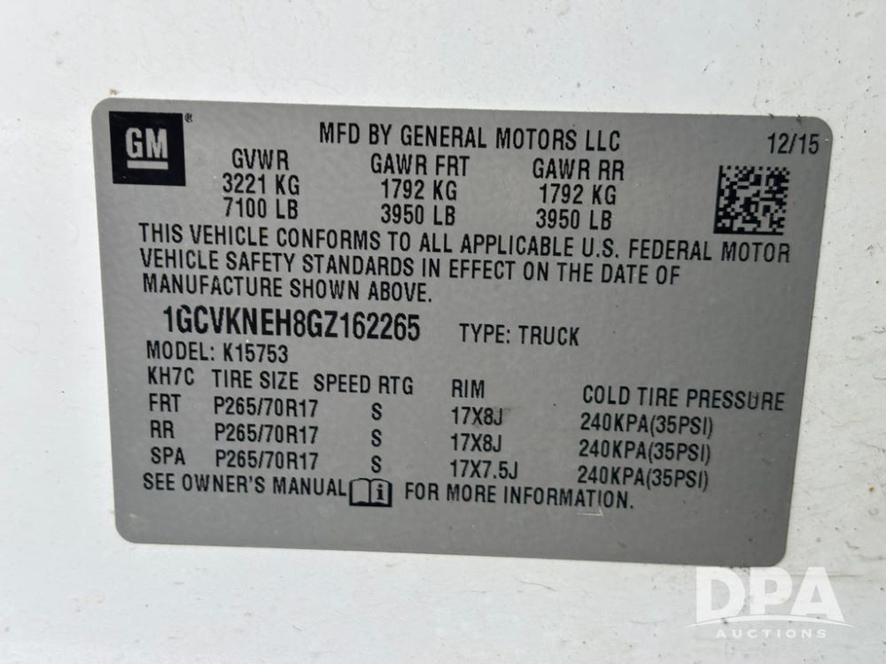 2016 Chevy Silverado Pickup (GP12907), NON RUNNER, 5.3 liter gas engine, automatic transmission, 4x4, 4 door cab, tonneau bed cover, rear receiver hitch, power windows & locks, cruise control, 265/70R17 tires, shows 274,469 miles.
