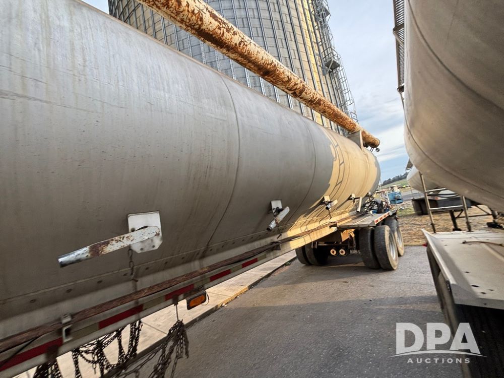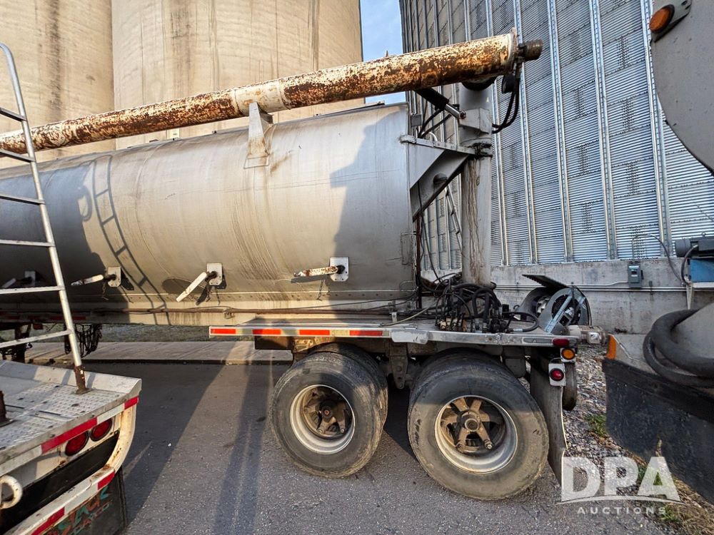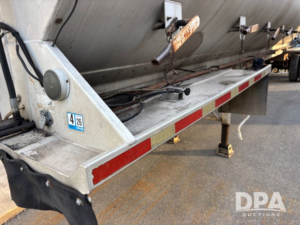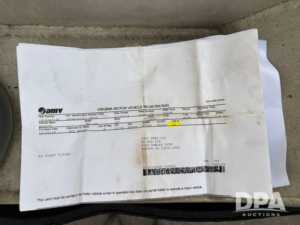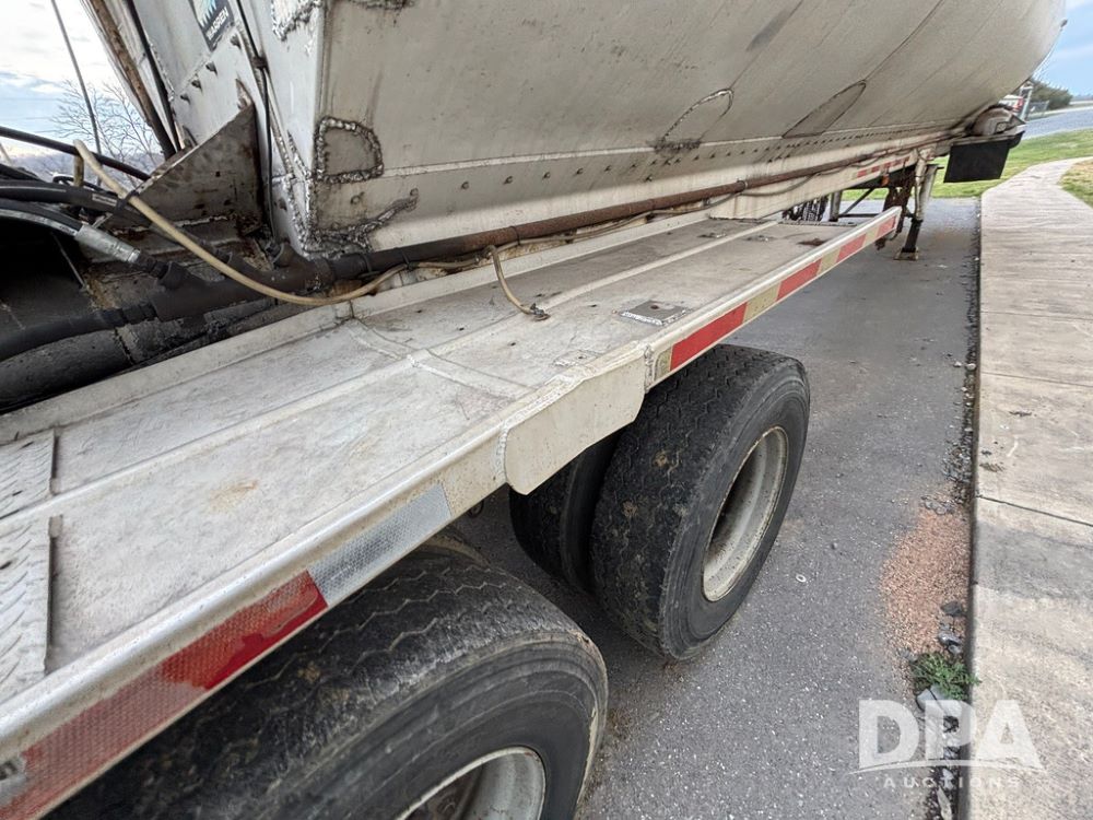 2000 Warren Feed Trailer (GP12904 Unit 16), model AT-368 compartment aluminum hydraulic feed trailer, overhead discharge auger, hard top cover, top catwalk, tandem axle, spring suspension, 22.5 tires, Dayton wheels.