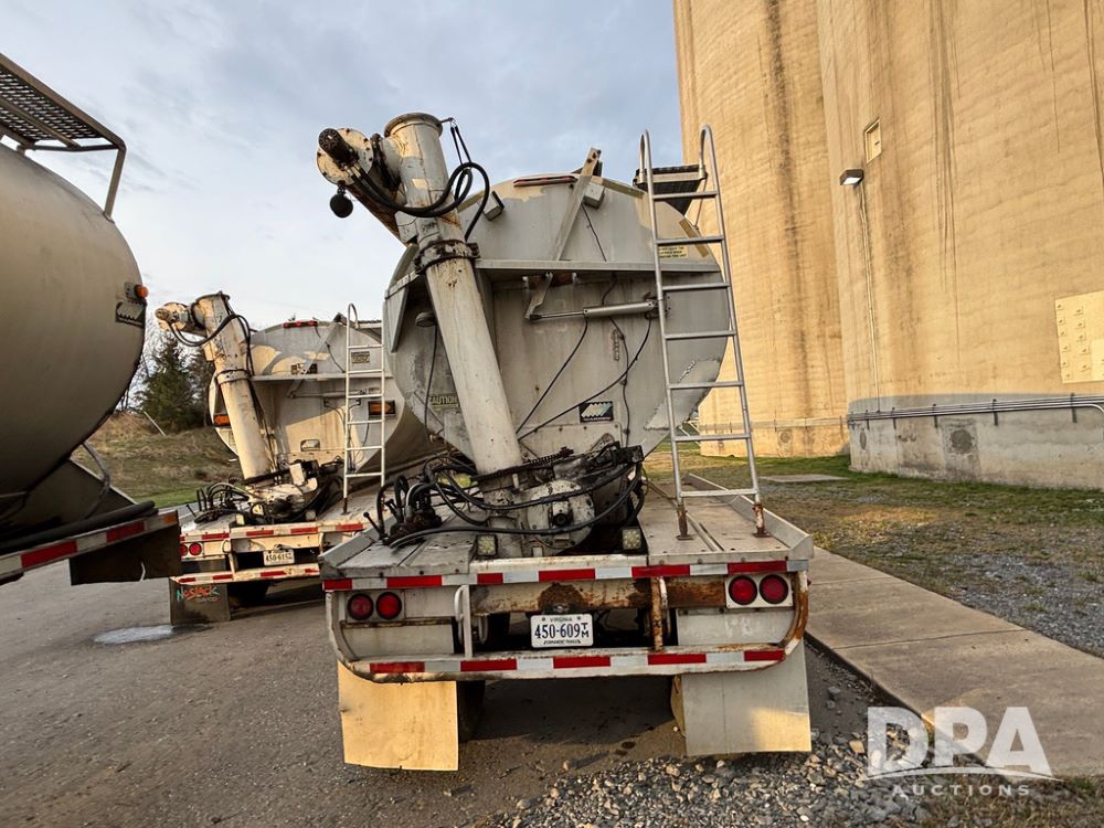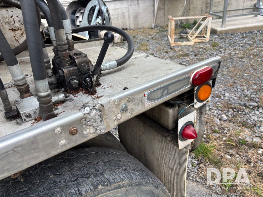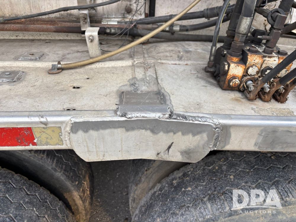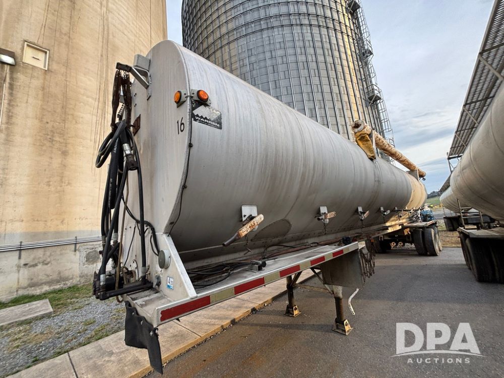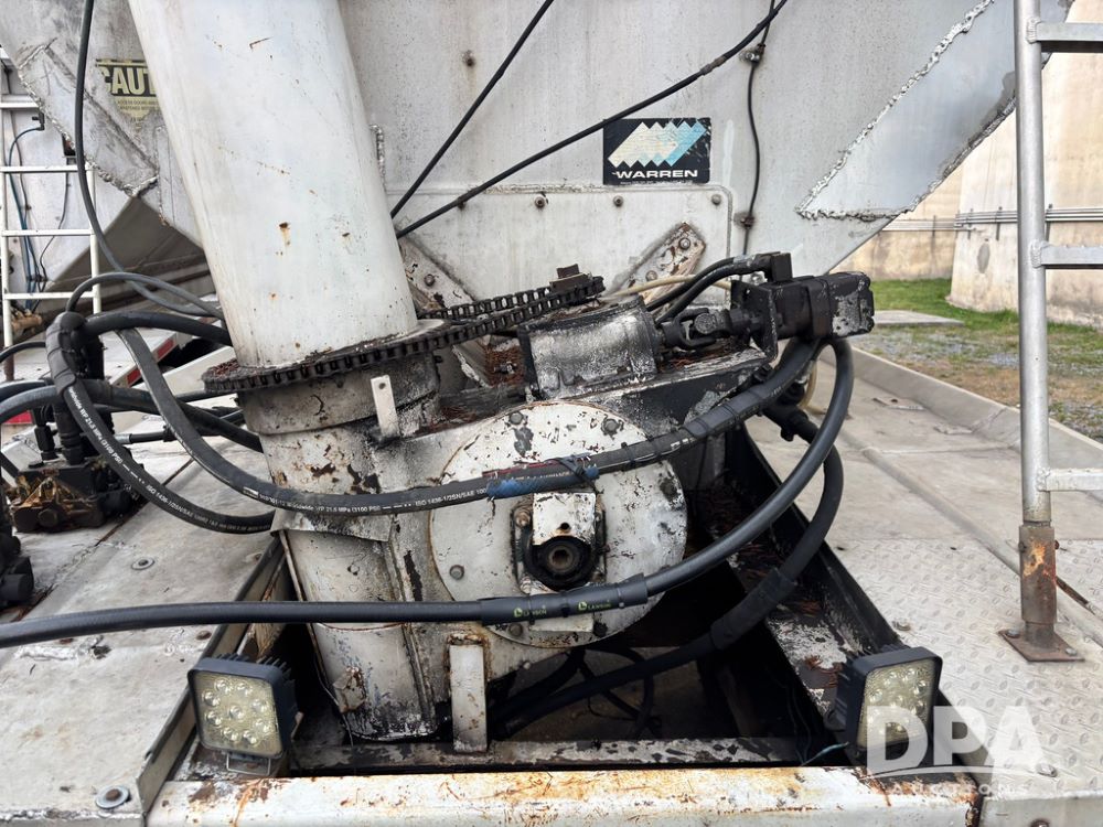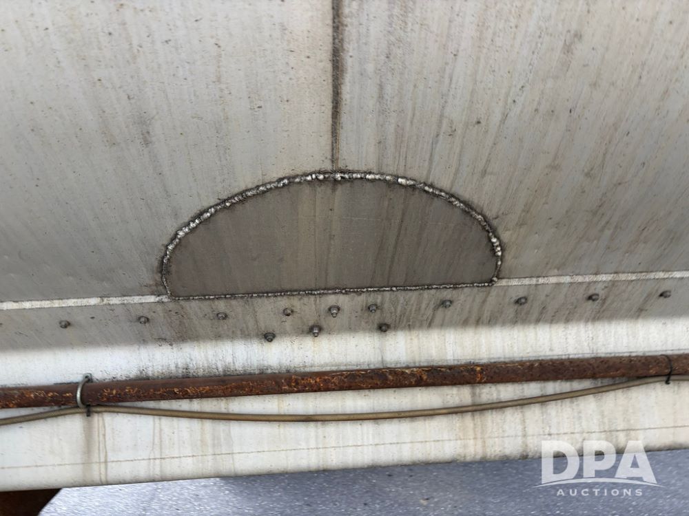2000 Warren Feed Trailer (GP12904 Unit 16), model AT-368 compartment aluminum hydraulic feed trailer, overhead discharge auger, hard top cover, top catwalk, tandem axle, spring suspension, 22.5 tires, Dayton wheels.
