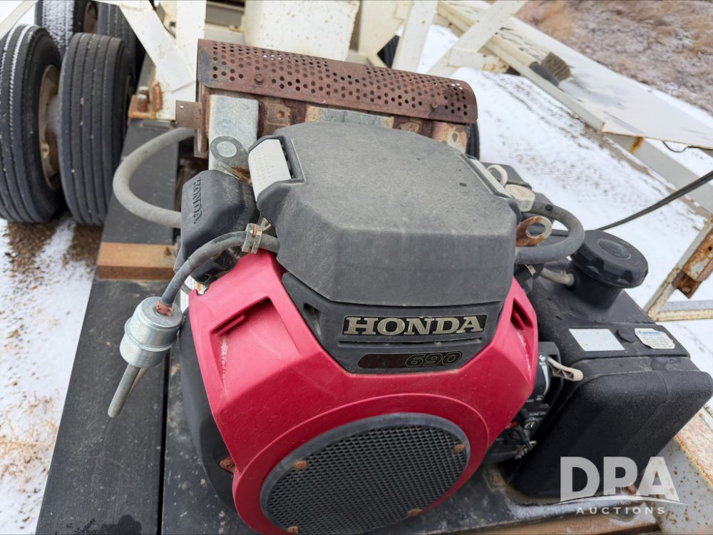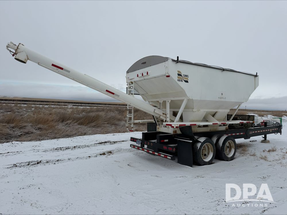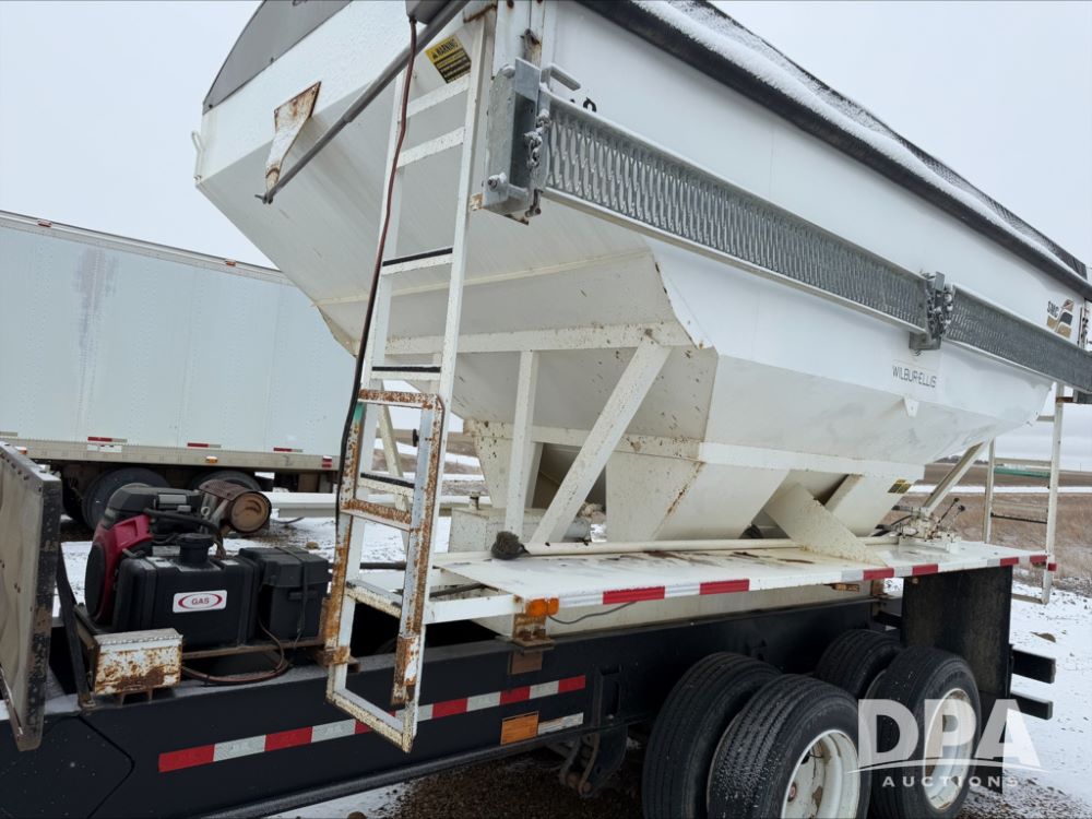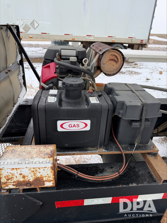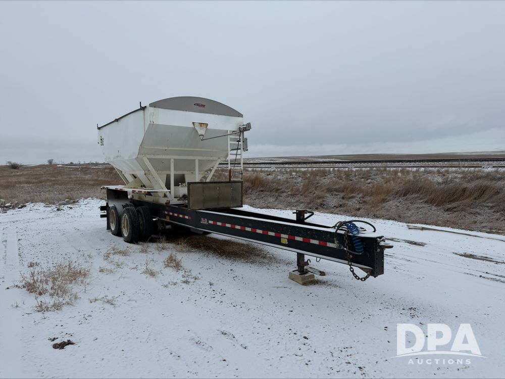 2018 B&B Dry Pup Trailer (DR13551), Simonsen 4816 stainless steel hydraulic tender box, rear discharge auger, self contained hydraulics w/Honda gas engine and electric start, roll over tarp, side catwalk, B&B tandem axle pintle hitch trailer, air brakes.