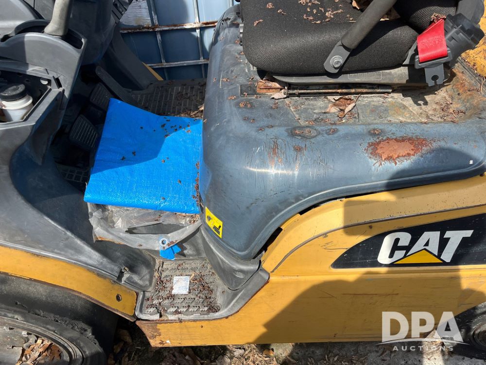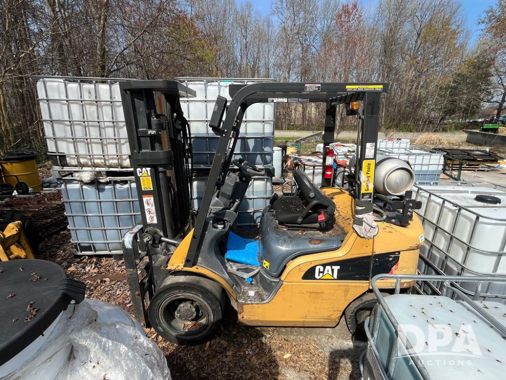 Cat 2P5000 Forklift (JN4176), Cat Model 2P5000 forklift, LP gas, shuttle shift, forks, tilt, 6.00-9 rear tires, 28x9-15 front tires, truck weight 9,280 pounds.