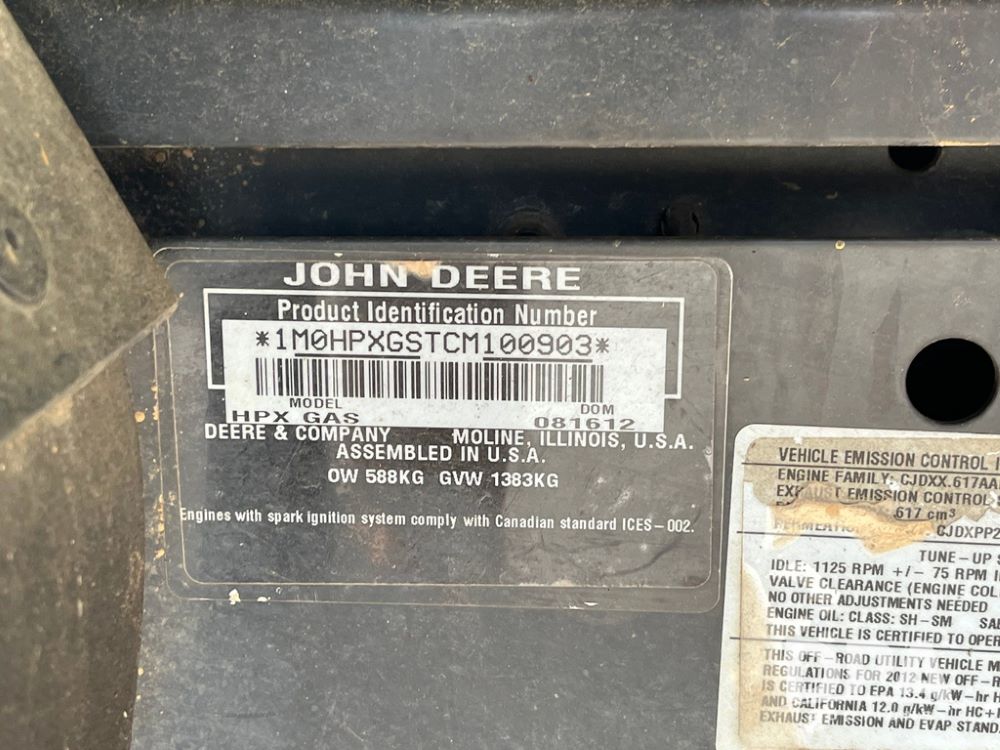 John Deere HPX 4x4 Gator (JN4175), John Deere gator, open cab, gas engine, rear box, 24x9.50-10 tires.