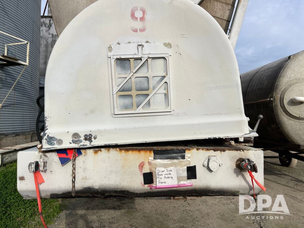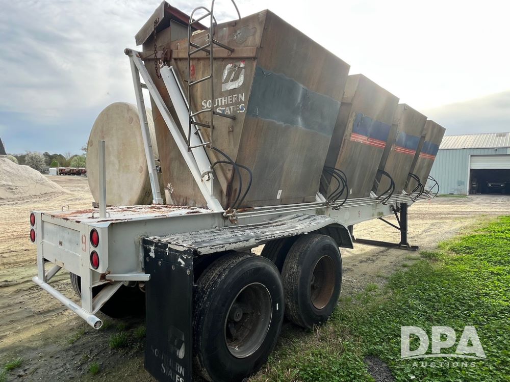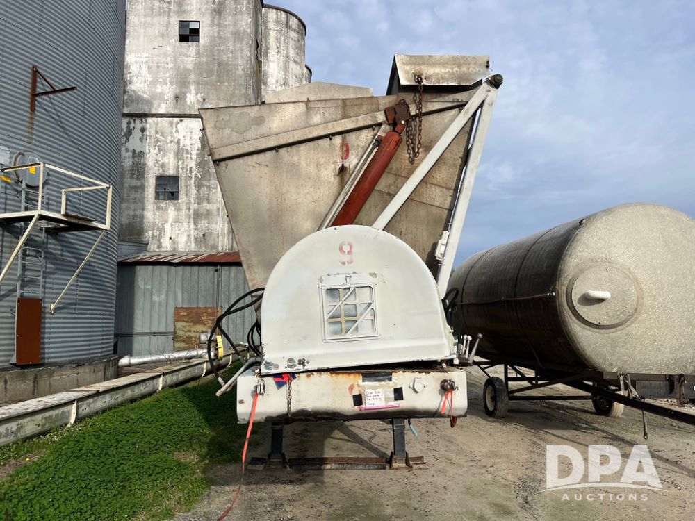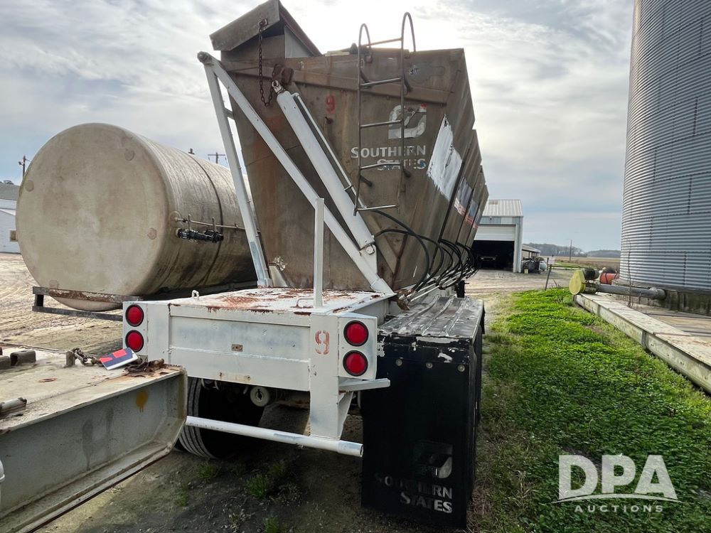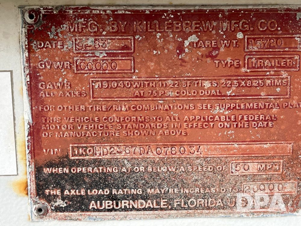 1983 Killebrew Dry Fertilizer Trailer (JN4198, Unit TS8034), 1983 Killebrew stainless steel dry tender trailer, 4 compartment, tandem axle, spring suspension, landing gear, 11R22.5 tires, GVWR 60,000 pounds.