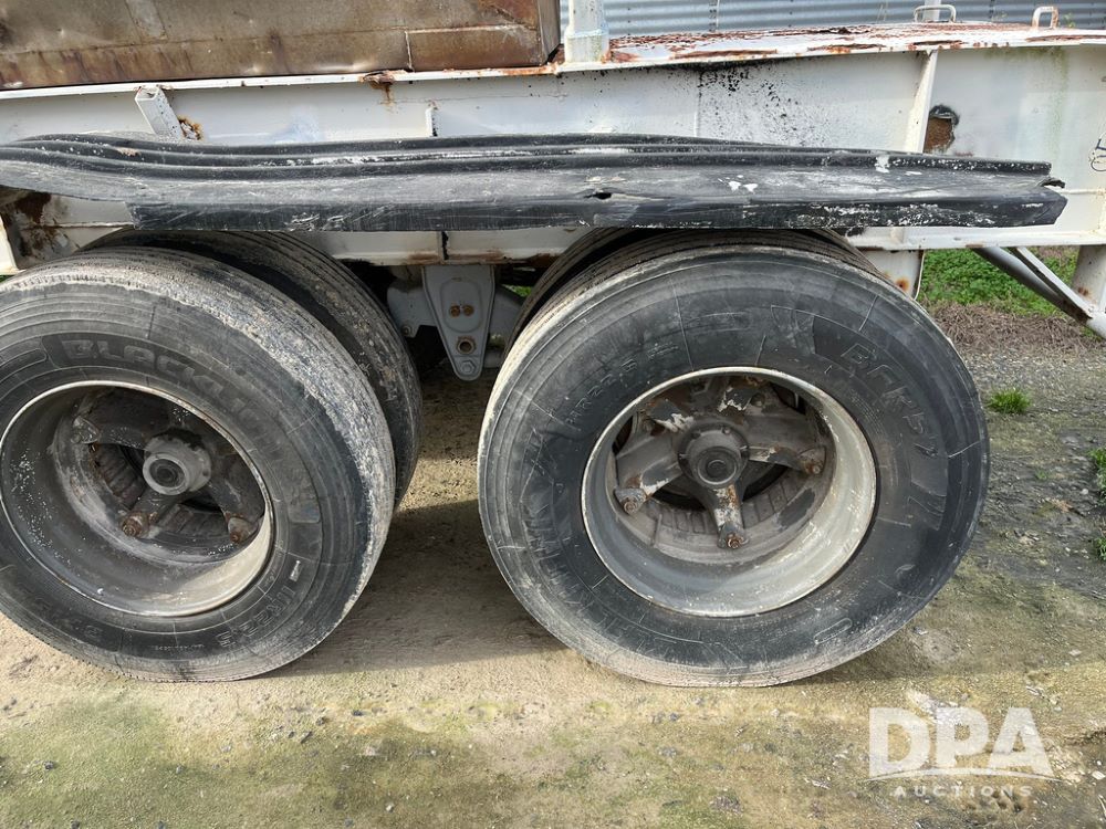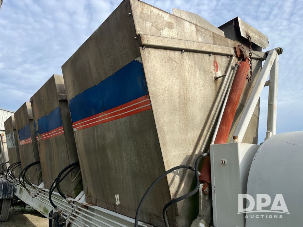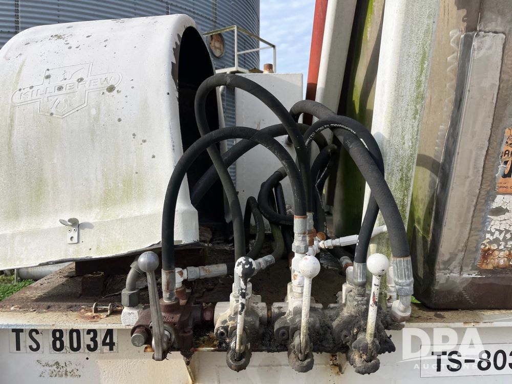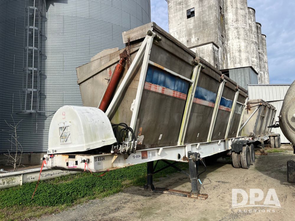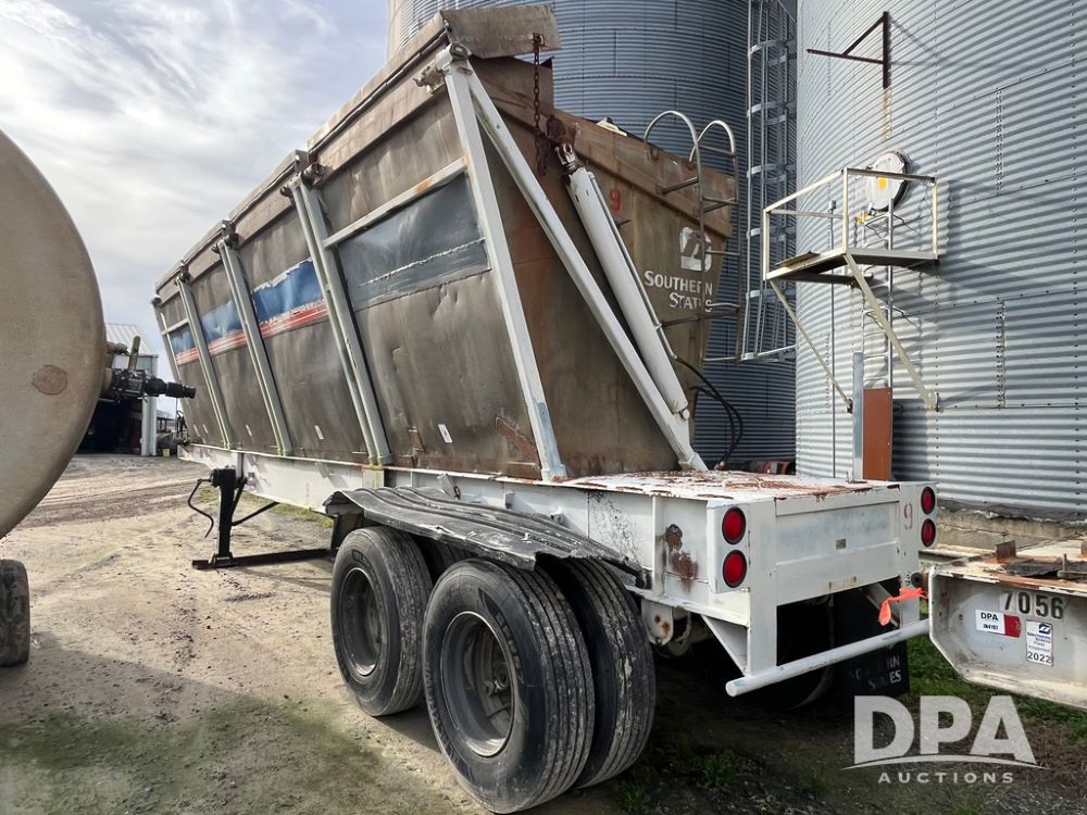 1983 Killebrew Dry Fertilizer Trailer (JN4198, Unit TS8034), 1983 Killebrew stainless steel dry tender trailer, 4 compartment, tandem axle, spring suspension, landing gear, 11R22.5 tires, GVWR 60,000 pounds.