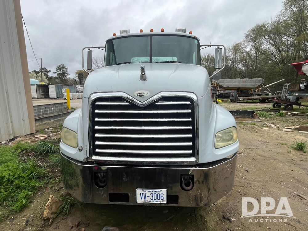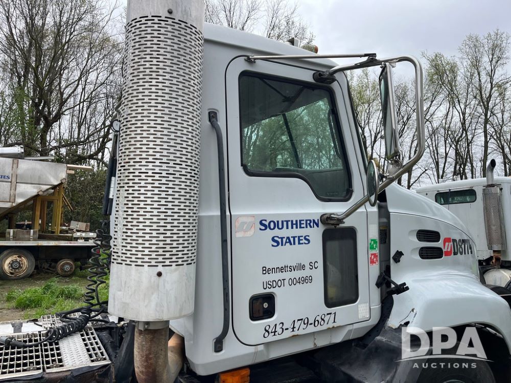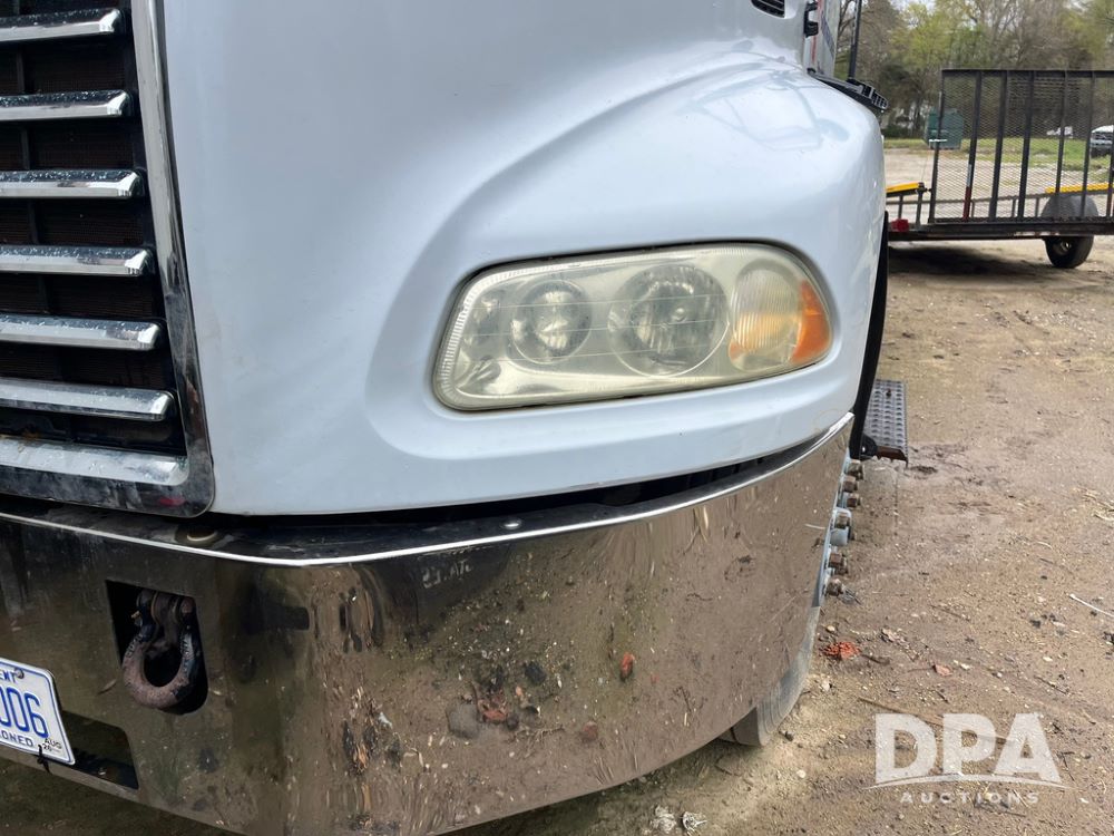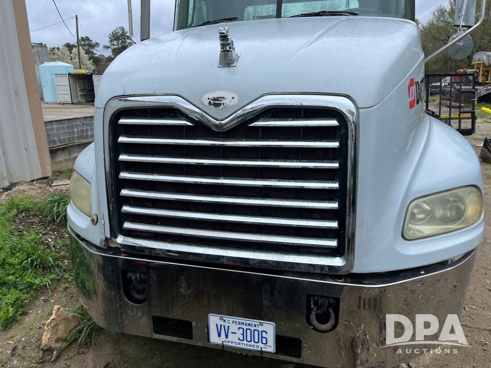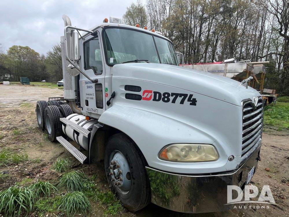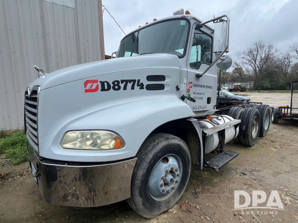2004 Mack DX613 Day Cab Truck (JN4206, Unit D8774), diesel engine, Eaton Fuller 10 speed transmission, heat, Am/Fm radio, tandem axle, air ride suspension, 5th wheel plate, dual fuel tanks, single exhaust, 11R22.5 tires.