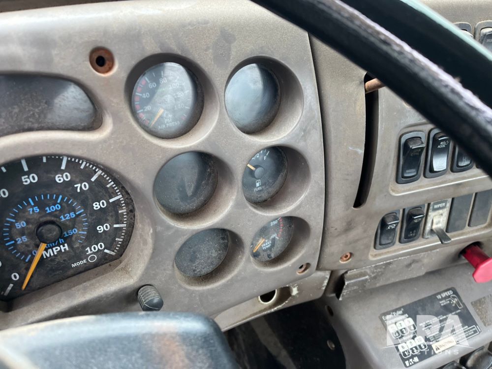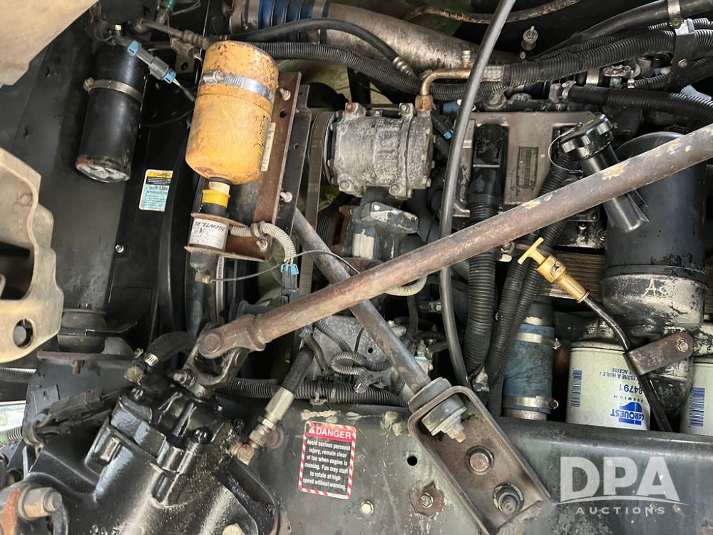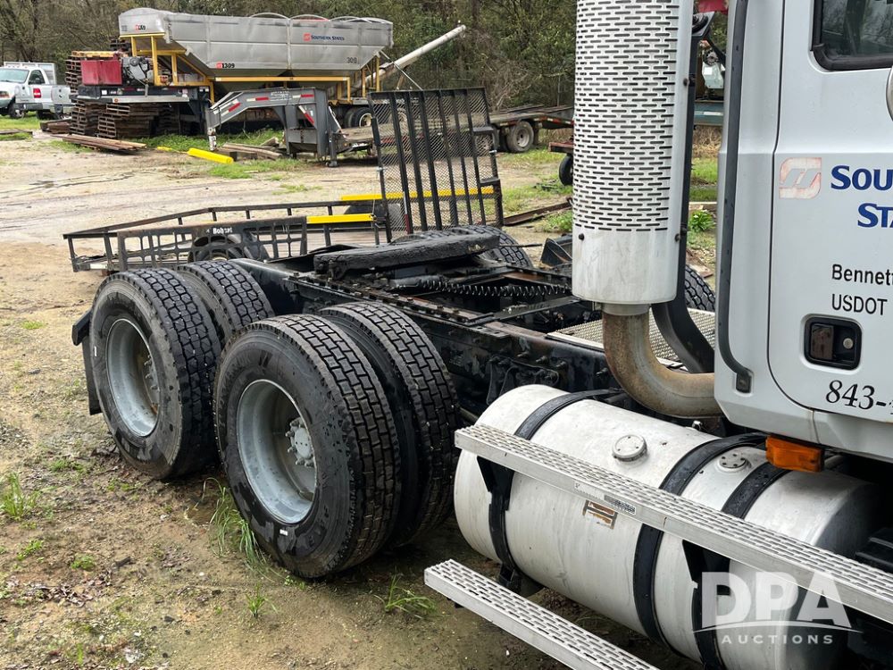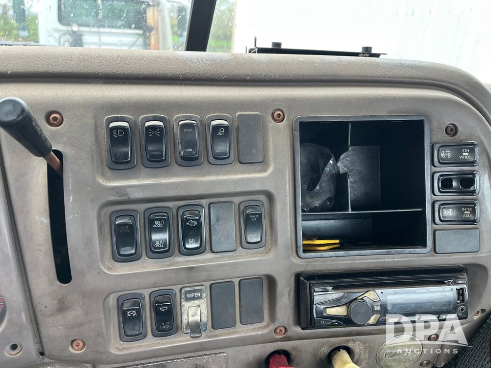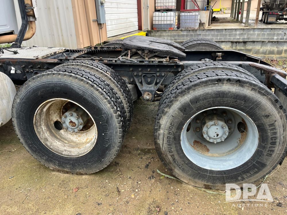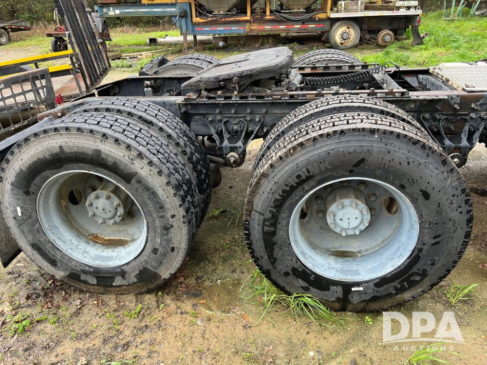 2004 Mack DX613 Day Cab Truck (JN4206, Unit D8774), diesel engine, Eaton Fuller 10 speed transmission, heat, Am/Fm radio, tandem axle, air ride suspension, 5th wheel plate, dual fuel tanks, single exhaust, 11R22.5 tires.